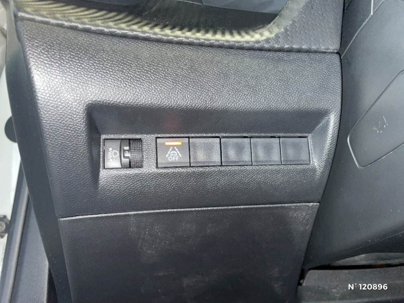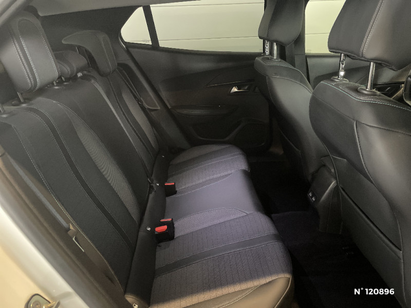 Enjoliveurs de seuil de coffre Métallure / Lécheurs de vitres latérales Noir Mat / Katana avec marquage "e" / Passages de roues Noir Mat / Protections latérales de portes Noir grainées avec inserts Métallure / Rétroviseur intérieur photosensible / Frein de stationnement électrique avec aide au démarrage en pente et serrage automatique / Barres de toit longitudinales Noir Brillant / Visio Park 1 Caméra de recul avec restitution sur l'écran tactile d'une vue AR et d'une vue de dessus de l'environnement AR du véhicule + Aide graphique et sonore au stationnement AR / Détection de sous-gonflage indirecte / Ceintures de sécurité AV conducteur et passager à enrouleurs pyrotechniques avec limiteurs d'effort et détection de non bouclage / Ceintures de sécurité AR latérales avec enrouleurs pyrotechniques, limiteurs d'effort et détection de non bouclage / Programme de Stabilité Electronique (ESC) avec ASR, ABS, REF, AFU, CDS et TSM / Siège passager AV à réglage manuel en hauteur / Filets aumônières au dos des sièges AV / Chargeur embarqué 7,4 kW monophasé / Habitacle et ciel de pavillon gris clair / Volant compact croute de cuir, Lion chromé et commandes multimédia sur volant / 4 poignées de maintien (2 à l'AV et 2 à l'AR) / Essuie-vitre AV à déclenchement automatique / Hill Assist / Lève-vitres AV et AR électriques séquentiels avec antipincement / Teinte métallisées Orange Fusion / Commande d'ouverture extérieure couleur caisse / Rétroviseurs extérieurs dégivrants avec réglage et rabattement électriques,éclairage de seuil / Sellerie Tri-matière Tissu COSY/TEP, surpiqûres Vert Mentholé / 2 prises USB (Recharge type A) sur console haute pour passagers AR / Avertisseur de temps de conduite / Plancher de coffre 2 positions / Pare-brise teinté acoustique / Air conditionné automatique monozone / Pack Safety Plus / Coques de rétroviseurs couleur carrosserie / Aide graphique et sonore au stationnement AR / Fonction Bluetooth et Mirror Screen (Apple CarPlay / Android Auto / MirrorLink) / 6 haut-parleurs (2 tweeters et 2 woofers à l'AV et 2 haut-parleurs à l'AR) / Vitres latérales AR et lunette AR chauffante temporisée surteintées / Planche de bord slush et panneaux de portes AV avec décors aspect carbone et baguette Noir Brillant avec jonc chromé / Démarrage mains libres avec 2 télécommandes 3 boutons mains libres / Console haute avec accoudoir intégré / Eclairage de coffre à ampoule / Eclairage intérieur à LED : plafonniers tactiles AV (1 lampe et 2 liseuses) et AR (2 liseuse), miroir de courtoisie dans pare-soleil, cave à pieds / Peugeot i-Cockpit 3D avec combiné tête haute numérique 3D 10'' / Jantes alliage 17'' SALAMANCA diamantées bi-tons Noir Onyx et vernis brillant, cabochons et vis Noir / Radio avec écran tactile capacitif 7" couleur, 2 prises USB console AV (1 Data Type A, 1 recharge type C), 2 prises USB console haute (2 recharge Type A) / Airbags frontaux, latéraux AV (thorax et abdominaux), rideaux AV / Commandes d'ouverture intérieure de portes chromées / Fonction DAB (Radio Numérique Terrestre) / Projecteurs antibrouillard à LED avec fonction cornering / Ceintures AR centrale 3 points avec détection de non bouclage / Eclairage extérieur d'accueil et d'accompagnement / Fixations suivant norme ISOFIX et Top Tether avec étiquettes de localisation aux places latérales AR / Kit de dépannage pneumatique avec conditionnement rigide / Projecteurs LED Technology, indicateurs de direction à ampoules / Feux diurnes à LED sous projecteurs / Câble électrique mode 2, prises de charge T2/EF type Green'up / Becquet AR couleur caisse / Calandre avec grille supérieure noir grainée et marquage horizontal couleur caisse, grille inférieur avec décor Métallure, enjoliveur supérieur couleur caisse, Lion dichroïque / Coques de rétroviseurs extérieurs avec répétiteurs latéraux à LED / Enjoliveurs de custode Noir Brillant