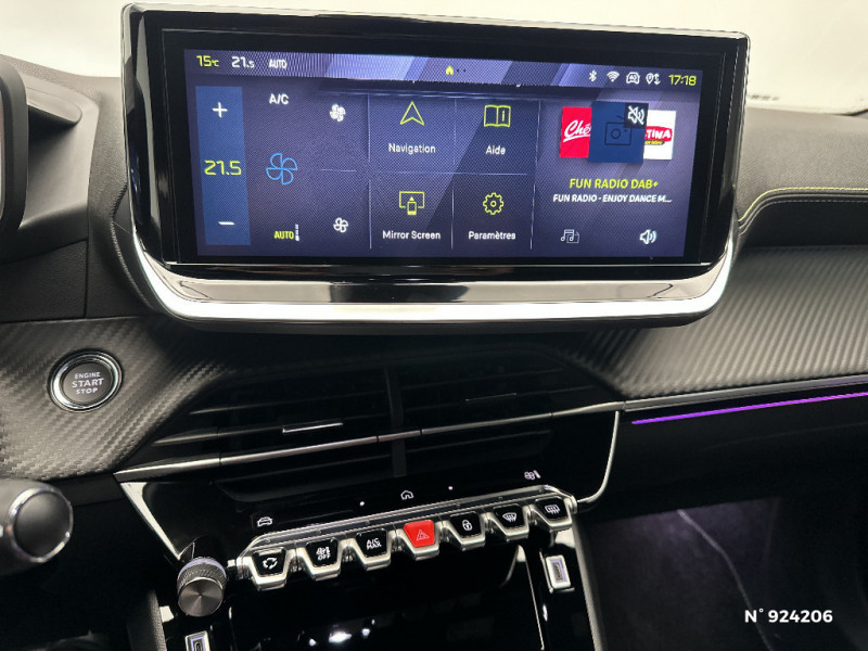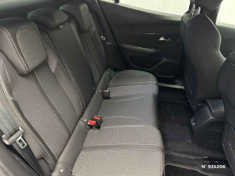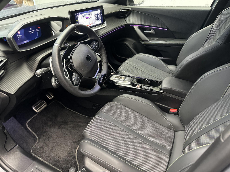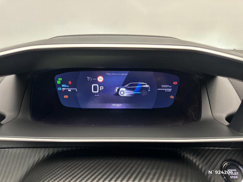 Surtapis AV et AR / Volant compact cuir fleur avec commandes multimédia intégrées / Lève-vitres électriques AV et AR et séquentiels avec anti-pincement / Kit de dépannage de pneumatique compresseur 12 V avec cartouche de produit de colmatage / 6 haut-parleurs (2 tweeters et 2 woofers à l'AV et 2 haut-parleurs à l'AR) / Pare-brise teinté acoustique sérigraphié bi-couches / Peugeot i-Cockpit 3D avec combiné tête haute numérique 3D 10'' / Télécommande 3 boutons + clé standard / Barres de toit longitudinales Noir Brillant / PEUGEOT Connect SOS & Assistance et Teleservices SOS & Assistance : Appel d'urgence automatique ou manuel par push SOS, et mise en relation directe avec la plateforme d'assistance PEUGEOT (24h/24 7j/7) Teleservices : Détection du besoin d?une intervention technique ou d?une opération d?entretien périodique et transmission au réseau PEUGEOT pour prise de rendez vous / Eclairage polyambient 8 couleurs / Rétroviseurs extérieurs dégivrants avec réglage et rabattement électriques,éclairage de seuil / Vitres latérales AR et lunette AR chauffante temporisée surteintées / Commutation automatique des feux de route / feux de croisement / Habitacle et ciel de pavillon noir / Pédalier Sport aluminium / Air conditionné automatique monozone / Siège passager AV avec réglage manuel en hauteur / Accès et démarrage mains libres Proximity / Pack Visibilité Allumage automatique des feux de croisement; Essuie vitre AV à déclenchement automatique; Eclairage d'accompagnement automatique / Recharge smartphone sans fil / Pack Visibilité Allumage automatique des feux de croisement; Essuie vitre AV à déclenchement automatique; Eclairage extérieur d'accueil et d'accompagnement / Recharge smartphone sans fil (15W) / Pack Safety Plus Pack Safety + freinage d'urgence automatique de jour et de nuit (caméra et radar) / Rétroviseur intérieur électrochrome sans cadre / Eclairage intérieur Miroir de courtoisie dans pare soleil éclairéà LED, Eclairage à LED partie basse rangement AR et caves à pieds / Eclairage intérieur Plafonnier AV A-DOME 3 LEDs (1 lampe, 2 liseuses) 2 liseuses AR LED i DOME / Plancher de coffre modulable 2 positions / Console haute avec accoudoir & frein de stationnement électrique 1 prise USB type C (Charge) et 1 prise USB type A (Charge) pour passagers AR, Sélecteur de mode de conduite Normal/Eco/Sport / Sellerie tissu BELOMKA, accompagnement TEP Isabella, trimatière Uni Capy et surpiqûres Vert Adamit / Jantes alliage 17'' diamantées KARAKOY bi-tons Noir Onyx et vernis brillant / ESP Déconnectable avec aide au démarrage en pente et détection de sous gonflage indirecte / 4 poignées de maintien (2 à l'AV et 2 à l'AR) / Pack Safety Plus Régulateur / Limiteur de vitesse, Freinage d'urgence automatique avec alerte risque de collision, Alerte active de franchissement involontaire de ligne et bas côté, Reconnaissance étendue des panneaux de signalisation et préconisation de vitesse, Alerte attention conducteur / Peugeot i-Connect Radio DAB avec écran tactile couleur personnalisable 10" HD,Bluetooth, Mirror Screen sans fil (Apple CarPlay/Android Auto), Wifi, 1 prise USB type C ( Data+charge ) et 1 prise USB type C (Charge) sur console AV / Projecteurs Peugeot upper Full LED Technology avec feux diurnes à LED 3 griffes / Visiopark 1 Caméra de recul HD & aide au stationnement AV et AR, graphique et sonore / Eléments de style éxterieur Lécheurs de vitres Noir Brillant, Katana noir mat avec insert noir brillant et monogramme GT sur motorisations thermiques, Protections latérales de portes Noir grainées avec inserts Gris Météor, Enjoliveurs de custode avec sérigraphie, Becquet AR Noir Perla Nera, Seuils de porte aluminium avec lettrage PEUGEOT Noir / 6 airbags (Frontaux adaptatifs, latéraux AV, rideaux AV et AR) / Eléments de style intérieure Planche de bord moussée avec double surpiqûres adamite/tramontane et baguette Noir brillante avec jonc chromé et jonc lumineux, Panneaux de portes AV avec décor Carbone et baguette Noir brillante et jonc lumineux (8 couleurs) et crosse de tirage TEP Isabella Mistral, Panneaux de portes AR avec grain Karsten avec baguette Noir brillant, Accoudoirs de porte avant et arrière tissu/TEP Isabella avec surpiqûre Adamite / Toit Black Diamond