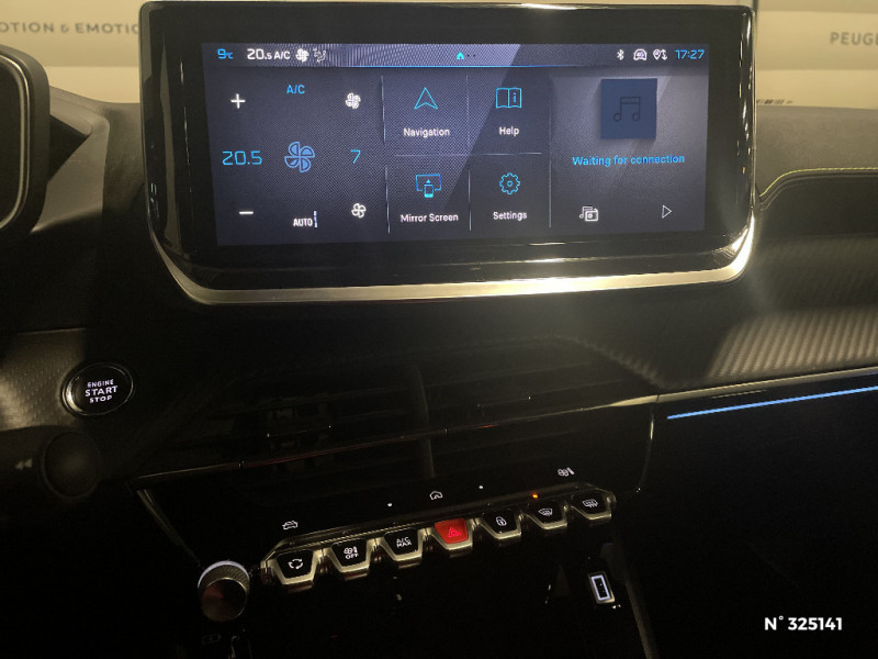 Vitres latérales AR et lunette AR chauffante temporisée surteintées / Volant compact cuir fleur avec commandes multimédia intégrées / 4 poignées de maintien (2 à l'AV et 2 à l'AR) / 6 airbags (Frontaux adaptatifs, latéraux AV, rideaux AV/AR) / 6 HPs (2 tweeters et 2 woofers à l'AV et 2 HPs à l'AR) / Sellerie tissu BELOMKA, accompagnement TEP Isabella, trimatière Uni Capy et surpiqûres Vert Adamite / Siège passager AV avec réglage manuel en hauteur / Surtapis AV/AR / Télécommande 3 boutons + clé standard / Toit Black Diamond / Visiopark 1: caméra de recul HD & aide au stationnement AR, graphique et sonore / Visiopark 1: caméra de recul HD & aide au stationnement AV/AR, graphique et sonore / Habitacle et ciel de pavillon Noir / Jantes alliage 17" diamantées KARAKOY bi-tons Noir Onyx et vernis brillant / Kit de dépannage de pneumatique compresseur 12 V avec cartouche de produit de colmatage / Lève-vitres électriques AV/ AR et séquentiels avec anti-pincement / Pack Safety Plus Régulateur / Limiteur de vitesse, Freinage d'urgence automatique avec alerte risque de collision pilotée par caméra et radar, Alerte active de franchissement involontaire de ligne et bas côté, Reconnaissance étendue des panneaux de signalisation et préconisation de vitesse, Alerte attention conducteur / Pack Safety Plus Régulateur / Limiteur de vitesse, Freinage d'urgence automatique avec alerte risque de collision, Alerte active de franchissement involontaire de ligne et bas--côté,côté, Reconnaissance étendue des panneaux de signalisation et préconisation de vitesse, Alerte attention conducteur, Freinage d'urgence automatique de jour et de nuit (caméra et radar) / Pack Safety Plus Régulateur / Limiteur de vitesse, Freinage d'urgence automatique avec alerte risque de collision, Alerte active de franchissement involontaire de ligne et bas côté, Reconnaissance étendue des panneaux de signalisation et préconisation de vitesse, Alerte attention conducteur. Freinage d'urgence automatique de jour et de nuit (caméra et radar) / Pack Visibilité - Allumage automatique des feux de croisement - Essuie vitre AV à déclenchement automatique - Eclairage extérieur d'accueil et d'accompagnement / Pack Visibilité Allumage automatique des feux de croisement; Essuie vitre AV à déclenchement automatique; Eclairage d'accompagnement automatique / Pare-brise teinté acoustique sérigraphié bi-couches / Pédalier Sport aluminium / Peugeot Connect SOS & Assistance et Teleservices SOS & Assistance : Appel d'urgence automatique ou manuel par push SOS, et mise en relation directe avec la plateforme d'assistance PEUGEOT (24h/24 7j/7) , Teleservices : Détection du besoin d'une intervention technique ou d'une opération d'entretien périodique et transmission au réseau PEUGEOT pour prise de rendez vous / Peugeot i-Cockpit 3D avec combiné tête haute numérique 10'' / Peugeot i-Connect: Radio DAB avec écran tactile couleur personnalisable 10" HD, Bluetooth, Mirror Screen sans fil (Apple CarPlay/Android Auto), Wifi, 1 prise USB type C ( Data+charge) et 1 prise USB type C (Charge) sur console AV / Plancher de coffre modulable 2 positions / Projecteurs Peugeot upper Full LED Technology avec feux diurnes à LED 3 griffes / Recharge smartphone sans fil / Recharge smartphone sans fil (15W) / Rétroviseur intérieur électrochrome / Rétroviseur intérieur électrochrome sans cadre / Rétroviseurs extérieurs dégivrants avec réglage et rabattement électriques / Rétroviseurs extérieurs dégivrants avec réglage et rabattement électriques, éclairage de seuil / ESP Déconnectable avec aide au démarrage en pente et détection de sous gonflage indirecte / Eléments de style intérieur: Planche de bord moussée avec double surpiqûres adamite/tramontane et baguette Noir brillant avec jonc chromé et jonc lumineux, Panneaux de portes AV avec décor Carbone et baguette Noir brillant et jonc lumineux (8 couleurs) et crosse de tirage TEP Isabella Mistral, Panneaux de portes AR avec grain Karsten avec baguette Noir brillant, Accoudoirs de porte AV/AR tissu/TEP Isabella avec surpiqûre Adamite / Accès et démarrage mains libres Proximity / Accès et démarrage mains libres Proximity / Air conditionné automatique monozone / Barres de toit longitudinales Noir Brillant / Canule d'echappement double chromée / Commutation automatique des feux de route / feux de croisement / Console haute avec accoudoir & frein de stationnement électrique 1 prise USB type C (Charge) et 1 prise USB type A (Charge) pour passagers AR, Sélecteur de mode de conduite Normal/Eco/Sport / Eclairage intérieur: Miroir de courtoisie dans pare-soleil éclairéà LED, Eclairage à LED partie basse rangement AR et caves à pieds / Eclairage intérieur: Plafonnier AV A-DOME 3 LEDs (1 lampe, 2 liseuses), 2 liseuses AR LED i-DOME / Eclairage polyambient 8 couleurs / Eléments de style éxterieur : Lécheurs de vitres Noir Brillant, Katana noir mat avec insert noir brillant et monogramme GT sur motorisations thermiques, Protections latérales de portes Noir grainées avec inserts Gris Météor, Becquet AR Noir Perla Nera, Seuils de porte aluminium avec lettrage PEUGEOT Noir / Eléments de style éxterieur Lécheurs de vitres Noir Brillant, Katana noir mat avec insert noir brillant et monogramme GT sur motorisations thermiques, Protections latérales de portes Noir grainées avec inserts Gris Météor, Enjoliveurs de custode avec sérigraphie, Becquet AR Noir Perla Nera, Seuils de porte aluminium avec lettrage PEUGEOT Noir