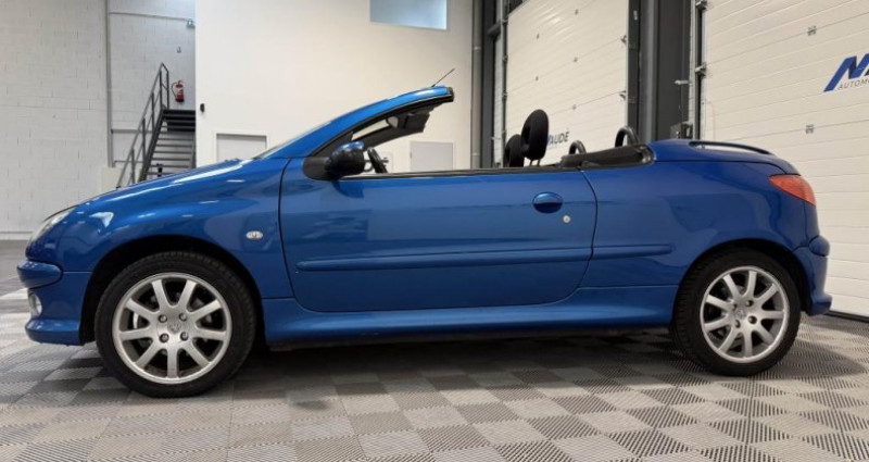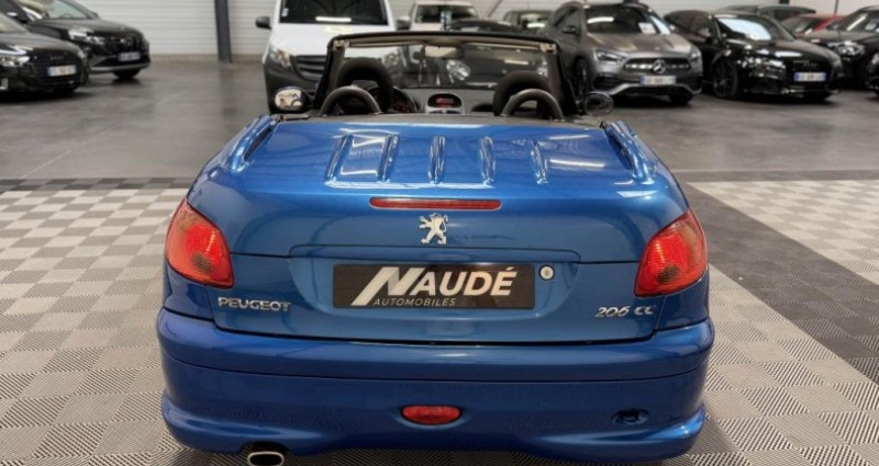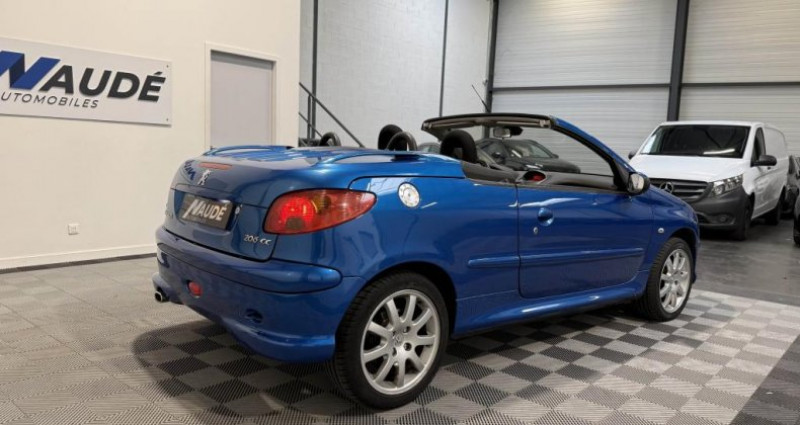 PEUGEOT 206 CC 2.0i 16V 136 CH Sport Pack - Véhicule visible uniquement sur rendez-vous, du lundi au vendredi de 9h30 à 18h00 et le samedi de 10h00 à 16h00 - Ce véhicule bénéficie d'une garantie de 3 mois. Possibilité d'extension jusqu'à 48 mois avec notre partenaire leader de la garantie mécanique OPTEVEN (à partir de 35 euros / mois). Prix hors frais de formalités de 390 euros et carte grise en fonction du département. Reprise possible de votre ancien véhicule. - Contactez Dylan de l'agence NAUDE AUTOMOBILES CHAPONOST pour ce véhicule. - ======= OPTIONS ======= Peinture métallisée bleue récif ======= EQUIPEMENTS DE SERIE ======= ABS, Répartiteur électronique, aide au freinage d'urgence, allumage auto des feux de détresse Ailes AV sport Air conditionné avec régulation automatique et pare-brise athermique Allume-cigare et cendrier éclairés Arceaux de style noirs Autoradio Peugeot RD3 mono CD frontal avec 2 tweeters + 2 HP à l'AV et 2 HP à l'AR et afficheur déporté Bouchon de réservoir de carburant aluminium fermant à clé Canule d'échappement chromée Combiné sport à cadrans noirs, cercalge aluminium et aiguilles blanches Contrôle dynamique de stabilité (ESP) Direction assistée à assistance variable Eclairage d'accompagnement Follow me Home Ecran multifonction avec température extérieure et ordinateur de bord Essuie-glace à déclenchement automatique Jantes alliage 16 pouces Ouragan Kit anti-crevaison Pack Sport avec Pédalier en aluminium et Seuils de portes en aluminium Pack Visibilité avec allumage automatique des feux Pare-chocs avant et arrière sport, peint couleur caisse Projecteurs antibrouillard AV Siège passager avec fixation Isofix Soufflet de levier de vitesse en cuir Volant gainé cuir 3 branches réglable Nb. Vitesses : 5 Conso Mixte : l/100