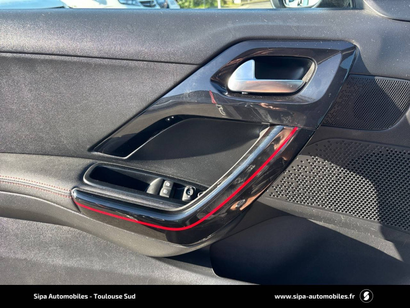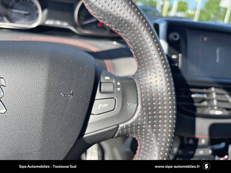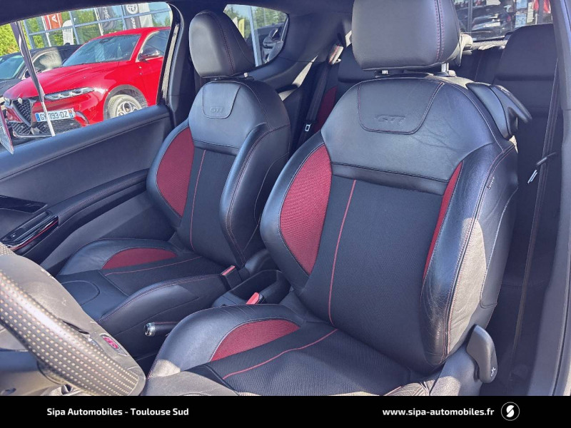 Airbags frontaux conducteur et passager (passager neutralisable), latéraux AV et rideaux / Bandeau de planche de bord en Technotep Noir surpiqué Rouge / Becquet de hayon Sport couleur carrosserie / Bloc marque AV/AR chrome avec lettrage PEUGEOT Rouge / Calandre GTi à motif damier avec jonc chromé et lame inférieure rouge anodisée / Ceintures de sécurité noires avec liseré rouge / Ciel de pavillon noir / Combiné premium avec cerclages à LEDs rouges / Combiné tête haute avec matrice couleur / Contrôle dynamique de stabilité ESP déconnectable / Coques de rétroviseurs extérieurs Chrome Brillant / Détection de sous gonflage / Diffuseur AR laqué noir avec insert chromé et double canule d'échappement biseautée / Ecran tactile 7" multifonctions avec radio 4x25W fonction Bluetooth, prise Jack/USB et commande au volant / Ecran Tactile avec fonction Mirror Screen / Ecran tactile thème RedLine / Elargisseur d'ailes et bas de caisse couleur carrosserie / Etriers de frein rouge / Feux AR à griffes 3D LEDs / Jantes alliage 17" Carbone diamantées Storm mat avec écrous antivol et cabochons diamantées / Lève-vitres AV électriques et séquentiel côté conducteur / Monogrammes GTi sur inserts de custode et hayon / Navigation et fonction Mirror Screen / Nouveaux feux AR à griffes 3D LEDs / Pack Visibilité / Pédalier Sport aluminium et repose pied en aluminium / Pommeau de boîte de vitesse chrome satin/rouge et souflet surpiqué / Projecteurs antibrouillard AV avec fonction cornering / Projecteurs AV premium et clignotants à LEDs / Seuils de portes aluminium avec lettrage Peugeot Rouge / Sièges AV Sport mi-cuir Club/maille Caro surpiqués Rouge / Surtapis premium ganse noir surpiquée Rouge / Volant Cuir pleine fleur avec monogramme GTi