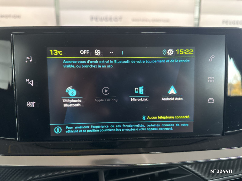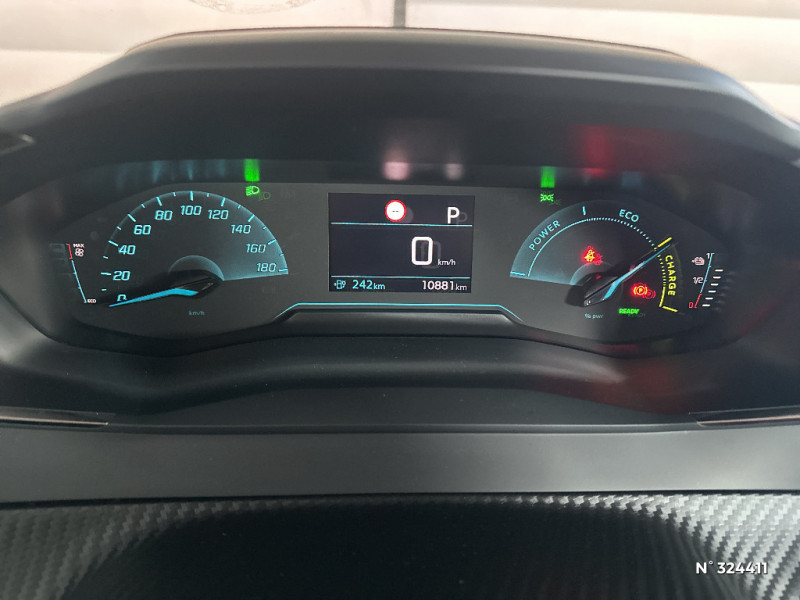 Jantes tôle 16'' avec enjoliveurs PLAKA / PEUGEOT Connect SOS & Assistance et Telemaintenance / Kit de dépannage de pneumatique / Lève-vitres AR électriques et séquentiels avec antipincement / Lève-vitres AV électriques et séquentiels avec antipincement / Pack Safety / Pare-brise teinté acoustique / Passages de roue Noir brillant / Air conditionné automatique mono-zone / Avertisseur de temps de conduite / Bandeau entre feux AR Noir brillant / Câble électrique mode 3, prises de charge T2/T2 / Calandre haut de gamme avec grille supérieure avec marquage couleur caisse et enjoliveur supérieur Noir Brillant / Ceinture de sécurité AR centrale 3 points, avec détection de non bouclage / Ceintures de sécurité AR latérales avec enrouleurs pyrotechniques, limiteurs d'effort et détection de non bouclage / Ceintures de sécurité AV conducteur et passager à enrouleurs pyrotechniques avec limiteurs d'effort et détection de non bouclage / Chargeur embarqué 7,4kW monophasé / Console haute avec accoudoir intégré / Démarrage mains libres avec 2 télécommandes 3 boutons / Détection de sous-gonflage indirecte / Eclairage coffre à lampe / Eclairage intérieur à ampoules : plafonnier AV à 3 spots (1 lampe et 2 liseuses) / Feux diurnes à LED sous projecteurs / Fixations suivant norme ISOFIX aux places latérales AR avec étiquettes de localisation, et Top Tether / Fonction DAB (Radio Numérique Terrestre) / Rétroviseurs extérieurs dégivrants avec réglage et rabattement électriques / Peugeot i-Cockpit avec combiné tête haute analogique et matrice couleur 3,5" / Sellerie Tri matière Tissu PNEUMA 3D, surpiqûre Orange Intense / Système stop & go couplé avec l'assistance au positionnement sur la voie / Vitres latérales AR et lunette AR chauffante temporisée teintées / Volant compact croute de cuir, Lion chromé et commandes multimédia sur volant / 1 Poignée de maintien passager AV / 2 prises USB (Recharge type A) sur console basse pour passagers AR / 3 poignées de maintien (1 à l'AV et 2 à l'AR) / 6 HP (2 tweeters et 2 woofers à l'AV et 2 larges bandes à l'AR) / Planche de bord slush et panneaux de portes AV avec décors aspect carbone / Programme de Stabilité Electronique (ESC) avec ASR, ABS, REF, AFU, CDS et TSM / Projecteurs halogènes avec feux diurnes à LED / Radio avec écran tactile 7" couleur capacitif, 2 prises USB (DATA type A, recharge type C) sur console AV / Rétroviseur intérieur à réglage jour/nuit manuel / Fonction "Mirror Screen" (Apple CarPlay / Android Auto ) / Frein de stationnement électrique avec aide au démarrage en pente et serrage automatique / Habitacle et ciel de pavillon gris clair / Jupes de pare-chocs AR inférieure et supérieure Noir grainée