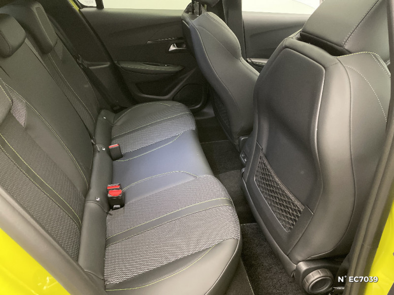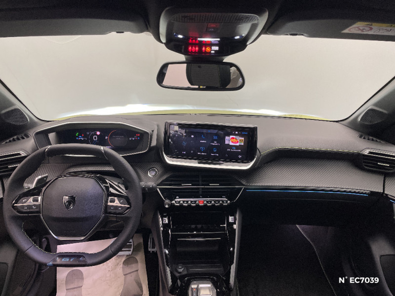 Habitacle et ciel de pavillon Noir / Jantes alliage 17" diamantées YANAKA bi--ton vernis brillant et Noir Orbital avec inserts Noir Orbital et vernis mat / Jupes AR inférieure Noir brillant / Jupes AR supérieure Noir brillant / Lécheurs de vitres latérales Noir Brillant / Lève-vitres AR électriques et séquentiels avec antipincement / Becquet rapporté Noir Brillant / Boîte de vitesse automatique, séquentielle (6 rapports) / Calandre haute de gamme noir grainée avec marquage couleur caisse / Ceinture de sécurité AR centrale 3 points, avec détection de non bouclage / Ceintures de sécurité AR latérales avec enrouleurs pyrotechniques, limiteurs d'effort et détection de non bouclage / Ceintures de sécurité AV conducteur et passager à enrouleurs pyrotechniques avec limiteurs d'effort et détection de non bouclage / Commande d'ouverture des portes couleur caisse / Commutation automatique des feux de route / feux de croisement / Console haute avec accoudoir & frein de stationnement électrique 1 prise USB type C (Charge) et 1 prise USB type A (Charge) pour passagers AR, Sélecteur de mode de conduite Normal/Eco/Sport / Détection de sous-gonflage indirecte / Eclairage coffre à lampe / Accès et démarrage mains libres Proximity / Accoudoirs sur portes AV et AR en TEPavec surpiqûre Adamite / Air conditionné automatique mono-zone / Antenne requin / Eclairage intérieur Eclairager AV I-DOME à LED (1 plafonnier et 2 liseuses), 2 liseuses à LED AR, Miroir de courtoisie dans pare-soleil éclairéà LED, Eclairage à LED partie basse rangement et caves à pieds / Lève-vitres AV électriques et séquentiels avec antipincement / Pack Safety Régulateur / Limiteur de vitesse, Freinage d'urgence automatique avec alerte risque de collision, Freinage automatique d'urgence avec détection élargie (3 caméras haut de pare-brise) et protection des usagers de la route vulnérables (piétons, cyclistes,), Alerte active de franchissement involontaire de ligne et bas côté, Reconnaissance étendue des panneaux de signalisation et préconisation de vitesse, Alerte attention conducteur / Pack Visibilité Allumage automatique des feux de croisement / Panneaux de porte AR avec grain Karsten avec baguette Noir brillant / Panneaux de porte AV avec médaillon TPE surmoulé Carbone, baguette Noir brillante avec jonc lumineux (8 couleurs) et crosse de tirage TEP avec surpiqûres Adamite / Pédalier Sport aluminium / Peugeot Connect SOS & Assistance et Teleservices SOS & Assistance : Appel d'urgence automatique ou manuel par push SOS, et mise en relation directe avec la plateforme d'assistance PEUGEOT (24h/24 7j/7) , Teleservices : Détection du besoin d'une intervention technique ou d'une opération d'entretien périodique et transmission au réseau PEUGEOT pour prise de rendez vous / Peugeot i-Cockpit 3D avec combiné tête haute numérique 10'' / Peugeot i-Connect: Radio DAB avec écran tactile couleur personnalisable 10" HD, Bluetooth, Mirror Screen sans fil (Apple CarPlay/Android Auto), Wifi, 1 prise USB type C ( Data+charge), 1 prise USB type C (Charge) sur console AV / Planche de bord Slush avec Décor Carbone TPE et double surpiqûres Adamite/Tramontane et baguette Noir brillante avec jonc chromé et jonc lumineux / Prise 12V et rangement pour smartphone en faà§ade centrale / Programme de Stabilité Electronique (ESC) avec ASR, ABS, REF, AFU, CDS et TSM / Projecteurs "Peugeot Full LED Technology" avec feux diurnes à LED 3 griffes / Rétroviseur intérieur électrochrome / Rétroviseurs extérieurs dégivrants avec réglage et rabattement électriques / Sellerie tissu BELOMKA, accompagnement TEP Isabella, trimatière Uni Capy et surpiqûres Vert Adamite / Seuils de portes aluminium avec lettrage PEUGEOT / Siège passager AV à réglage manuel en hauteur / Surtapis AV/AR / Télécommande 3 boutons + clé standard / Visiopark 1 Caméra de recul HD, aide au stationnement AV et AR graphique et sonore / Vitres latérales AR et lunette AR chauffante temporisée surteintées / Volant compact cuir fleur avec commandes multimédia intégrées et badge GT / 1 prise USB type C ( Data+charge ) et 1 prise USB type C (Charge) sur console AV / 1 prise USB type C (Charge) et 1 prise USB type A (Charge) pour passagers AR / 4 poignées de maintien rétractables (2 à l'AV et 2 à l'AR) / 6 Airbags (Frontaux auto-adaptatifs, latéraux AV et rideaux AV/AR) / 6 HPs (2 tweeters et 2 woofers à l'AV et 2 HPs à l'AR) / Eclairage polyambiant 8 couleurs (Liés aux modes de conduite) / Enjoliveur bas de calandre noir grainé / Enjoliveur DRL Noir grainé / Enjoliveur entre feux AR noir brillant / Enjoliveur supérieur de calandre Noir grainé / Enjoliveurs d'ailes Noir Brillant / ESP Déconnectable avec aide au démarrage en pente / Essuie-vitre AV à déclenchement automatique / Feux AR signature 3 griffes, stop,recul et indicateur de direction à LEDs