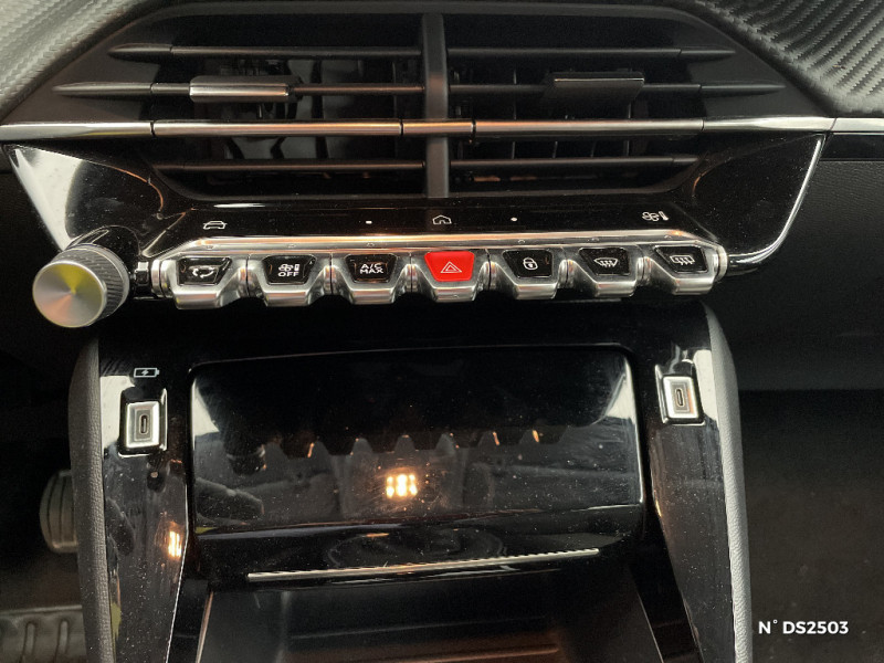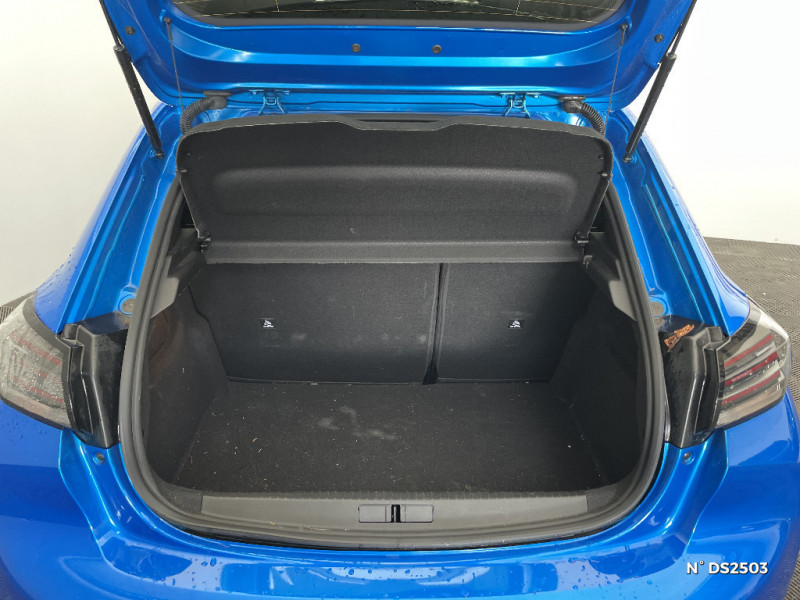 Bandeau entre feux AR Noir Brillant / Calandre avec grille supérieure avec marquage Chrome Brillant et enjoliveur supérieur noir grainé / Ceinture de sécurité AR centrale 3 points, avec détection de non bouclage / Ceintures de sécurité AR latérales avec enrouleurs pyrotechniques, limiteurs d'effort et détection de non bouclage / Ceintures de sécurité AV conducteur et passager à enrouleurs pyrotechniques avec limiteurs d'effort et détection de non bouclage / Console haute avec accoudoir intégré / Décor panneaux de portes Noir et Azure / Détection de sous-gonflage indirecte / Eclairage coffre à lampe / Eclairage intérieur à ampoules : plafonnier AV à 3 spots (1 lampe et 2 liseuses) / Enjoliveurs de pied milieu Noir brillant avec sérigraphie / Essuie-vitre AV à déclenchement automatique / Feux diurnes à LED sous projecteurs / Fixations suivant norme ISOFIX aux places latérales AR avec étiquettes de localisation, et Top Tether / Fonction DAB (Radio Numérique Terrestre) / Fonction "Mirror Screen" (Apple CarPlay / Android Auto ) / Frein de stationnement électrique avec aide au démarrage en pente et serrage automatique / Habitacle et ciel de pavillon gris clair / Jantes alliage 16" SOHO diamantées peintes Gris Storm / Jantes alliage 16'' SOHO diamantées peintes Gris Storm / Jantes alliage 16'' SOHO diamantées peintes Gris Storm / Jupes de pare-chocs AR inférieure Noir grainée et supérieure Noir brillant / Kit de dépannage de pneumatique / Lève-vitres AR électriques et séquentiels avec antipincement / Lève-vitres AV électriques et séquentiels avec antipincement / Pack Safety / Pare-brise teinté acoustique / Peugeot i-Cockpit avec combiné tête haute analogique et matrice couleur 3,5" / Planche de bord slush et panneaux de portes AV avec décors aspect carbone / Programme de Stabilité Electronique (ESC) avec ASR, ABS, REF, AFU, CDS et TSM / Projecteurs 'Peugeot LED Technology', indicateurs de direction à ampoules / Radio avec écran tactile 7" couleur capacitif, 2 prises USB (DATA type A, recharge type C) sur console AV / Aide graphique et sonore au stationnement AR / Air conditionné automatique mono-zone / Avertisseur de temps de conduite / Rétroviseurs extérieurs dégivrants avec réglage et rabattement électriques / Sans seuil de portes lettrage "PEUGEOT" / Sellerie Tri-matières tissu COSY / TEP Mistral, surpiqûres Mentholées / Seuil de portes lettrage "PEUGEOT" / Télécommande 3 boutons + clé standard / Vitres latérales AR et lunette AR chauffante temporisée surteintées / Volant compact croute de cuir, Lion chromé et commandes multimédia sur volant / 1 Poignée de maintien passager AV / 2 prises USB (Recharge type A) sur console basse pour passagers AR / 3 poignées de maintien (1 à l'AV et 2 à l'AR) / 6 HP (2 tweeters et 2 woofers à l'AV et 2 larges bandes à l'AR) / Rétroviseur intérieur photosensible