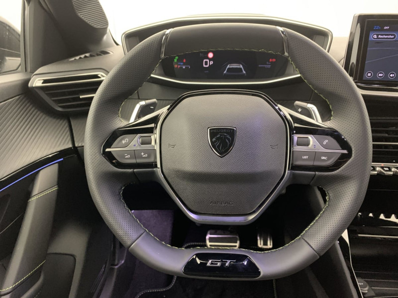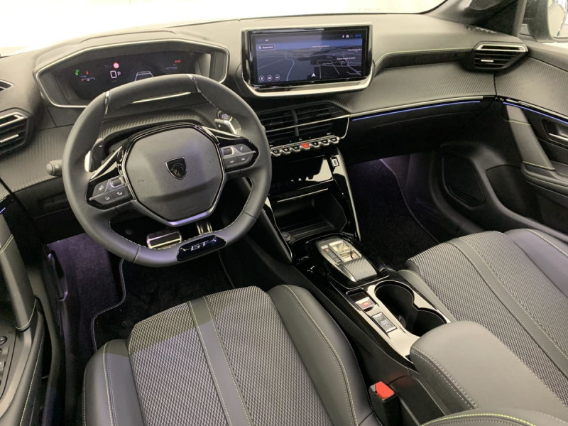 Pédalier Sport aluminium / Détection de sous-gonflage indirecte / Surtapis AV/AR / Essuie-vitre AV à déclenchement automatique / Lève-vitres AR électriques et séquentiels avec antipincement / Habitacle et ciel de pavillon Noir / Commutation automatique des feux de route / feux de croisement / Ceintures de sécurité AV conducteur et passager à enrouleurs pyrotechniques avec limiteurs d'effort et détection de non bouclage / Ceinture de sécurité AR centrale 3 points, avec détection de non bouclage / Ceintures de sécurité AR latérales avec enrouleurs pyrotechniques, limiteurs d'effort et détection de non bouclage / Programme de Stabilité Electronique (ESC) avec ASR, ABS, REF, AFU, CDS et TSM / Lécheurs de vitres latérales Noir Brillant / Eclairage coffre à lampe / Télécommande 3 boutons + clé standard / Peugeot i-Cockpit 3D avec combiné tête haute numérique 10'' / 6 HPs (2 tweeters et 2 woofers à l'AV et 2 HPs à l'AR) / Vitres latérales AR et lunette AR chauffante temporisée surteintées / Air conditionné automatique mono-zone / Rétroviseurs extérieurs dégivrants avec réglage et rabattement électriques / Peugeot Connect SOS & Assistance et Teleservices SOS & Assistance : Appel d'urgence automatique ou manuel par push SOS, et mise en relation directe avec la plateforme d'assistance PEUGEOT (24h/24 7j/7) , Teleservices : Détection du besoin d'une intervention technique ou d'une opération d'entretien périodique et transmission au réseau PEUGEOT pour prise de rendez vous / Sellerie tissu BELOMKA, accompagnement TEP Isabella, trimatière Uni Capy et surpiqûres Vert Adamite / Console haute avec accoudoir & frein de stationnement électrique 1 prise USB type C (Charge) et 1 prise USB type A (Charge) pour passagers AR, Sélecteur de mode de conduite Normal/Eco/Sport / Peugeot i-Connect: Radio DAB avec écran tactile couleur personnalisable 10" HD, Bluetooth - Mirror Screen sans fil (Apple CarPlay/Android Auto) - Wifi - 1 prise USB type C ( Data+charge), 1 prise USB type C (Charge) sur console AV / Jantes alliage 17" diamantées YANAKA bi--ton vernis brillant et Noir Orbital avec inserts Noir Orbital et vernis mat / Accès et démarrage mains libres Proximity / Jupes AR inférieure Noir brillant / Jupes AR supérieure Noir brillant / Volant compact cuir fleur avec commandes multimédia intégrées et badge GT / Projecteurs "Peugeot Full LED Technology" avec feux diurnes à LED 3 griffes / Eclairage polyambiant 8 couleurs (Liés aux modes de conduite) / ESP Déconnectable avec aide au démarrage en pente / 4 poignées de maintien rétractables (2 à l'AV et 2 à l'AR) / Eclairage intérieur Eclairager AV I-DOME à LED (1 plafonnier et 2 liseuses), 2 liseuses à LED AR, Miroir de courtoisie dans pare-soleil éclairéà LED, Eclairage à LED partie basse rangement et caves à pieds / Enjoliveurs d'ailes Noir Brillant / Accoudoirs sur portes AV et AR en TEPavec surpiqûre Adamite / Panneaux de porte AR avec grain Karsten avec baguette Noir brillant / Panneaux de porte AV avec médaillon TPE surmoulé Carbone, baguette Noir brillante avec jonc lumineux (8 couleurs) et crosse de tirage TEP avec surpiqûres Adamite / Feux AR signature 3 griffes, stop,recul et indicateur de direction à LEDs / Antenne requin / Calandre haute de gamme noir grainée avec marquage couleur caisse / Prise 12V et rangement pour smartphone en façade centrale / Enjoliveur DRL Noir grainé / Enjoliveur bas de calandre noir grainé / Enjoliveur supérieur de calandre Noir grainé / Commande d'ouverture des portes couleur caisse / Enjoliveur entre feux AR noir brillant / Becquet rapporté Noir Brillant / 6 Airbags (Frontaux auto-adaptatifs, latéraux AV et rideaux AV/AR) / Pack Visibilité Allumage automatique des feux de croisement : Allumage automatique des feux de croisement / Siège passager AV à réglage manuel en hauteur / Visiopark 1 Caméra de recul HD, aide au stationnement AV et AR graphique et sonore / Seuils de portes aluminium avec lettrage PEUGEOT / Rétroviseur intérieur électrochrome / Boîte de vitesse automatique, séquentielle (6 rapports) / Pack Safety Régulateur / Limiteur de vitesse, Freinage d'urgence automatique avec alerte risque de collision, Freinage automatique d'urgence avec détection élargie (3 caméras haut de pare-brise) et protection des usagers de la route vulnérables (piétons, cyclistes,), Alerte active de franchissement involontaire de ligne et bas côté, Reconnaissance étendue des panneaux de signalisation et préconisation de vitesse, Alerte attention conducteur : Alerte attention conducteur Régulateur / Limiteur de vitesse Reconnaissance étendue des panneaux de signalisation et préconisation de vitesse Alerte active de franchissement involontaire de ligne et bas côté Freinage d'urgence automatique avec alerte risque de collision Freinage automatique d'urgence avec détection élargie (3 caméras haut de pare-brise) et protection des usagers de la route vulnérables (piétons, cyclistes,...) / Planche de bord Slush avec décor carbone slush et double surpiqûres Adamite/Tramontane et baguette Noir brillante avec jonc chromé et jonc lumineux / Lève-vitres AV électriques et séquentiels avec antipincement / / Véhicules équivalents: Clio - C3 - Yaris