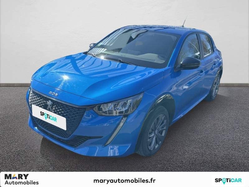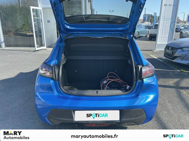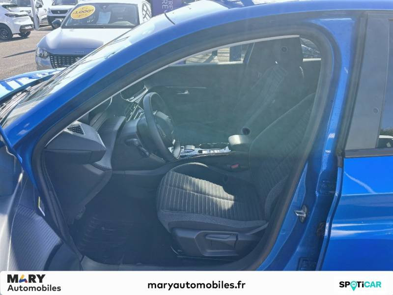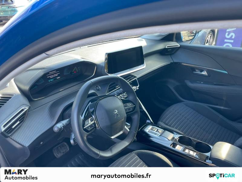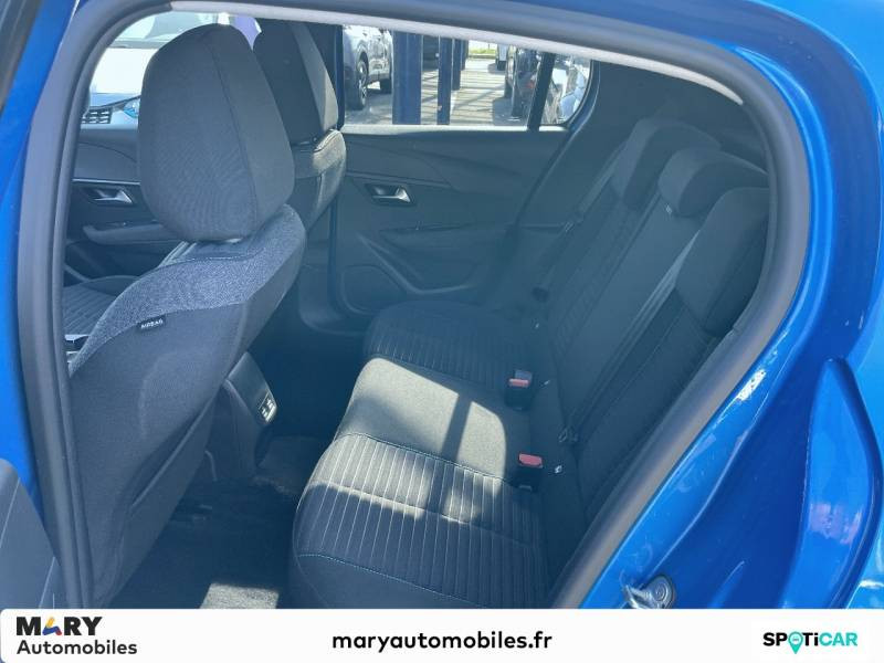 2 prises USB (Recharge type A) sur console basse pour passagers AR / 6 HP (2 tweeters et 2 woofers à l'AV et 2 larges bandes à l'AR) / Aide graphique et sonore au stationnement AR / rideaux / Air conditionné automatique mono-zone / Avertisseur de temps de conduite / Bandeau entre feux AR noir brillant / Câble électrique mode 3 / prises de charge T2/T2 / Calandre haut de gamme avec grille supérieure avec marquage couleur caisse et enjoliveur supérieur Noir Brillant / Ceinture de sécurité AR centrale 3 points / avec détection de non bouclage / Ceintures de sécurité AR latérales avec enrouleurs pyrotechniques / limiteurs d'effort et détection de non bouclage / Ceintures de sécurité AV conducteur et passager à enrouleurs pyrotechniques avec limiteurs d'effort et détection de non bouclage / Chargeur embarqué 11 kW triphasé / Chargeur embarqué 7 / 4 kW monophasé / Console haute avec accoudoir intégré / Coques de rétroviseurs extérieurs Noir Brillant / Décor panneaux de portes Noir et Azure / Démarrage mains libres avec 2 télécommandes 3 boutons / Détection de sous-gonflage indirecte / Eclairage coffre à lampe / Eclairage intérieur à ampoules : plafonnier AV à 3 spots (1 lampe et 2 liseuses) / Fixations suivant norme ISOFIX aux places latérales AR avec étiquettes de localisation / et Top Tether / Fonction DAB (Radio Numérique Terrestre) / Fonction Mirror Screen (Apple CarPlay / Android Auto ) / Frein de stationnement électrique avec aide au démarrage en pente et serrage automatique / Habitacle et ciel de pavillon gris clair / Jupes de pare-chocs AR inférieure et supérieure Noir grainée / Kit de dépannage de pneumatique / Lève-vitres AR électriques et séquentiels avec antipincement / Lève-vitres AV électriques et séquentiels avec antipincement / Pack Safety / Pare-brise teinté / Passages de roue Noir brillant / PEUGEOT Connect SOS & Assistance et Telemaintenance / Peugeot i-Cockpit avec combiné tête haute analogique et matrice couleur 3 / 5 / Planche de bord slush et panneaux de portes AV avec décors aspect carbone / Programme de Stabilité Electronique (ESC) avec ASR / REF / AFU / CDS et TSM / Projecteurs 'Peugeot LED Technology' / indicateurs de direction à ampoules / Radio avec écran tactile 7 couleur capacitif / 2 prises USB (DATA type A / recharge type C) sur console AV / Rétroviseur intérieur à réglage jour/nuit manuel / Rétroviseurs extérieurs dégivrants avec réglage et rabattement électriques / Sellerie Tri matière Tissu PNEUMA 3D / surpiqûre Bleu Azure / Seuil de portes lettrage PEUGEOT / Teintes métallisées / Teintes spéciales / Visio Park 1: Caméra de recul avec restitution sur l'écran tactile d'une vue AR et d'une vue de dessus de l'environnement AR du véhicule + Aide graphique et sonore au stationnement AR / Vitres latérales AR et lunette AR chauffante temporisée surteintées / Volant compact croute de cuir / Lion chromé et commandes multimédia sur volant