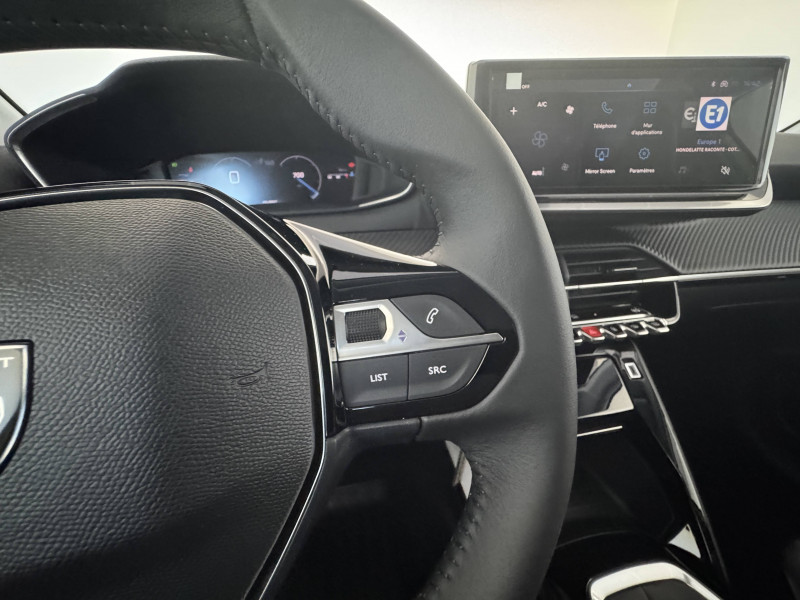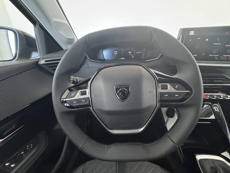1 prise USB type C (Charge) et 1 prise USB type A (Charge) pour passagers AR / 1 prise USB type C ( Data+charge ) et 1 prise USB type C (Charge) sur console AV / 3 poignées de maintien rétractables (1passager à l'AV et 2 à l'AR) / 6 Airbags - Frontaux auto-adaptatifs, latéraux AV et rideaux AV et AR / 6 HP (2 tweeters et 2 woofers à l'AV et 2 larges bandes à l'AR) / Accoudoirs sur portes AV et AR en TEP avec surpiqûre Quartz / Aide graphique et sonore au stationnement AV et AR / Air conditionné automatique mono-zone / Antenne requin / Becquet rapporté Noir Brillant / Calandre haute de gamme noir grainée avec marquage couleur caisse / Ceinture de sécurité AR centrale 3 points, avec détection de non bouclage / Ceintures de sécurité AR latérales avec enrouleurs pyrotechniques, limiteurs d'effort et détection de non bouclage / Ceintures de sécurité AV conducteur et passager à enrouleurs pyrotechniques avec limiteurs d'effort et détection de non bouclage / Commande d'ouverture des portes couleur caisse / Console haute avec accoudoir & frein de stationnement électrique 1 prise USB type C (Charge) et 1 prise USB type A (Charge) pour passagers AR, Sélecteur de mode de conduite Normal/Eco / Détection de sous-gonflage indirecte / Eclairage coffre à lampe / Eclairage intérieur Plafonnier AV A-DOME 3 ampoules (1 lampe, 2 liseuses AV) / Enjoliveur bas de calandre Noir Brillant / Enjoliveur DRL Noir Brillant / Enjoliveur entre feux AR noir brillant / Enjoliveur supérieur de calandre Noir Brillant / ESP Déconnectable avec aide au démarrage en pente / Essuie-vitre AV à déclenchement automatique / Feux AR signature 3 griffes, stop à LEDs, recul et indicateur de direction à lampe / Habitacle et ciel de pavillon clair / Jantes alliage 16" diamantées NOMA bi--ton vernis brillant et Noir Orbital / Jupes AR inférieure noir grainé / Jupes AR supérieure Noir brillant / Lécheurs de vitres Noir Mat / Lève-vitres AR électriques et séquentiels avec antipincement / Lève-vitres AV électriques et séquentiels avec antipincement / Pack Safety Régulateur / Limiteur de vitesse, Freinage d'urgence automatique avec alerte risque de collision, Alerte active de franchissement involontaire de ligne et bas côté, Reconnaissance étendue des panneaux de signalisation et préconisation de vitesse, Alerte attention conducteur / Pack Visibilité Allumage automatique des feux de croisement / Panneaux de porte AV avec médaillon décor Carbone injecté et baguette Noir brillante avec tampographie Quartz / Panneaux de portes AR injectés grain Karsten sans baguette / PEUGEOT Connect SOS & Assistance et Teleservices SOS & Assistance : Appel d'urgence automatique ou manuel par push SOS, et mise en relation directe avec la plateforme d'assistance PEUGEOT (24h/24 7j/7) , Teleservices : Détection du besoin d'une intervention technique ou d'une opération d'entretien périodique et transmission au réseau PEUGEOT pour prise de rendez vous / Peugeot i-Cockpit avec combiné tête haute 10'' numérique / Peugeot i-Connect Radio DAB avec écran tactile couleur personnalisable 10" HD,Bluetooth, Mirror Screen sans fil (Apple CarPlay/Android Auto), Wifi, 1 prise USB type C ( Data+charge ) et 1 prise USB type C (Charge) sur console AV / Planche de bord Slush avec Décor Carbone slush et baguette Noir brillante avec jonc Chromé / Prise 12V et rangement pour smartphone en façade centrale / Programme de Stabilité Electronique (ESC) avec ASR, ABS, REF, AFU, CDS et TSM / Projecteurs "Peugeot LED Technology" avec feux diurnes à LED 3 griffes / Rétroviseur intérieur électrochrome / Rétroviseurs extérieurs dégivrants avec réglage et rabattement électriques / Sellerie tissu CASUAL LOMSA embossé, accompagnement TEP Isabella, tri matière LOMSA et surpiqûres Quartz / Télécommande 3 boutons + clé standard / Vitres latérales AR et lunette AR chauffante temporisée surteintées / Volant compact croute de cuir avec commandes multimédia intégrées
