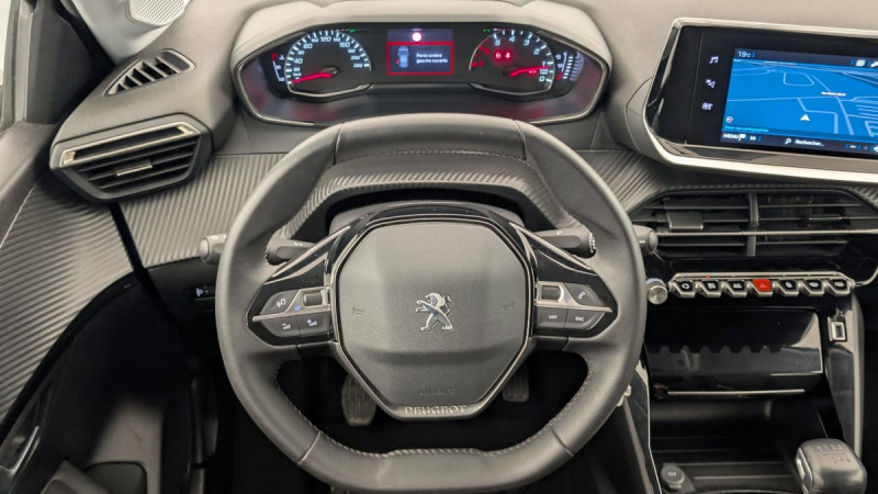 Véhicule livré sans Kit anti Crevaison ni Roue de secours / Détection de sous-gonflage indirecte / Avertisseur de temps de conduite / Rétroviseur intérieur photosensible / Aide graphique et sonore au stationnement AR / Essuie-vitre AV à déclenchement automatique / Pack Safety : Reconnaissance étendue des panneaux de signalisation et préconisation de vitesse Alerte active de franchissement involontaire de ligne et bas côté Freinage d'urgence automatique (Active Safety Brake) avec alerte risque de collision (Distance Alert) Alerte attention conducteur par caméra / Frein de stationnement électrique avec aide au démarrage en pente et serrage automatique / Ceintures de sécurité AV conducteur et passager à enrouleurs pyrotechniques avec limiteurs d'effort et détection de non bouclage / Ceinture de sécurité AR centrale 3 points, avec détection de non bouclage / Ceintures de sécurité AR latérales avec enrouleurs pyrotechniques, limiteurs d'effort et détection de non bouclage / Programme de Stabilité Electronique (ESC) avec ASR, ABS, REF, AFU, CDS et TSM / Fixations suivant norme ISOFIX aux places latérales AR avec étiquettes de localisation, et Top Tether / Volant compact croute de cuir, Lion chromé et commandes multimédia sur volant / Eclairage intérieur à ampoules : plafonnier AV à 3 spots (1 lampe et 2 liseuses) / Peugeot i-Cockpit avec combiné tête haute analogique et matrice couleur 3,5" / 6 HP (2 tweeters et 2 woofers à l'AV et 2 larges bandes à l'AR) / Eclairage coffre à lampe / Bandeau entre feux AR Noir Brillant / Télécommande 3 boutons + clé standard / Console haute avec accoudoir intégré / Vitres latérales AR et lunette AR chauffante temporisée surteintées / Fonction DAB (Radio Numérique Terrestre) / Air conditionné automatique mono-zone / Planche de bord slush et panneaux de portes AV avec décors aspect carbone / Calandre avec grille supérieure avec marquage Chrome Brillant et enjoliveur supérieur noir grainé / Jupes de pare-chocs AR inférieure Noir grainée et supérieure Noir brillant / Radio avec écran tactile 7" couleur capacitif, 2 prises USB (DATA type A, recharge type C) sur console AV / 2 prises USB (Recharge type A) sur console basse pour passagers AR / Fonction "Mirror Screen" (Apple CarPlay / Android Auto ) / Rétroviseurs extérieurs dégivrants avec réglage et rabattement électriques / Décor panneaux de portes Noir et Azure / Projecteurs 'Peugeot LED Technology', indicateurs de direction à ampoules / Sellerie Tri-matières tissu COSY / TEP Mistral, surpiqûres Mentholées / Lève-vitres AV électriques et séquentiels avec antipincement / / Véhicules équivalents: Clio - C3 - Yaris