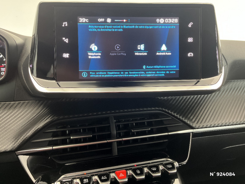 Jupes de pare-chocs AR inférieure et supérieure Noir grainée / Vitres latérales AR et lunette AR chauffante temporisée surteintées / Habitacle et ciel de pavillon gris clair / Planche de bord slush et panneaux de portes AV avec décors aspect carbone / Rétroviseurs extérieurs dégivrants avec réglage et rabattement électriques / Pare-brise teinté acoustique / Teinte métallisée Jaune Faro / Aide graphique et sonore au stationnement AR / 6 haut-parleurs (2 tweeters et 2 woofers à l'AV et 2 larges bandes à l'AR) / Programme de Stabilité Electronique (ESC) avec ASR, ABS, REF, AFU, CDS et TSM / Monogramme extérieur "Style" Noir Onyx / Eclairage coffre à lampe / Peugeot i-Cockpit avec combiné tête haute analogique et matrice couleur 3"5 / Calandre avec grille supérieure avec marquage Chrome Brillant et enjoliveur supérieur noir grainé / Eclairage intérieur à ampoules : plafonnier AV à 3 spots (1 lampe et 2 liseuses) / Jantes alliage 16" SOHO diamantées peintes Gris Storm / Volant compact croute de cuir, Lion chromé et commandes multimédia sur volant / Kit de dépannage de pneumatique / Fixations suivant norme ISOFIX aux places latérales AR avec étiquettes de localisation, et Top Tether / Radio avec écran tactile capacitif 7" couleur, 1 prise USB (DATA type A) sur console AV / Ceintures de sécurité AV conducteur et passager à enrouleurs pyrotechniques avec limiteurs d'effort et détection de non bouclage / Ceintures de sécurité AR latérales avec enrouleurs pyrotechniques, limiteurs d'effort et détection de non bouclage / Rétroviseur intérieur à réglage jour/nuit manuel / Ceinture de sécurité AR centrale 3 points, avec détection de non bouclage / 3 poignées de maintien (1 à l'AV et 2 à l'AR) / Lève-vitres AV électriques et séquentiels avec antipincement / 1 Poignée de maintien passager AV / Télécommande 3 boutons + clé standard / Fonction "Mirror Screen" (Apple CarPlay / Android Auto ) / Lève-vitres AR électriques et séquentiels avec antipincement / Fonction DAB (Radio Numérique Terrestre) / Bandeau entre feux AR noir brillant / Sellerie Tri matière Tissu PNEUMA 3D, surpiqûre Bleu Azure / Projecteurs 'Peugeot LED Technology', indicateurs de direction à ampoules / Décor panneaux de portes Noir et Azure / Détection de sous-gonflage indirecte / Seuil de portes lettrage "PEUGEOT" / Pack Safety