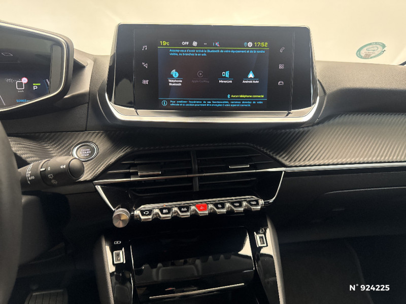 Rétroviseurs extérieurs dégivrants avec réglage et rabattement électriques / Avertisseur de temps de conduite / Planche de bord slush et panneaux de portes AV avec décors aspect carbone / Habitacle et ciel de pavillon gris clair / Calandre haut de gamme avec grille supérieure avec marquage couleur caisse et enjoliveur supérieur Noir Brillant / Eclairage intérieur à ampoules : plafonnier AV à 3 spots (1 lampe et 2 liseuses) / Volant compact croute de cuir, Lion chromé et commandes multimédia sur volant / Sans seuil de portes lettrage "PEUGEOT" / Radio avec écran tactile 7" couleur capacitif, 2 prises USB (DATA type A, recharge type C) sur console AV / Peugeot i-Cockpit avec combiné tête haute analogique et matrice couleur 3"5 / Jupes de pare-chocs AR inférieure et supérieure Noir brillant / Passages de roue Noir brillant / Câble électrique mode 3, prises de charge T2/T2 / Rétroviseur intérieur photosensible / Ceinture de sécurité AR centrale 3 points, avec détection de non bouclage / Ceintures de sécurité AV conducteur et passager à enrouleurs pyrotechniques avec limiteurs d'effort et détection de non bouclage / Eclairage coffre à lampe / Aide graphique et sonore au stationnement AR / Teinte métallisée Jaune Faro / Frein de stationnement électrique avec aide au démarrage en pente et serrage automatique / Fixations suivant norme ISOFIX aux places latérales AR avec étiquettes de localisation, et Top Tether / PEUGEOT Connect SOS & Assistance et Telemaintenance / Kit de dépannage de pneumatique / Visio Park 1 Caméra de recul avec restitution sur l'écran tactile d'une vue AR et d'une vue de dessus de l'environnement AR du véhicule + Aide graphique et sonore au stationnement AR / Chargeur embarqué 7,4 kW monophasé / Lève-vitres AV électriques et séquentiels avec antipincement / 1 Poignée de maintien passager AV / 3 poignées de maintien (1 à l'AV et 2 à l'AR) / 2 prises USB (Recharge type A) sur console basse pour passagers AR / Essuie-vitre AV à déclenchement automatique / Ceintures de sécurité AR latérales avec enrouleurs pyrotechniques, limiteurs d'effort et détection de non bouclage / Sellerie Tri-matières tissu COSY / TEP Mistral, surpiqûres Mentholées / Pare-brise teinté acoustique / 6 haut-parleurs (2 tweeters et 2 woofers à l'AV et 2 larges bandes à l'AR) / Programme de Stabilité Electronique (ESC) avec ASR, ABS, REF, AFU, CDS et TSM / Détection de sous-gonflage indirecte / Console haute avec accoudoir intégré / Air conditionné automatique mono-zone / Projecteurs 'Peugeot LED Technology', indicateurs de direction à ampoules / Démarrage mains libres avec 2 télécommandes 3 boutons / Décor panneaux de portes Noir et Azure / Bandeau entre feux AR noir brillant / Pack Safety / Lève-vitres AR électriques et séquentiels avec antipincement / Fonction "Mirror Screen" (Apple CarPlay / Android Auto ) / Fonction DAB (Radio Numérique Terrestre) / Vitres latérales AR et lunette AR chauffante temporisée surteintées / Feux diurnes à LED sous projecteurs