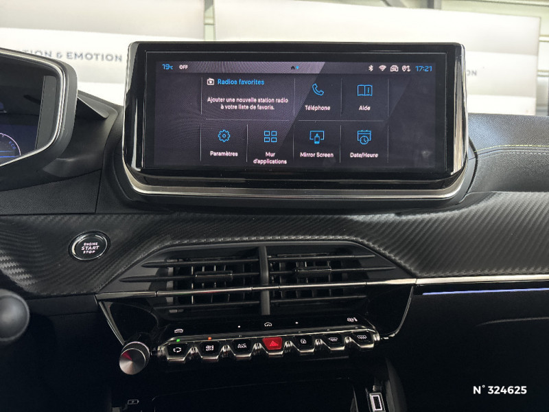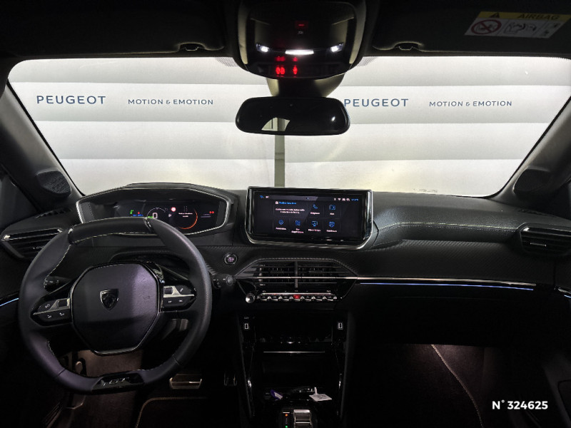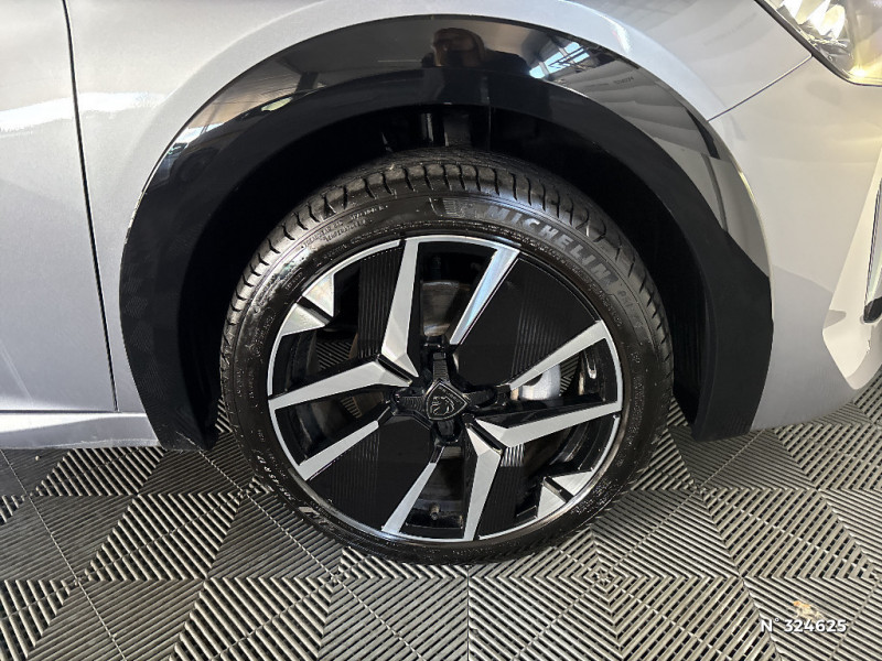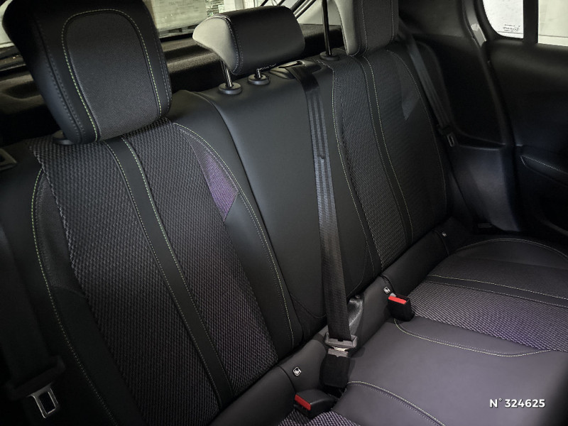 Peugeot Connect SOS & Assistance et Teleservices SOS & Assistance : Appel d'urgence automatique ou manuel par push SOS, et mise en relation directe avec la plateforme d'assistance PEUGEOT (24h/24 7j/7) , Teleservices : Détection du besoin d'une intervention technique ou d'une opération d'entretien périodique et transmission au réseau PEUGEOT pour prise de rendez vous / Peugeot i-Cockpit 3D avec combiné tête haute numérique 10'' / Peugeot i-Connect: Radio DAB avec écran tactile couleur personnalisable 10" HD, Bluetooth - Mirror Screen sans fil (Apple CarPlay/Android Auto) - Wifi - 1 prise USB type C ( Data+charge), 1 prise USB type C (Charge) sur console AV - 1 prise USB type C (Charge) et 1 prise USB type A (Charge) pour passagers AR / Accoudoirs sur portes AV et AR en TEP avec surpiqûre Adamite / Air conditionné automatique mono-zone / Antenne requin / 4 poignées de maintien rétractables (2 à l'AV et 2 à l'AR) / 6 Airbags (Frontaux auto-adaptatifs, latéraux AV et rideaux AV/AR) / 6 HPs (2 tweeters et 2 woofers à l'AV et 2 HPs à l'AR) / Vitres latérales AR et lunette AR chauffante temporisée surteintées / Volant compact cuir fleur avec commandes multimédia intégrées et badge GT / Seuils de portes aluminium avec lettrage PEUGEOT / Siège passager AV à réglage manuel en hauteur / Surtapis AV/AR / Télécommande 3 boutons + clé standard / Visiopark 1 Caméra de recul HD, aide au stationnement AV et AR graphique et sonore / Sellerie tissu BELOMKA, accompagnement TEP Isabella, trimatière Uni Capy et surpiqûres Vert Adamite / Planche de bord Slush avec décor carbone slush et double surpiqûres Adamite/Tramontane et baguette Noir brillante avec jonc chromé et jonc lumineux / Prise 12V et rangement pour smartphone en faà§ade centrale / Programme de Stabilité Electronique (ESC) avec ASR, ABS, REF, AFU, CDS et TSM / Projecteurs "Peugeot Full LED Technology" avec feux diurnes à LED 3 griffes / Rétroviseur intérieur électrochrome / Rétroviseurs extérieurs dégivrants avec réglage et rabattement électriques / Habitacle et ciel de pavillon Noir / Intervalle de maintenance 25 000 km ou 2 ans + Visite annuelle / Jantes alliage 17" diamantées YANAKA bi--ton vernis brillant et Noir Orbital avec inserts Noir Orbital et vernis mat / Jupes AR inférieure Noir brillant / Feux AR signature 3 griffes, stop, recul et indicateur de direction à LEDs / Jupes AR supérieure Noir brillant / Lécheurs de vitres latérales Noir Brillant / Lève-vitres AR électriques et séquentiels avec antipincement / Lève-vitres AV électriques et séquentiels avec antipincement / Eclairage intérieur Eclairager AV I-DOME à LED (1 plafonnier et 2 liseuses), 2 liseuses à LED AR, Miroir de courtoisie dans pare-soleil éclairéà LED, Eclairage à LED partie basse rangement et caves à pieds / Eclairage polyambiant 8 couleurs (Liés aux modes de conduite) / Enjoliveur bas de calandre noir grainé / Enjoliveur DRL Noir grainé / Accès et démarrage mains libres Proximity / Enjoliveur entre feux AR noir brillant / Enjoliveur supérieur de calandre Noir grainé / Enjoliveurs d'ailes Noir Brillant / ESP Déconnectable avec aide au démarrage en pente / Essuie-vitre AV à déclenchement automatique / Becquet rapporté Noir Brillant / Boîte automatique à variation continue / Câble électrique mode 3 triphasé 22 kW / Calandre haute de gamme noir grainée avec marquage couleur caisse / Ceinture de sécurité AR centrale 3 points, avec détection de non bouclage / Ceintures de sécurité AR latérales avec enrouleurs pyrotechniques, limiteurs d'effort et détection de non bouclage / Ceintures de sécurité AV conducteur et passager à enrouleurs pyrotechniques avec limiteurs d'effort et détection de non bouclage / Chargeur embarqué 7,4kW monophasé bi-directionnel (Prédisposéà la fonction V2L - Vehicle To Load) / Commande d'ouverture des portes couleur caisse / Commutation automatique des feux de route / feux de croisement / Console haute avec accoudoir & frein de stationnement électrique 1 prise USB type C (Charge) et 1 prise USB type A (Charge) pour passagers AR, Sélecteur de mode de conduite Normal/Eco/Sport / Détection de sous-gonflage indirecte / Eclairage coffre à lampe / Pack Safety Régulateur / Limiteur de vitesse, Freinage d'urgence automatique avec alerte risque de collision, Freinage automatique d'urgence avec détection élargie (3 caméras haut de pare-brise) et protection des usagers de la route vulnérables (piétons, cyclistes,), Alerte active de franchissement involontaire de ligne et bas côté, Reconnaissance étendue des panneaux de signalisation et préconisation de vitesse, Alerte attention conducteur / Pack Visibilité Allumage automatique des feux de croisement / Panneaux de porte AR avec grain Karsten avec baguette Noir brillant / Panneaux de porte AV avec médaillon TPE surmoulé Carbone, baguette Noir brillante avec jonc lumineux (8 couleurs) et crosse de tirage TEP avec surpiqûres Adamite / Pédalier Sport aluminium
