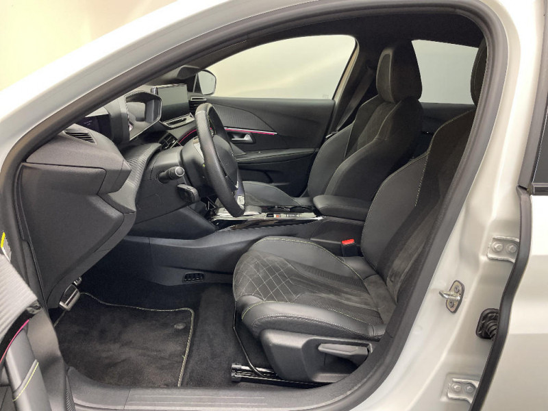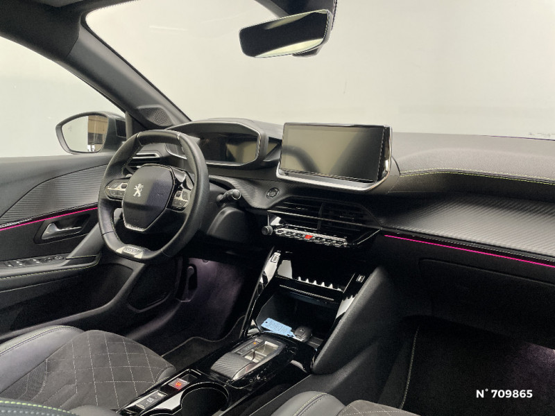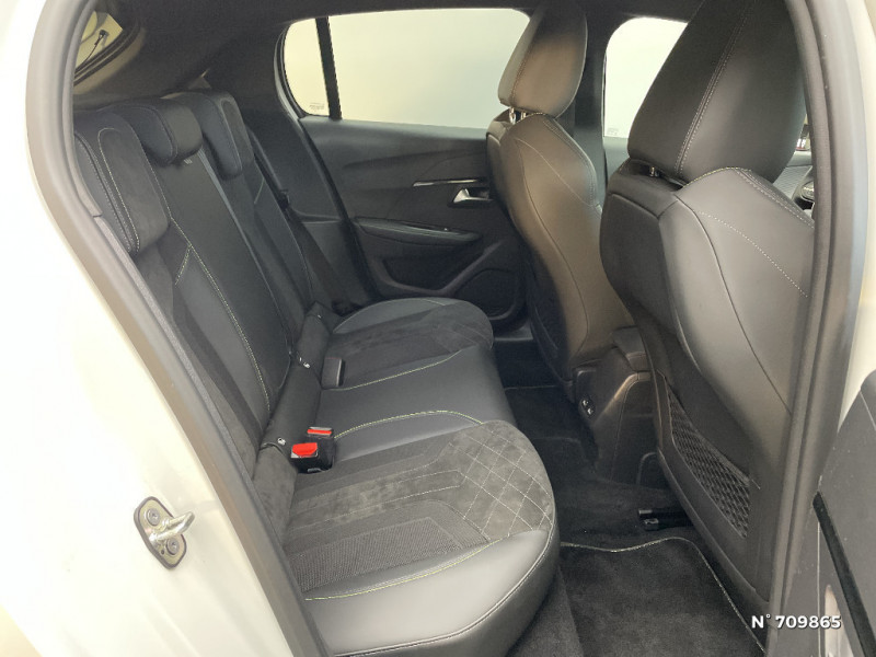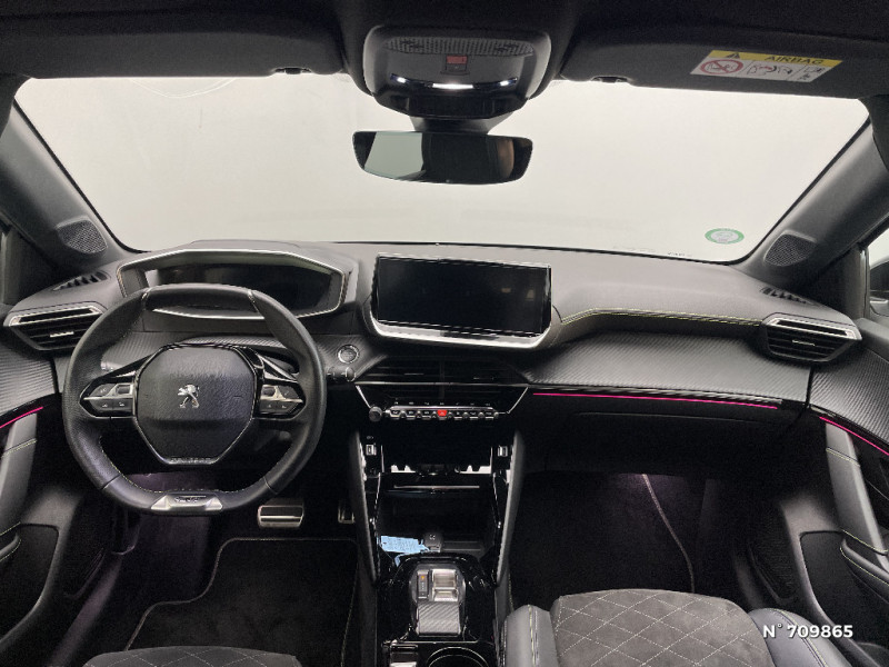 Passages de roue Noir brillant / Pédalier aluminium / PEUGEOT Connect SOS & Assistance / PEUGEOT Connect SOS & Assistance et Telemaintenance / PEUGEOT Connect SOS & Assistance et Telemaintenance / Peugeot i-Cockpit 3D avec combiné tête haute numérique 3D / Planche de bord slush surpiquée et panneaux de portes AV avec décors aspect carbone et éclairage polyambiant 8 couleurs / Eclairage intérieur à LED : plafonniers tactiles AV (1 lampe et 2 liseuses) et AR (2 liseuses), pares-soleils, cave à pieds / Enjoliveurs de pied milieu brillant avec sérigraphies AV / Essuie-vitre AV à déclenchement automatique / Feux diurnes à LED sous projecteurs / Filets aumônières au dos des sièges AV / Fixations suivant norme ISOFIX aux places latérales AR avec étiquettes de localisation, et Top Tether / Fixations suivant norme ISOFIX sur siège passager AV avec étiquettes de localisation / Fonction DAB (Radio Numérique Terrestre) / Fonction Mirror Screen / Fonction "Mirror Screen" (Apple CarPlay / Android Auto ) / Fonction "Mirror Screen" (Apple CarPlay / Android Auto / MirrorLink) / Frein de stationnement électrique avec aide au démarrage en pente et serrage automatique / Habitacle et ciel de pavillon Noir / Jantes alliage 17'' SHAW avec inserts spécifique EV / Jantes alliage 17'' SHAW avec inserts spécifique EV / Jupes de pare-chocs AR inférieure et supérieure Noir brillant / Kit de dépannage de pneumatique / Rétroviseur intérieur photosensible frameless / Rétroviseur intérieur photosensible frameless - sans cadre / Rétroviseurs extérieurs dégivrants avec réglage et rabattement électriques / Rétroviseurs extérieurs dégivrants avec réglage et rabattement électriques, éclairage de seuil / Sellerie Alcantara / TEP, surpiqûres Bleu Moyen et Vert Adamite / Sellerie Alcantara Mistral/TEP, surpiqûres Bleu Moyen et Vert Adamite / Sellerie Alcantara Mistral/TEP, surpiqûres Vert Adamite / Seuils de portes AV en Inox / Seuils de portes "Peugeot" / Siège passager AV à réglage manuel en hauteur et lombaire pneumatique / Signature LED sur pare-choc AV / Signature lumineuse avant DRL à LED sous projecteurs / Surtapis AV et AR noirs avec surpiqûres Vert Adamite / Système stop & go couplé avec l'assistance au positionnement sur la voie / Teinte métallisée Jaune Faro / Visio Park 1 / Visio Park 1: Caméra de recul avec restitution sur l'écran tactile d'une vue AR et d'une vue de dessus de l'environnement AR du véhicule + Aide graphique et sonore au stationnement AR / Vitres latérales AR et lunette AR chauffante temporisée surteintées / Vitres latérales AR et lunette AR chauffante temporisée teintées / Vitres latérales AR et lunette AR surteintées / Volant compact cuir fleur avec laà§age vert, Lion chromé et badge GT et commandes multimédia sur volant / Volet de rangement smartphone / 1 Poignée de maintien passager AV / 2 prise USB sur console AV / 2 prises USB (Recharge type A) sur console basse pour passagers AR / 4 poignées de maintien (2 à l'AV et 2 à l'AR) / 6 HP (2 tweeters et 2 woofers à l'AV et 2 larges bandes à l'AR) / Programme de Stabilité Electronique (ESC) avec ASR, ABS, REF, AFU, CDS et TSM / Projecteurs "Peugeot Full Led Technology" / Projecteurs "Peugeot Full LED Technology" avec clignotants AV à LED / Projecteurs "Peugeot Full LED Technology" avec feux diurnes et clignotants AV à LED / Projecteurs "Peugeot Full LED Technology" avec signature 3 griffes / Air conditionné automatique mono-zone / Avertisseur de temps de conduite / Bandeau entre feux AR Noir brillant / Câble électrique mode 2, prises de charge T2/EF type Green'up / Calandre haut de gamme avec grille supérieure avec marquage couleur caisse et enjoliveur supérieur Noir Brillant / Ceinture de sécurité AR centrale 3 points, avec détection de non bouclage / Ceintures de sécurité AR latérales avec enrouleurs pyrotechniques, limiteurs d'effort et détection de non bouclage / Ceintures de sécurité AV conducteur et passager à enrouleurs pyrotechniques avec limiteurs d'effort et détection de non bouclage / Chargeur embarqué 7,4kW monophasé / Commutation automatique des feux de route / feux de croisement / Console haute avec accoudoir central finition TEP et surpiqûres tramontane / Console haute avec accoudoir intégré / Décor panneaux de portes de portes Noir et Orange / Détection de sous-gonflage indirecte / Eclairage coffre à lampe / Accès et démarrage mains libres Proximity / Aide graphique et sonore au stationnement AR / Aide graphique et sonore au stationnement AR / Aide graphique et sonore au stationnement AV / Lécheurs de vitres latérales Noir Brillant / Lève-vitres AR électriques et séquentiels avec antipincement / Lève-vitres AV électriques et séquentiels avec antipincement / Navigation 3D Connectée avec écran tactile 10'' HD couleur : 2 prises USB (Data et recharge) sur console AV, 2 prises AR sur console haut(recharge), Fonction DAB (Radio Numérique Terrestre) / Navigation 3D Connectée avec écran tactile 10'' HD couleur : 2 prises USB (Data et recharge) sur console AV, 2 prises AR sur console haut(recharge), Fonction DAB (Radio Numérique Terrestre) / Navigation 3D connectée avec reconnaissance vocale, écran tactile capacitif 10" HD / Navigation 3D connectée avec reconnaissance vocale, écran tactile capacitif 10" HD / Navigation 3D connectée avec reconnaissance vocale, écran tactile capacitif 10" HD 2 prises USB sur console AV, Cartographie Europe,Trafic en temps réel by TomTom Services (Informations trafic, Stations services, Parkings, Météo, Recherche Locale), abonnement 3 ans inclus Zones de danger by TomTom Services, abonnement 3 ans inclus. Connexion automatique et permanente via carte SIM intégrée au véhicule / Pack Drive Assist Plus / Pack Safety / Pack Safety Plus / Pack Safety Plus / Pare-brise teinté acoustique