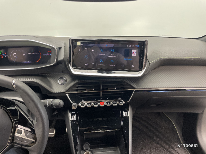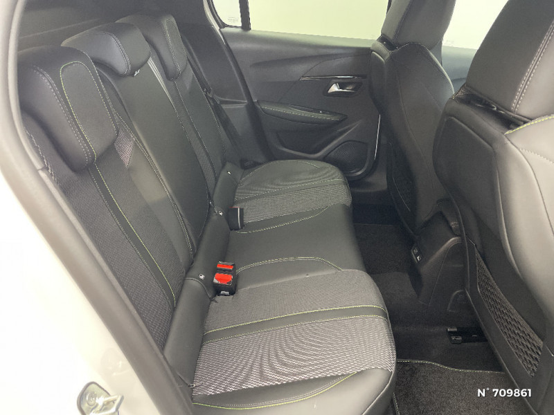 Jantes alliage 17" diamantées YANAKA bi--ton vernis brillant et Noir Orbital avec inserts Noir Orbital et vernis mat / Accès et démarrage mains libres Proximity / Jupes AR inférieure Noir brillant / Rétroviseurs extérieurs dégivrants avec réglage et rabattement électriques / Jupes AR supérieure Noir brillant / Eclairage polyambiant 8 couleurs (Liés aux modes de conduite) / ESP Déconnectable avec aide au démarrage en pente / 4 poignées de maintien rétractables (2 à l'AV et 2 à l'AR) / Eclairage intérieur Eclairager AV I-DOME à LED (1 plafonnier et 2 liseuses), 2 liseuses à LED AR, Miroir de courtoisie dans pare-soleil éclairéà LED, Eclairage à LED partie basse rangement et caves à pieds / Enjoliveurs d'ailes Noir Brillant / Accoudoirs sur portes AV et AR en TEP avec surpiqûre Adamite / Panneaux de porte AR avec grain Karsten avec baguette Noir brillant / Panneaux de porte AV avec médaillon TPE surmoulé Carbone, baguette Noir brillante avec jonc lumineux (8 couleurs) et crosse de tirage TEP avec surpiqûres Adamite / Feux AR signature 3 griffes, stop, recul et indicateur de direction à LEDs / Antenne requin / Calandre haute de gamme noir grainée avec marquage couleur caisse / Prise 12V et rangement pour smartphone en faà§ade centrale / Enjoliveur DRL Noir grainé / Enjoliveur bas de calandre noir grainé / Enjoliveur supérieur de calandre Noir grainé / Commande d'ouverture des portes couleur caisse / Enjoliveur entre feux AR noir brillant / Becquet rapporté Noir Brillant / 6 Airbags (Frontaux auto-adaptatifs, latéraux AV et rideaux AV/AR) / Pack Visibilité Allumage automatique des feux de croisement / Volant compact cuir fleur avec commandes multimédia intégrées et badge GT / Projecteurs "Peugeot Full LED Technology" avec feux diurnes à LED 3 griffes / Siège passager AV à réglage manuel en hauteur / Visiopark 1 Caméra de recul HD, aide au stationnement AV et AR graphique et sonore / Seuils de portes aluminium avec lettrage PEUGEOT / Planche de bord Slush avec décor carbone slush et double surpiqûres Adamite/Tramontane et baguette Noir brillante avec jonc chromé et jonc lumineux / Intervalle de maintenance 25 000 km ou 1 an / Peugeot i-Connect: Radio DAB avec écran tactile couleur personnalisable 10" HD, Bluetooth - Mirror Screen sans fil (Apple CarPlay/Android Auto) - Wifi - 1 prise USB type C ( Data+charge), 1 prise USB type C (Charge) sur console AV - 1 prise USB type C (Charge) et 1 prise USB type A (Charge) pour passagers AR / Rétroviseur intérieur électrochrome / Lève-vitres AV électriques et séquentiels avec antipincement / Pédalier Sport aluminium / Détection de sous-gonflage indirecte / Surtapis AV/AR / Essuie-vitre AV à déclenchement automatique / Lève-vitres AR électriques et séquentiels avec antipincement / Habitacle et ciel de pavillon Noir / Commutation automatique des feux de route / feux de croisement / Ceintures de sécurité AV conducteur et passager à enrouleurs pyrotechniques avec limiteurs d'effort et détection de non bouclage / Ceinture de sécurité AR centrale 3 points, avec détection de non bouclage / Ceintures de sécurité AR latérales avec enrouleurs pyrotechniques, limiteurs d'effort et détection de non bouclage / Programme de Stabilité Electronique (ESC) avec ASR, ABS, REF, AFU, CDS et TSM / Lécheurs de vitres latérales Noir Brillant / 6 HPs (2 tweeters et 2 woofers à l'AV et 2 HPs à l'AR) / Eclairage coffre à lampe / Télécommande 3 boutons + clé standard / Peugeot i-Cockpit 3D avec combiné tête haute numérique 10'' / Vitres latérales AR et lunette AR chauffante temporisée surteintées / Air conditionné automatique mono-zone / Peugeot Connect SOS & Assistance et Teleservices SOS & Assistance : Appel d'urgence automatique ou manuel par push SOS, et mise en relation directe avec la plateforme d'assistance PEUGEOT (24h/24 7j/7) , Teleservices : Détection du besoin d'une intervention technique ou d'une opération d'entretien périodique et transmission au réseau PEUGEOT pour prise de rendez vous / Sellerie tissu BELOMKA, accompagnement TEP Isabella, trimatière Uni Capy et surpiqûres Vert Adamite / Console haute avec accoudoir & frein de stationnement électrique 1 prise USB type C (Charge) et 1 prise USB type A (Charge) pour passagers AR, Sélecteur de mode de conduite Normal/Eco/Sport / Boîte de vitesse automatique, séquentielle (6 rapports) / Pack Safety Régulateur / Limiteur de vitesse, Freinage d'urgence automatique avec alerte risque de collision, Freinage automatique d'urgence avec détection élargie (3 caméras haut de pare-brise) et protection des usagers de la route vulnérables (piétons, cyclistes,), Alerte active de franchissement involontaire de ligne et bas côté, Reconnaissance étendue des panneaux de signalisation et préconisation de vitesse, Alerte attention conducteur
