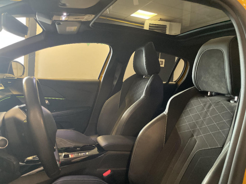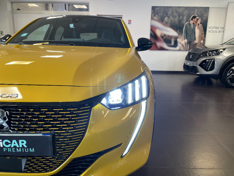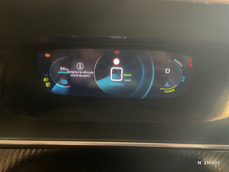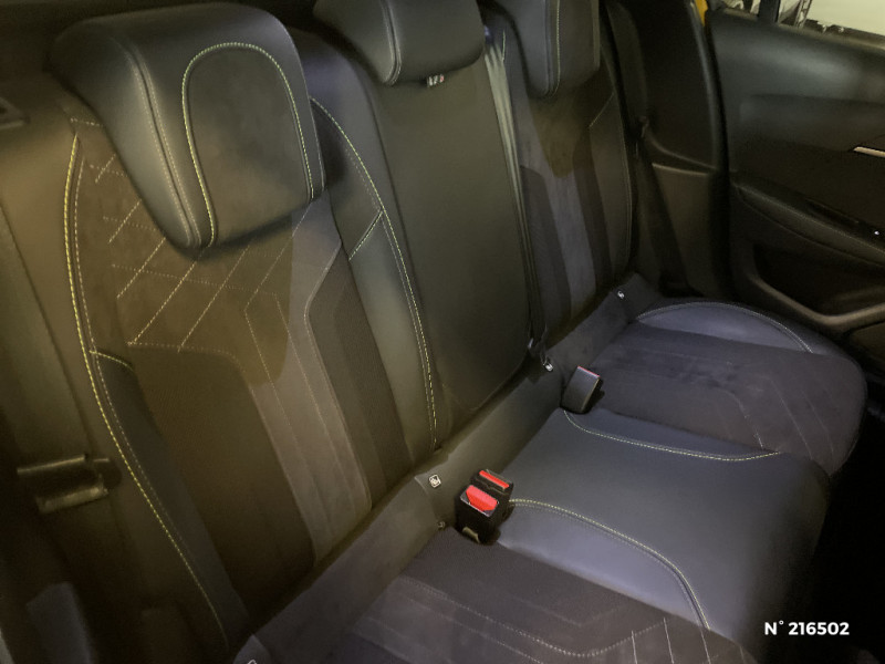 Signature LED sur pare-choc AV / Filets aumônières au dos des sièges AV / Rétroviseurs extérieurs dégivrants avec réglage et rabattement électriques,éclairage de seuil / Enjoliveurs de pied milieu brillant avec sérigraphies AV / PEUGEOT Connect SOS & Assistance et Telemaintenance / Teinte métallisée Jaune Faro / Calandre haut de gamme avec grille supérieure avec marquage couleur caisse et enjoliveur supérieur Noir Brillant / Fonction Mirror Screen / Pare-brise teinté acoustique / Volant compact cuir fleur avec laà§age vert, Lion chromé et badge GT et commandes multimédia sur volant / 2 prises USB (Recharge type A) sur console basse pour passagers AR / Console haute avec accoudoir intégré / Vitres latérales AR et lunette AR chauffante temporisée teintées / Lécheurs de vitres latérales Noir Brillant / Passages de roue Noir brillant / Planche de bord slush surpiquée et panneaux de portes AV avec décors aspect carbone et éclairage polyambiant 8 couleurs / Surtapis AV et AR noirs avec surpiqûres Vert Adamite / Peugeot i-Cockpit 3D avec combiné tête haute numérique 3D / 4 poignées de maintien (2 à l'AV et 2 à l'AR) / Seuils de portes AV en Inox / Eclairage intérieur à LED : plafonniers tactiles AV (1 lampe et 2 liseuses) et AR (2 liseuses), pares-soleils, cave à pieds / Sellerie Alcantara Mistral/TEP, surpiqûres Vert Adamite / Lève-vitres AV électriques et séquentiels avec antipincement / Essuie-vitre AV à déclenchement automatique / Détection de sous-gonflage indirecte / Rétroviseur intérieur photosensible frameless / Siège passager AV à réglage manuel en hauteur / Projecteurs "Peugeot Full LED Technology" avec clignotants AV à LED / Feux diurnes à LED sous projecteurs / 6 haut-parleurs (2 tweeters et 2 woofers à l'AV et 2 larges bandes à l'AR) / Eclairage coffre à lampe / Jantes alliage 17'' SHAW avec inserts spécifique EV / Fonction "Mirror Screen" (Apple CarPlay / Android Auto / MirrorLink) / Commutation automatique des feux de route / feux de croisement / Ceintures de sécurité AV conducteur et passager à enrouleurs pyrotechniques avec limiteurs d'effort et détection de non bouclage / Avertisseur de temps de conduite / Ceinture de sécurité AR centrale 3 points, avec détection de non bouclage / Vitres latérales AR et lunette AR chauffante temporisée surteintées / Fonction DAB (Radio Numérique Terrestre) / Reconnaissance étendue des panneaux / Seuils de portes "Peugeot" / Navigation 3D Connectée avec écran tactile 10'' HD couleur : 2 prises USB (Data et recharge) sur console AV, 2 prises AR sur console haut(recharge), Fonction DAB (Radio Numérique Terrestre) / Rétroviseurs extérieurs dégivrants avec réglage et rabattement électriques / Console haute avec accoudoir central finition TEP et surpiqûres tramontane / Rétroviseur intérieur photosensible frameless - sans cadre / Pack Drive Assist Plus / Visio Park 1 / Accès et démarrage mains libres Proximity / Pédalier aluminium / Signature lumineuse avant DRL à LED sous projecteurs / Lève-vitres AR électriques et séquentiels avec antipincement / Navigation 3D connectée avec reconnaissance vocale, écran tactile capacitif 10" HD / Projecteurs "Peugeot Full LED Technology" avec feux diurnes et clignotants AV à LED / Air conditionné automatique mono-zone / Visio Park 1 Caméra de recul avec restitution sur l'écran tactile d'une vue AR et d'une vue de dessus de l'environnement AR du véhicule + Aide graphique et sonore au stationnement AR / Câble électrique mode 2, prises de charge T2/EF type Green'up / Ceintures de sécurité AR latérales avec enrouleurs pyrotechniques, limiteurs d'effort et détection de non bouclage / Projecteurs "Peugeot Full Led Technology" / Pack Safety Plus / Aide graphique et sonore au stationnement AR / Vitres latérales AR et lunette AR surteintées / Programme de Stabilité Electronique (ESC) avec ASR, ABS, REF, AFU, CDS et TSM / Fixations suivant norme ISOFIX aux places latérales AR avec étiquettes de localisation, et Top Tether / Fixations suivant norme ISOFIX sur siège passager AV avec étiquettes de localisation / Chargeur embarqué 7,4 kW monophasé / Habitacle et ciel de pavillon noir / Bandeau entre feux AR noir brillant / Volet de rangement smartphone / Jupes de pare-chocs AR inférieure et supérieure Noir brillant / 2 prise USB sur console AV / Frein de stationnement électrique avec aide au démarrage en pente et serrage automatique / Aide graphique et sonore au stationnement AV / PEUGEOT Connect SOS & Assistance / Kit de dépannage de pneumatique