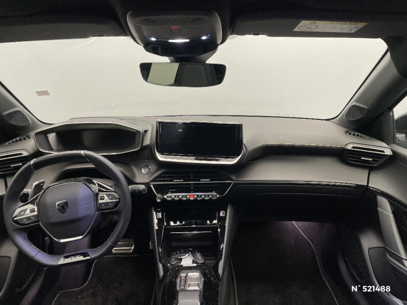 Accès et démarrage mains libres Proximity / Rétroviseur intérieur électrochrome / Lève-vitres AV électriques et séquentiels avec antipincement / Console haute avec accoudoir & frein de stationnement électrique 1 prise USB type C (Charge) et 1 prise USB type A (Charge) pour passagers AR, Sélecteur de mode de conduite Normal/Eco/Sport / Antenne requin / 6 haut-parleurs (2 tweeters et 2 woofers à l'AV et 2 haut-parleurs à l'AR) / Lève-vitres AR électriques et séquentiels avec antipincement / 1 prise USB type C (Charge) et 1 prise USB type A (Charge) pour passagers AR / Détection de sous-gonflage indirecte / Air conditionné automatique mono-zone / Commutation automatique des feux de route / feux de croisement / Peugeot i-Cockpit 3D avec combiné tête haute numérique 3D 10'' / Pack Safety Régulateur / Limiteur de vitesse Freinage d'urgence automatique avec alerte risque de collision Alerte active de franchissement involontaire de ligne et bas côté Reconnaissance étendue des panneaux de signalisation et préconisation de vitesse Alerte attention conducteur / Télécommande 3 boutons + clé standard / Pack Visibilité Allumage automatique des feux de croisement / Siège passager AV à réglage manuel en hauteur / 6 Airbags - Frontaux auto-adaptatifs, latéraux AV et rideaux AV et AR / Vitres latérales AR et lunette AR chauffante temporisée surteintées / Ceintures de sécurité AV conducteur et passager à enrouleurs pyrotechniques avec limiteurs d'effort et détection de non bouclage / 1 prise USB type C ( Data+charge ) et 1 prise USB type C (Charge) sur console AV / Eclairage coffre à lampe / Boîte de vitesse automatique, séquentielle (6 rapports) / Sellerie tissu BELOMKA, accompagnement TEP Isabella, trimatière Uni Capy et surpiqûres Vert Adamit / Volant compact cuir fleur avec commandes multimédia intégrées et badge GT / Projecteurs "Peugeot Full LED Technology" avec feux diurnes à LED 3 griffes / Eclairage polyambiant 8 couleurs (Liés aux modes de conduite) / ESP Déconnectable avec aide au démarrage en pente / Pédalier Sport aluminium / Visiopark 1 Caméra de recul HD, aide au stationnement AV et AR graphique et sonore / Jupes AR supérieure Noir brillant / Pack Safety Régulateur / Limiteur de vitesse, Freinage d'urgence automatique avec alerte risque de collision, Freinage automatique d'urgence avec détection élargie (3 caméras haut de pare-brise) et protection des usagers de la route vulnérables (piétons, cyclistes,), Alerte active de franchissement involontaire de ligne et bas côté, Reconnaissance étendue des panneaux de signalisation et préconisation de vitesse, Alerte attention conducteur / Jupes AR inférieure Noir brillant / Prise 12V et rangement pour smartphone en faà§ade centrale / Enjoliveur DRL Noir grainé / Enjoliveur bas de calandre noir grainé / Commande d'ouverture des portes couleur caisse / Calandre haut de gamme noir grainée avec marquage couleur caisse / Jantes alliage 17'' diamantées YANAKA bi--ton vernis brillant et Noir Orbital avec inserts Noir Orbital et vernis mat / Ceinture de sécurité AR centrale 3 points, avec détection de non bouclage / Enjoliveur supérieur de calandre Noir grainé / Enjoliveur entre feux AR noir brillant / Lécheurs de vitres latérales Noir Brillant / Programme de Stabilité Electronique (ESC) avec ASR, ABS, REF, AFU, CDS et TSM / Surtapis AV et AR / Becquet rapporté Noir Brillant / Essuie-vitre AV à déclenchement automatique / Ceintures de sécurité AR latérales avec enrouleurs pyrotechniques, limiteurs d'effort et détection de non bouclage / Seuils de portes aluminium avec lettrage PEUGEOT / Habitacle et ciel de pavillon noir / Panneaux de porte AV avec médaillon TPE surmoulé Carbone, baguette Noir brillante avec jonc lumineux (8 couleurs) et crosse de tirage TEP avec surpiqûres Adamite / Planche de bord Slush avec Décor Carbone TPE et double surpiqûres Adamite/Tramontane et baguette Noir brillante avec jonc chromé et jonc lumineux / Feux AR signature 3 griffes, stop,recul et indicateur de direction à LEDs / PEUGEOT Connect SOS & Assistance et Teleservices SOS & Assistance : Appel d'urgence automatique ou manuel par push SOS, et mise en relation directe avec la plateforme d'assistance PEUGEOT (24h/24 7j/7) Teleservices : Détection du besoin d'une intervention technique ou d'une opération d'entretien périodique et transmission au réseau PEUGEOT pour prise de rendez vous / 4 poignées de maintien rétractables (2 à l'AV et 2 à l'AR) / Eclairage intérieur Eclairager AV I-DOME à LED (1 plafonnier et 2 liseuses), 2 liseuses à LED AR, Miroir de courtoisie dans pare--soleil éclairéà LED, Eclairage à LED partie basse rangement et caves à pieds / Enjoliveurs d'ailes Noir Brillant / Accoudoirs sur portes AV et AR en TEPavec surpiqûre Adamite / Panneaux de porte AR avec grain Karsten avec baguette Noir brillant / Peugeot i-Connect Radio DAB avec écran tactile couleur personnalisable 10" HD,Bluetooth, Mirror Screen sans fil (Apple CarPlay/Android Auto), Wifi, 1 prise USB type C ( Data+charge ) et 1 prise USB type C (Charge) sur console AV / Rétroviseurs extérieurs dégivrants avec réglage et rabattement électriques