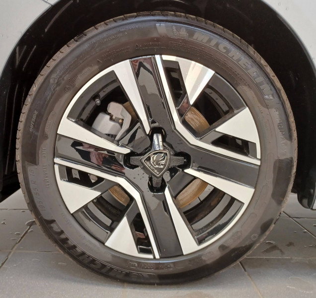 3 poignées de maintien rétractables (1passager à l'AV et 2 à l'AR) / 6 Airbags (Frontaux auto-adaptatifs, latéraux AV et rideaux AV/AR) / 6 HPs (2 tweeters et 2 woofers à l'AV et 2 HPs à l'AR) / Accoudoirs sur portes AV et AR en TEP avec surpiqûre Quartz / Aide graphique et sonore au stationnement AV et AR / Air conditionné automatique mono-zone / Antenne requin / Becquet rapporté Noir Brillant / Boîte de vitesse automatique, séquentielle (6 rapports) / Calandre haute de gamme noir grainée avec marquage couleur caisse / Ceinture de sécurité AR centrale 3 points, avec détection de non bouclage / Ceintures de sécurité AR latérales avec enrouleurs pyrotechniques, limiteurs d'effort et détection de non bouclage / Ceintures de sécurité AV conducteur et passager à enrouleurs pyrotechniques avec limiteurs d'effort et détection de non bouclage / Commande d'ouverture des portes couleur caisse / Console haute avec accoudoir & frein de stationnement électrique 1 prise USB type C (Charge) et 1 prise USB type A (Charge) pour passagers AR, Sélecteur de mode de conduite Normal/Eco/Sport / Détection de sous-gonflage indirecte / Eclairage coffre à lampe / Eclairage intérieur Plafonnier AV A-DOME 3 ampoules (1 lampe, 2 liseuses AV) / Enjoliveur bas de calandre noir grainé / Enjoliveur DRL Noir grainé / Enjoliveur entre feux AR noir brillant / Enjoliveur supérieur de calandre Noir grainé / ESP Déconnectable avec aide au démarrage en pente / Essuie-vitre AV à déclenchement automatique / Feux AR signature 3 griffes, stop à LEDs, recul et indicateur de direction à lampe / Habitacle et ciel de pavillon clair / Jantes alliage 16" diamantées NOMA bi--ton vernis brillant et Noir Orbital / Jupes AR inférieure noir grainé / Jupes AR supérieure Noir brillant / Lécheurs de vitres Noir mat / Lève-vitres AR électriques et séquentiels avec antipincement / Lève-vitres AV électriques et séquentiels avec antipincement / Pack Safety Régulateur / Limiteur de vitesse, Freinage d'urgence automatique avec alerte risque de collision, Freinage automatique d'urgence avec détection élargie (3 caméras haut de pare-brise) et protection des usagers de la route vulnérables (piétons, cyclistes,), Alerte active de franchissement involontaire de ligne et bas côté, Reconnaissance étendue des panneaux de signalisation et préconisation de vitesse, Alerte attention conducteur / Pack Visibilité Allumage automatique des feux de croisement / Panneaux de porte AV avec médaillon décor Carbone injecté et baguette Noir brillante avec tampographie Quartz / Panneaux de portes AR injectés grain Karsten sans baguette / Peugeot Connect SOS & Assistance et Teleservices SOS & Assistance : Appel d'urgence automatique ou manuel par push SOS, et mise en relation directe avec la plateforme d'assistance PEUGEOT (24h/24 7j/7) , Teleservices : Détection du besoin d'une intervention technique ou d'une opération d'entretien périodique et transmission au réseau PEUGEOT pour prise de rendez vous / Peugeot i-Cockpit avec combiné tête haute 10" numérique / Peugeot i-Connect: Radio DAB avec écran tactile couleur personnalisable 10" HD, Bluetooth - Mirror Screen sans fil (Apple CarPlay/Android Auto) - Wifi - 1 prise USB type C ( Data+charge), 1 prise USB type C (Charge) sur console AV / Planche de bord Slush avec Décor Carbone slush et baguette Noir brillante avec jonc Chromé / Prise 12V et rangement pour smartphone en façade centrale / Programme de Stabilité Electronique (ESC) avec ASR, ABS, REF, AFU, CDS et TSM / Projecteurs Peugeot LED Technology avec feux diurnes à LED 3 griffes / Rétroviseur intérieur électrochrome / Rétroviseurs extérieurs dégivrants avec réglage et rabattement électriques / Sellerie tissu CASUAL LOMSA embossé, accompagnement TEP Isabella, trimatière LOMSA et surpiqûres Quartz / Télécommande 3 boutons + clé standard / Vitres latérales AR et lunette AR chauffante temporisée surteintées / Volant compact en croûte de cuir avec commandes multimédia intégrées