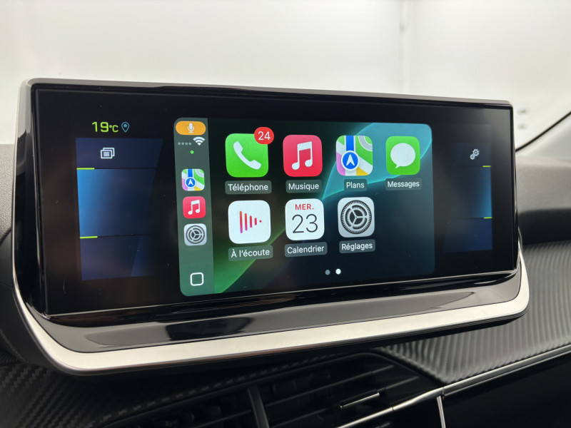 Aide graphique et sonore au stationnement AR: / Air conditionné automatique mono-zone: / Essuie-vitre AV à déclenchement automatique: / Feux diurnes à LED sous projecteurs: / Frein de stationnement électrique avec aide au démarrage en pente et serrage automatique: / Pack Safety: / Projecteurs 'Peugeot LED Technology', indicateurs de direction à ampoules: / Visio Park 1: Caméra de recul avec restitution sur l'écran tactile d'une vue AR et d'une vue de dessus de l'environnement AR du véhicule + Aide graphique et sonore au stationnement AR: / Volant compact croute de cuir, Lion chromé et commandes multimédia sur volant: / 1 Poignée de maintien passager AV: / 2 prises USB (Recharge type A) sur console basse pour passagers AR: / 3 poignées de maintien (1 à l'AV et 2 à l'AR): / 6 HP (2 tweeters et 2 woofers à l'AV et 2 larges bandes à l'AR): / Airbags frontaux et latéraux conducteur et passager AV, rideaux: / Avertisseur de temps de conduite: / Bandeau entre feux AR Noir Brillant: / Calandre haut de gamme avec grille supérieure avec marquage couleur caisse et enjoliveur supérieur Noir Brillant: / Ceinture de sécurité AR centrale 3 points, avec détection de non bouclage: / Ceintures de sécurité AR latérales avec enrouleurs pyrotechniques, limiteurs d'effort et détection de non bouclage: / Ceintures de sécurité AV conducteur et passager à enrouleurs pyrotechniques avec limiteurs d'effort et détection de non bouclage: / Chargeur embarqué 7,4kW monophasé: / Console haute avec accoudoir intégré: / Câble électrique mode 3, prises de charge T2/T2: / Décor panneaux de portes Noir et Azure: / Démarrage mains libres avec 2 télécommandes 3 boutons: / Détection de sous-gonflage indirecte: / Eclairage coffre à lampe: / Eclairage intérieur à ampoules : plafonnier AV à 3 spots (1 lampe et 2 liseuses): / Fixations suivant norme ISOFIX aux places latérales AR avec étiquettes de localisation, et Top Tether: / Fonction "Mirror Screen" (Apple CarPlay / Android Auto ): / Fonction DAB (Radio Numérique Terrestre): / Habitacle et ciel de pavillon gris clair: / Jupes de pare-chocs AR inférieure et supérieure Noir brillant: / Kit de dépannage de pneumatique: / Lève-vitres AR électriques et séquentiels avec antipincement: / Lève-vitres AV électriques et séquentiels avec antipincement: / Pare-brise teinté acoustique: / Passages de roue Noir brillant: / PEUGEOT Connect SOS & Assistance et Telemaintenance: / Peugeot i-Cockpit avec combiné tête haute analogique et matrice couleur 3,5": / Planche de bord slush et panneaux de portes AV avec décors aspect carbone: / Programme de Stabilité Electronique (ESC) avec ASR, ABS, REF, AFU, CDS et TSM: / Radio avec écran tactile 7" couleur capacitif, 2 prises USB (DATA type A, recharge type C) sur console AV: / Rétroviseur intérieur photosensible: / Rétroviseurs extérieurs dégivrants avec réglage et rabattement électriques: / Sans seuil de portes lettrage "PEUGEOT": / Vitres latérales AR et lunette AR chauffante temporisée surteintées: / Sellerie Tri-matières tissu COSY / TEP Mistral, surpiqûres Mentholées: / / Véhicules équivalents: Clio - C3 - Yaris