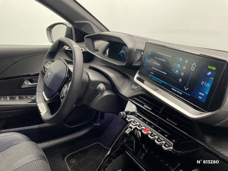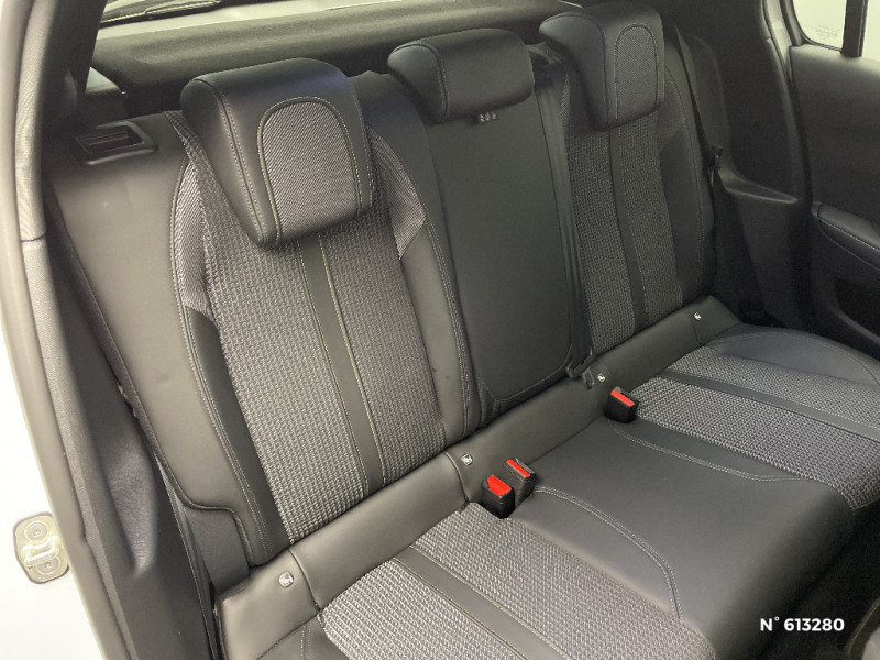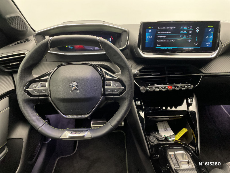 Essuie-vitre AV à déclenchement automatique / Lécheurs de vitres latérales Noir Brillant / Sellerie Tri matière Tissu CAPY/TEP surpiqûres Vert Adamite / 4 poignées de maintien (2 à l'AV et 2 à l'AR) / Passages de roue Noir brillant / Planche de bord slush surpiquée et panneaux de portes AV avec décors aspect carbone et éclairage polyambiant 8 couleurs / Siège passager AV à réglage manuel en hauteur / Radio avec écran tactile 7" couleur capacitif, 2 prises USB (DATA type A, recharge type C) sur console AV / 2 prises USB (Recharge type A) sur console basse pour passagers AR / Ceintures de sécurité AV conducteur et passager à enrouleurs pyrotechniques avec limiteurs d'effort et détection de non bouclage / Eclairage intérieur à LED : plafonniers tactiles AV (1 lampe et 2 liseuses) et AR (2 liseuses), pares-soleils, cave à pieds / Visio Park 1 Caméra de recul avec restitution sur l'écran tactile d'une vue AR et d'une vue de dessus de l'environnement AR du véhicule + Aide graphique et sonore au stationnement AR / Ceintures de sécurité AR latérales avec enrouleurs pyrotechniques, limiteurs d'effort et détection de non bouclage / 6 haut-parleurs (2 tweeters et 2 woofers à l'AV et 2 larges bandes à l'AR) / Volant compact cuir fleur avec laà§age vert, Lion chromé et badge GT et commandes multimédia sur volant / Chargeur embarqué 7,4 kW monophasé / Ceinture de sécurité AR centrale 3 points, avec détection de non bouclage / Eclairage coffre à lampe / Kit de dépannage de pneumatique / Peugeot i-Cockpit avec combiné tête haute analogique et matrice couleur 3"5 / Programme de Stabilité Electronique (ESC) avec ASR, ABS, REF, AFU, CDS et TSM / Câble électrique mode 3, prises de charge T2/T2 / Habitacle et ciel de pavillon noir / Jantes alliage 17'' BRONX avec inserts Noir Brillant et vernis Dark Coat / Surtapis AV et AR noirs avec surpiqûres Vert Adamite / Avertisseur de temps de conduite / Rétroviseur intérieur photosensible frameless / Fixations suivant norme ISOFIX aux places latérales AR avec étiquettes de localisation, et Top Tether / Fixations suivant norme ISOFIX sur siège passager AV avec étiquettes de localisation / Aide graphique et sonore au stationnement AR / Détection de sous-gonflage indirecte / Bandeau entre feux AR noir brillant / Projecteurs "Peugeot Full LED Technology" avec signature 3 griffes / Lève-vitres AR électriques et séquentiels avec antipincement / Fonction "Mirror Screen" (Apple CarPlay / Android Auto ) / Console haute avec accoudoir intégré / Seuil de portes lettrage "PEUGEOT" / Démarrage mains libres avec 2 télécommandes 3 boutons / PEUGEOT Connect SOS & Assistance et Telemaintenance / Pack Safety / Calandre haut de gamme avec grille supérieure avec marquage couleur caisse et enjoliveur supérieur Noir Brillant / Lève-vitres AV électriques et séquentiels avec antipincement / Décor panneaux de portes Noir et Azure / Navigation 3D connectée avec reconnaissance vocale, écran tactile capacitif 7" 2 prises USB sur console AV, Cartographie Europe,Trafic en temps réel by TomTom Services (Informations trafic, Stations services, Parkings, Météo, Recherche Locale), abonnement 3 ans inclus, Zones de danger by TomTom Services, abonnement 3 ans inclus. Connexion automatique et permanente via carte SIM intégrée au véhicule / Commutation automatique des feux de route / feux de croisement / Air conditionné automatique mono-zone / Aide graphique et sonore au stationnement AV / Fonction DAB (Radio Numérique Terrestre) / Frein de stationnement électrique avec aide au démarrage en pente et serrage automatique / Vitres latérales AR et lunette AR chauffante temporisée surteintées / Pédalier aluminium / Monogramme extérieur GT sur custode et volet de coffre / Rétroviseurs extérieurs dégivrants avec réglage et rabattement électriques / Jupes de pare-chocs AR inférieure et supérieure Noir brillant