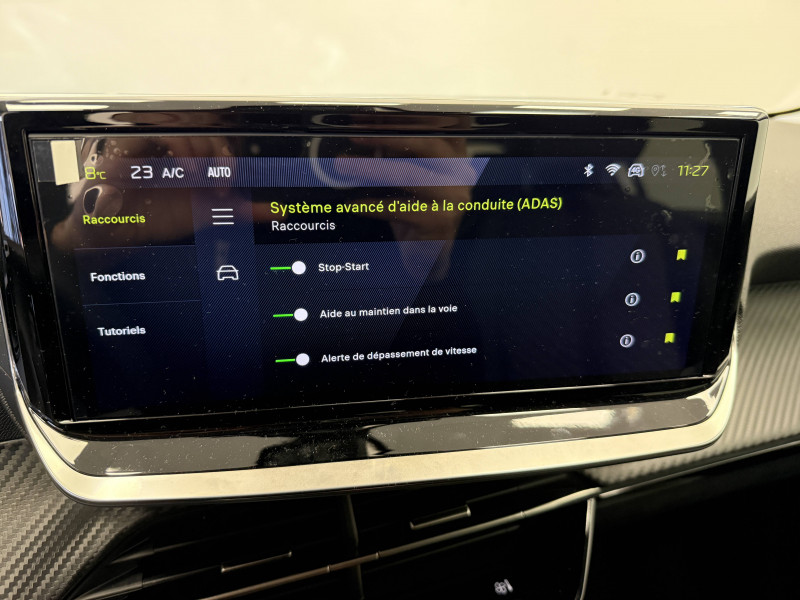 3 poignées de maintien rétractables (1passager à l'AV et 2 à l'AR) / 6 Airbags (Frontaux auto-adaptatifs, latéraux AV et rideaux AV/AR) / 6 HPs (2 tweeters et 2 woofers à l'AV et 2 HPs à l'AR) / Accoudoirs sur portes AV et AR en TEP avec surpiqûre Quartz / Aide graphique et sonore au stationnement AV et AR / Air conditionné automatique mono-zone / Antenne requin / Becquet rapporté Noir Brillant / Boîte de vitesse automatique, séquentielle (6 rapports) / Calandre haute de gamme noir grainée avec marquage couleur caisse / Ceinture de sécurité AR centrale 3 points, avec détection de non bouclage / Ceintures de sécurité AR latérales avec enrouleurs pyrotechniques, limiteurs d'effort et détection de non bouclage / Ceintures de sécurité AV conducteur et passager à enrouleurs pyrotechniques avec limiteurs d'effort et détection de non bouclage / Commande d'ouverture des portes couleur caisse / Console haute avec accoudoir & frein de stationnement électrique 1 prise USB type C (Charge) et 1 prise USB type A (Charge) pour passagers AR, Sélecteur de mode de conduite Normal/Eco/Sport / Détection de sous-gonflage indirecte / Eclairage coffre à lampe / Eclairage intérieur Plafonnier AV A-DOME 3 ampoules (1 lampe, 2 liseuses AV) / Enjoliveur bas de calandre noir grainé / Enjoliveur DRL Noir grainé / Enjoliveur entre feux AR noir brillant / Enjoliveur supérieur de calandre Noir grainé / ESP Déconnectable avec aide au démarrage en pente / Essuie-vitre AV à déclenchement automatique / Feux AR signature 3 griffes, stop à LEDs, recul et indicateur de direction à lampe / Habitacle et ciel de pavillon clair / Jantes alliage 16" diamantées NOMA bi--ton vernis brillant et Noir Orbital / Jupes AR inférieure noir grainé / Jupes AR supérieure Noir brillant / Lécheurs de vitres Noir Mat / Lève-vitres AR électriques et séquentiels avec antipincement / Lève-vitres AV électriques et séquentiels avec antipincement / Pack Safety Régulateur / Limiteur de vitesse, Freinage d'urgence automatique avec alerte risque de collision, Freinage automatique d'urgence avec détection élargie (3 caméras haut de pare-brise) et protection des usagers de la route vulnérables (piétons, cyclistes,), Alerte active de franchissement involontaire de ligne et bas côté, Reconnaissance étendue des panneaux de signalisation et préconisation de vitesse, Alerte attention conducteur / Pack Visibilité Allumage automatique des feux de croisement / Panneaux de porte AV avec médaillon décor Carbone injecté et baguette Noir brillante avec tampographie Quartz / Panneaux de portes AR injectés grain Karsten sans baguette / Peugeot Connect SOS & Assistance et Teleservices SOS & Assistance : Appel d'urgence automatique ou manuel par push SOS, et mise en relation directe avec la plateforme d'assistance PEUGEOT (24h/24 7j/7) , Teleservices : Détection du besoin d'une intervention technique ou d'une opération d'entretien périodique et transmission au réseau PEUGEOT pour prise de rendez vous / Peugeot i-Cockpit avec combiné tête haute 10" numérique / Peugeot i-Connect: Radio DAB avec écran tactile couleur personnalisable 10" HD, Bluetooth - Mirror Screen sans fil (Apple CarPlay/Android Auto) - Wifi - 1 prise USB type C ( Data+charge), 1 prise USB type C (Charge) sur console AV / Planche de bord Slush avec Décor Carbone slush et baguette Noir brillante avec jonc Chromé / Prise 12V et rangement pour smartphone en façade centrale / Programme de Stabilité Electronique (ESC) avec ASR, ABS, REF, AFU, CDS et TSM / Projecteurs Peugeot LED Technology avec feux diurnes à LED 3 griffes / Rétroviseur intérieur électrochrome / Rétroviseurs extérieurs dégivrants avec réglage et rabattement électriques / Sellerie tissu CASUAL LOMSA embossé, accompagnement TEP Isabella, trimatière LOMSA et surpiqûres Quartz / Télécommande 3 boutons + clé standard / Vitres latérales AR et lunette AR chauffante temporisée surteintées / Volant compact croute de cuir avec commandes multimédia intégrées