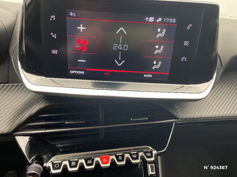 Planche de bord slush et panneaux de portes AV avec décors aspect carbone / Bandeau entre feux AR noir brillant / Jupes de pare-chocs AR inférieure Noir grainée et supérieure Noir brillant / Volant compact croute de cuir, Lion chromé et commandes multimédia sur volant / 2 prises USB (Recharge type A) sur console basse pour passagers AR / Ceinture de sécurité AR centrale 3 points, avec détection de non bouclage / Télécommande 3 boutons + clé standard / Calandre avec grille supérieure avec marquage Chrome Brillant et enjoliveur supérieur noir grainé / Ceintures de sécurité AR latérales avec enrouleurs pyrotechniques, limiteurs d'effort et détection de non bouclage / Jantes alliage 16" SOHO diamantées peintes Gris Storm / Aide graphique et sonore au stationnement AR / Ceintures de sécurité AV conducteur et passager à enrouleurs pyrotechniques avec limiteurs d'effort et détection de non bouclage / Eclairage intérieur à ampoules : plafonnier AV à 3 spots (1 lampe et 2 liseuses) / Programme de Stabilité Electronique (ESC) avec ASR, ABS, REF, AFU, CDS et TSM / Eclairage coffre à lampe / Enjoliveurs de pied milieu Noir brillant avec sérigraphie / Habitacle et ciel de pavillon gris clair / 6 haut-parleurs (2 tweeters et 2 woofers à l'AV et 2 larges bandes à l'AR) / Sans seuil de portes lettrage "PEUGEOT" / Fonction "Mirror Screen" (Apple CarPlay / Android Auto ) / Essuie-vitre AV à déclenchement automatique / Peugeot i-Cockpit avec combiné tête haute analogique et matrice couleur 3"5 / Lève-vitres AR électriques et séquentiels avec antipincement / Frein de stationnement électrique avec aide au démarrage en pente et serrage automatique / Vitres latérales AR et lunette AR chauffante temporisée surteintées / Fonction DAB (Radio Numérique Terrestre) / Radio avec écran tactile 7" couleur capacitif, 2 prises USB (DATA type A, recharge type C) sur console AV / Jantes alliage 16'' SOHO diamantées peintes Gris Storm / Pare-brise teinté acoustique / 3 poignées de maintien (1 à l'AV et 2 à l'AR) / Fixations suivant norme ISOFIX aux places latérales AR avec étiquettes de localisation, et Top Tether / 1 Poignée de maintien passager AV / Détection de sous-gonflage indirecte / Feux diurnes à LED sous projecteurs / Projecteurs 'Peugeot LED Technology', indicateurs de direction à ampoules / Seuil de portes lettrage "PEUGEOT" / Pack Safety / Console haute avec accoudoir intégré / Rétroviseur intérieur photosensible / Lève-vitres AV électriques et séquentiels avec antipincement / Air conditionné automatique mono-zone / Kit de dépannage de pneumatique / Décor panneaux de portes Noir et Azure / Avertisseur de temps de conduite / Sellerie Tri-matières tissu COSY / TEP Mistral, surpiqûres Mentholées / Rétroviseurs extérieurs dégivrants avec réglage et rabattement électriques