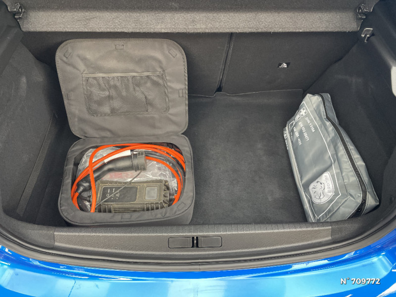 1 Poignée de maintien passager AV / Kit de dépannage de pneumatique / Lève-vitres AR électriques et séquentiels avec antipincement / Lève-vitres AV électriques et séquentiels avec antipincement / Pack Safety / Pack Safety Plus / Pare-brise teinté acoustique / Passages de roue Noir brillant / PEUGEOT Connect SOS & Assistance et Telemaintenance / PEUGEOT Connect SOS & Assistance et Telemaintenance / 2 prises USB (Recharge type A) sur console basse pour passagers AR / 3 poignées de maintien (1 à l'AV et 2 à l'AR) / 6 HP (2 tweeters et 2 woofers à l'AV et 2 larges bandes à l'AR) / Planche de bord slush et panneaux de portes AV avec décors aspect carbone / Programme de Stabilité Electronique (ESC) avec ASR, ABS, REF, AFU, CDS et TSM / Projecteurs 'Peugeot LED Technology' / Projecteurs Peugeot LED Technology / Projecteurs "Peugeot LED Technology" avec feux diurnes à LED / Projecteurs 'Peugeot LED Technology', indicateurs de direction à ampoules / Radio avec écran tactile 7" couleur capacitif, 2 prises USB (DATA type A, recharge type C) sur console AV / Rétroviseur intérieur photosensible / Rétroviseurs extérieurs dégivrants avec réglage et rabattement électriques / Sans seuil de portes lettrage "PEUGEOT" / Sellerie Tri matière Tissu/TEP COSY, surpiqûres Vert Mint / Sellerie Tri-matières tissu COSY / TEP Mistral, surpiqûres Mentholées / Avertisseur de temps de conduite / Bandeau entre feux AR Noir brillant / Câble électrique mode 2, prises de charge T2/EF type Green'up / Câble électrique mode 3, prises de charge T2/T2 / Calandre haut de gamme avec grille supérieure avec marquage couleur caisse et enjoliveur supérieur Noir Brillant / Ceinture de sécurité AR centrale 3 points, avec détection de non bouclage / Aide graphique et sonore au stationnement AR / Ceintures de sécurité AR latérales avec enrouleurs pyrotechniques, limiteurs d'effort et détection de non bouclage / Peugeot i-Cockpit avec combiné tête haute analogique et matrice couleur 3,5" / Peugeot i-Cockpit 3D avec combiné tête haute numérique 3D / Ceintures de sécurité AV conducteur et passager à enrouleurs pyrotechniques avec limiteurs d'effort et détection de non bouclage / Chargeur embarqué 7,4kW monophasé / Console haute avec accoudoir intégré / Coques de rétroviseurs couleur carrosserie / Décor panneaux de portes Noir et Azure / Démarrage mains libres avec 2 télécommandes 3 boutons / Démarrage mains libres avec 2 télécommandes 3 boutons / Démarrage mains libres avec 2 télécommandes 3 boutons mains libres / Détection de sous-gonflage indirecte / Eclairage coffre à lampe / Eclairage intérieur à ampoules : plafonnier AV à 3 spots (1 lampe et 2 liseuses) / Enjoliveurs de pied milieu Noir brillant avec sérigraphie / Essuie-vitre AV à déclenchement automatique / Feux diurnes à LED sous projecteurs / Filets aumônières au dos des sièges AV / Fixations suivant norme ISOFIX aux places latérales AR avec étiquettes de localisation, et Top Tether / Fonction DAB (Radio Numérique Terrestre) / Fonction Mirror Screen / Fonction "Mirror Screen" (Apple CarPlay / Android Auto ) / Frein de stationnement électrique avec aide au démarrage en pente et serrage automatique / Habitacle et ciel de pavillon gris clair / Jupes de pare-chocs AR inférieure et supérieure Noir brillant / Seuil de portes lettrage "PEUGEOT" / Seuils de portes "Peugeot" / Système stop & go couplé avec l'assistance au positionnement sur la voie / Teinte métallisée Jaune Faro / Visio Park 1: Caméra de recul avec restitution sur l'écran tactile d'une vue AR et d'une vue de dessus de l'environnement AR du véhicule + Aide graphique et sonore au stationnement AR / Vitres latérales AR et lunette AR chauffante temporisée surteintées / Vitres latérales AR et lunette AR surteintées / Volant compact croute de cuir, Lion chromé et commandes multimédia sur volant / Air conditionné automatique mono-zone