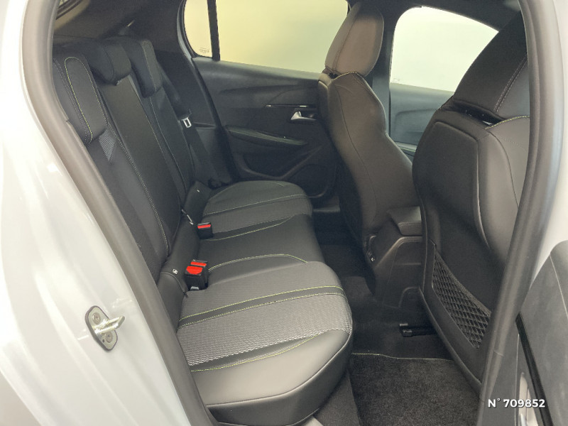 ESP Déconnectable avec aide au démarrage en pente / 4 poignées de maintien rétractables (2 à l'AV et 2 à l'AR) / Feux AR signature 3 griffes, stop,recul et indicateur de direction à LEDs / Antenne requin / Calandre haute de gamme noir grainée avec marquage couleur caisse / Prise 12V et rangement pour smartphone en faà§ade centrale / Boîte de vitesse automatique, séquentielle (6 rapports) / Pack Safety Régulateur / Limiteur de vitesse, Freinage d'urgence automatique avec alerte risque de collision, Freinage automatique d'urgence avec détection élargie (3 caméras haut de pare-brise) et protection des usagers de la route vulnérables (piétons, cyclistes,), Alerte active de franchissement involontaire de ligne et bas côté, Reconnaissance étendue des panneaux de signalisation et préconisation de vitesse, Alerte attention conducteur / Planche de bord Slush avec décor carbone slush et double surpiqûres Adamite/Tramontane et baguette Noir brillante avec jonc chromé et jonc lumineux / Ceintures de sécurité AV conducteur et passager à enrouleurs pyrotechniques avec limiteurs d'effort et détection de non bouclage / Ceinture de sécurité AR centrale 3 points, avec détection de non bouclage / Ceintures de sécurité AR latérales avec enrouleurs pyrotechniques, limiteurs d'effort et détection de non bouclage / Intervalle de maintenance 25 000 km ou 1 an / Peugeot i-Connect: Radio DAB avec écran tactile couleur personnalisable 10" HD, Bluetooth - Mirror Screen sans fil (Apple CarPlay/Android Auto) - Wifi - 1 prise USB type C ( Data+charge), 1 prise USB type C (Charge) sur console AV - 1 prise USB type C (Charge) et 1 prise USB type A (Charge) pour passagers AR / Eclairage intérieur Eclairager AV I-DOME à LED (1 plafonnier et 2 liseuses), 2 liseuses à LED AR, Miroir de courtoisie dans pare-soleil éclairéà LED, Eclairage à LED partie basse rangement et caves à pieds / Enjoliveurs d'ailes Noir Brillant / Accoudoirs sur portes AV et AR en TEPavec surpiqûre Adamite / Panneaux de porte AR avec grain Karsten avec baguette Noir brillant / Panneaux de porte AV avec médaillon TPE surmoulé Carbone, baguette Noir brillante avec jonc lumineux (8 couleurs) et crosse de tirage TEP avec surpiqûres Adamite / Enjoliveur DRL Noir grainé / Enjoliveur bas de calandre noir grainé / Enjoliveur supérieur de calandre Noir grainé / Commande d'ouverture des portes couleur caisse / Enjoliveur entre feux AR noir brillant / Becquet rapporté Noir Brillant / 6 Airbags (Frontaux auto-adaptatifs, latéraux AV et rideaux AV/AR) / Pack Visibilité Allumage automatique des feux de croisement / Siège passager AV à réglage manuel en hauteur / Visiopark 1 Caméra de recul HD, aide au stationnement AV et AR graphique et sonore / Seuils de portes aluminium avec lettrage PEUGEOT / Peugeot Connect SOS & Assistance et Teleservices SOS & Assistance : Appel d'urgence automatique ou manuel par push SOS, et mise en relation directe avec la plateforme d'assistance PEUGEOT (24h/24 7j/7) , Teleservices : Détection du besoin d'une intervention technique ou d'une opération d'entretien périodique et transmission au réseau PEUGEOT pour prise de rendez vous / Sellerie tissu BELOMKA, accompagnement TEP Isabella, trimatière Uni Capy et surpiqûres Vert Adamite / Console haute avec accoudoir & frein de stationnement électrique 1 prise USB type C (Charge) et 1 prise USB type A (Charge) pour passagers AR, Sélecteur de mode de conduite Normal/Eco/Sport / Jantes alliage 17" diamantées YANAKA bi--ton vernis brillant et Noir Orbital avec inserts Noir Orbital et vernis mat / Accès et démarrage mains libres Proximity / Jupes AR inférieure Noir brillant / Jupes AR supérieure Noir brillant / Volant compact cuir fleur avec commandes multimédia intégrées et badge GT / Projecteurs "Peugeot Full LED Technology" avec feux diurnes à LED 3 griffes / Eclairage polyambiant 8 couleurs (Liés aux modes de conduite) / Programme de Stabilité Electronique (ESC) avec ASR, ABS, REF, AFU, CDS et TSM / Lécheurs de vitres latérales Noir Brillant / 6 HPs (2 tweeters et 2 woofers à l'AV et 2 HPs à l'AR) / Eclairage coffre à lampe / Télécommande 3 boutons + clé standard / Peugeot i-Cockpit 3D avec combiné tête haute numérique 10'' / Vitres latérales AR et lunette AR chauffante temporisée surteintées / Air conditionné automatique mono-zone / Rétroviseurs extérieurs dégivrants avec réglage et rabattement électriques / Rétroviseur intérieur électrochrome / Lève-vitres AV électriques et séquentiels avec antipincement / Pédalier Sport aluminium / Détection de sous-gonflage indirecte / Surtapis AV/AR / Essuie-vitre AV à déclenchement automatique / Lève-vitres AR électriques et séquentiels avec antipincement / Habitacle et ciel de pavillon Noir / Commutation automatique des feux de route / feux de croisement