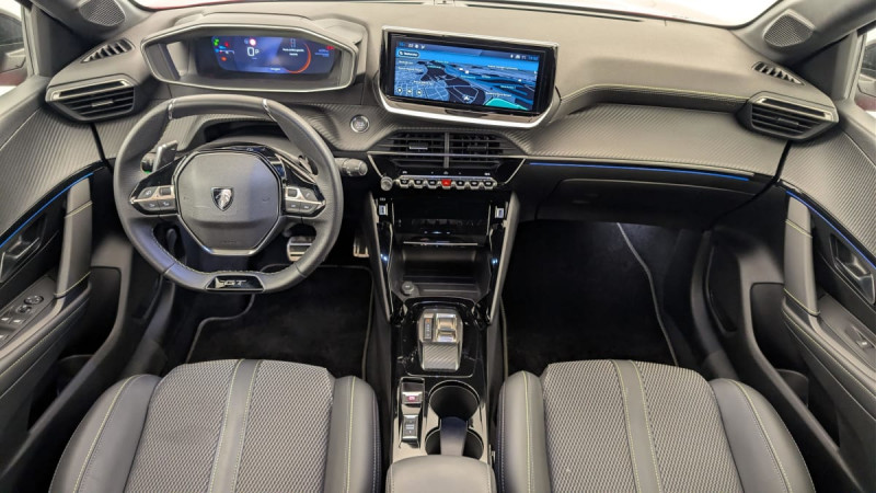 Pédalier Sport aluminium / Détection de sous-gonflage indirecte / Essuie-vitre AV à déclenchement automatique / Lève-vitres AR électriques et séquentiels avec antipincement / Habitacle et ciel de pavillon Noir / Commutation automatique des feux de route / feux de croisement / Accès et démarrage mains libres Proximity / Ceintures de sécurité AV conducteur et passager à enrouleurs pyrotechniques avec limiteurs d'effort et détection de non bouclage / Ceinture de sécurité AR centrale 3 points, avec détection de non bouclage / Ceintures de sécurité AR latérales avec enrouleurs pyrotechniques, limiteurs d'effort et détection de non bouclage / Programme de Stabilité Electronique (ESC) avec ASR, ABS, REF, AFU, CDS et TSM / Lécheurs de vitres latérales Noir Brillant / 6 HP (2 tweeters et 2 woofers à l'AV et 2 larges bandes à l'AR) / Eclairage coffre à lampe / Peugeot i-Cockpit 3D avec combiné tête haute numérique 10'' / Vitres latérales AR et lunette AR chauffante temporisée surteintées / Air conditionné automatique mono-zone / Rétroviseurs extérieurs dégivrants avec réglage et rabattement électriques, éclairage de seuil / Rétroviseur intérieur électrochrome sans cadre / Sellerie tissu BELOMKA, accompagnement TEP Isabella, trimatière Uni Capy et surpiqûres Vert Adamite / Console haute avec accoudoir & frein de stationnement électrique 1 prise USB type C (Charge) et 1 prise USB type A (Charge) pour passagers AR, Sélecteur de mode de conduite Normal/Eco/Sport / Peugeot i-Connect: Radio DAB avec écran tactile couleur personnalisable 10" HD, Bluetooth - Mirror Screen sans fil (Apple CarPlay/Android Auto) - Wifi - 1 prise USB type C ( Data+charge), 1 prise USB type C (Charge) sur console AV / Jantes alliage 17" diamantées YANAKA bi--ton vernis brillant et Noir Orbital avec inserts Noir Orbital et vernis mat / PEUGEOT Connect SOS / Jupes AR inférieure Noir brillant / Jupes AR supérieure Noir brillant / Volant compact cuir fleur avec commandes multimédia intégrées et badge GT / Projecteurs "Peugeot Full LED Technology" avec feux diurnes à LED 3 griffes / Eclairage polyambiant 8 couleurs (Liés aux modes de conduite) / ESP Déconnectable avec aide au démarrage en pente / 4 poignées de maintien rétractables (2 à l'AV et 2 à l'AR) / Eclairage intérieur Eclairager AV I-DOME à LED (1 plafonnier et 2 liseuses), 2 liseuses à LED AR, Miroir de courtoisie dans pare-soleil éclairéà LED, Eclairage à LED partie basse rangement et caves à pieds / Enjoliveurs d'ailes Noir Brillant / Accoudoirs sur portes AV et AR en TEP avec surpiqûre Adamite / Planche de bord Slush avec Décor Carbone TPE et double surpiqûres Adamite/Tramontane et baguette Noir brillante avec jonc chromé et jonc lumineux / Feux AR signature 3 griffes, stop, recul et indicateur de direction à LEDs / Antenne requin / Enjoliveur DRL Noir Brillant / Enjoliveur bas de calandre Noir Brillant / Enjoliveur supérieur de calandre Noir Brillant / Calandre haute de gamme noir grainée avec marquage couleur caisse / Prise 12V et rangement pour smartphone en façade centrale / Commande d'ouverture des portes couleur caisse / Enjoliveur entre feux AR noir brillant / Becquet rapporté Noir Brillant / Recharge smartphone sans fil (15W) / 6 Airbags (Frontaux auto-adaptatifs, latéraux AV et rideaux AV/AR) / Pack Safety Régulateur / Limiteur de vitesse : Alerte attention conducteur Régulateur / Limiteur de vitesse Reconnaissance étendue des panneaux de signalisation et préconisation de vitesse Alerte active de franchissement involontaire de ligne et bas côté Freinage d'urgence automatique avec alerte risque de collision / Pack Visibilité : Allumage automatique des feux de croisement / Lève-vitres AV électriques et séquentiels avec antipincement / / Véhicules équivalents: Clio - C3 - Yaris