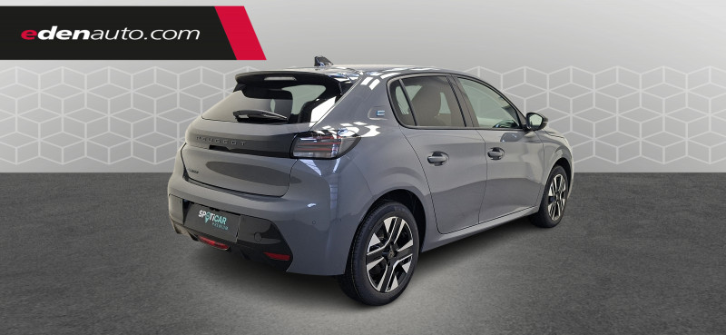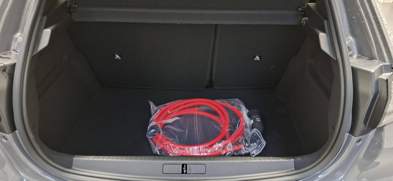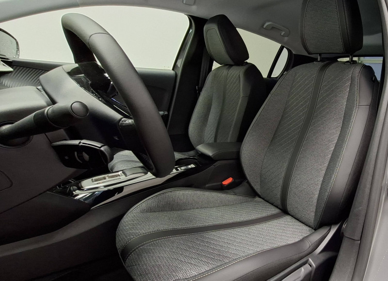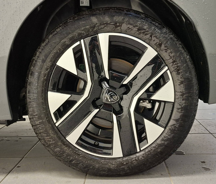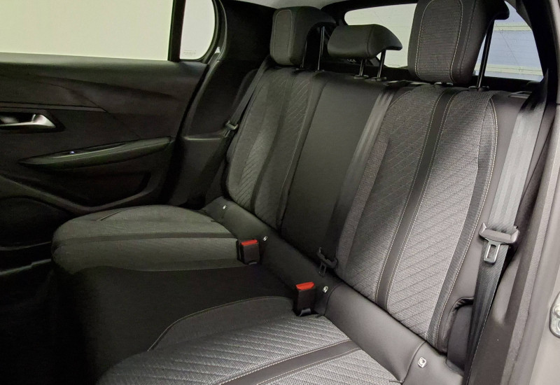 1 prise USB type C (Charge) et 1 prise USB type A (Charge) pour passagers AR / 1 prise USB type C ( Data+charge ) et 1 prise USB type C (Charge) sur console AV / 3 poignées de maintien rétractables (1passager à l'AV et 2 à l'AR) / 6 Airbags (Frontaux auto-adaptatifs, latéraux AV et rideaux AV/AR) / 6 HPs (2 tweeters et 2 woofers à l'AV et 2 HPs à l'AR) / Accoudoirs sur portes AV et AR en TEP avec surpiqûre Quartz / Aide graphique et sonore au stationnement AV et AR / Air conditionné automatique mono-zone / Antenne requin / Becquet rapporté Noir Brillant / Boîte automatique à variation continue / Câble électrique mode 3 triphasé 22 kW / Calandre haute de gamme noir grainée avec marquage couleur caisse / Ceinture de sécurité AR centrale 3 points, avec détection de non bouclage / Ceintures de sécurité AR latérales avec enrouleurs pyrotechniques, limiteurs d'effort et détection de non bouclage / Ceintures de sécurité AV conducteur et passager à enrouleurs pyrotechniques avec limiteurs d'effort et détection de non bouclage / Chargeur embarqué 7,4kW monophasé / Commande d'ouverture des portes couleur caisse / Console haute avec accoudoir & frein de stationnement électrique 1 prise USB type C (Charge) et 1 prise USB type A (Charge) pour passagers AR, Sélecteur de mode de conduite Normal/Eco/Sport / Détection de sous-gonflage indirecte / Eclairage coffre à lampe / Eclairage intérieur Plafonnier AV A-DOME 3 ampoules (1 lampe, 2 liseuses AV) / Enjoliveur bas de calandre noir grainé / Enjoliveur DRL Noir grainé / Enjoliveur entre feux AR noir brillant / Enjoliveur supérieur de calandre Noir grainé / ESP Déconnectable avec aide au démarrage en pente / Essuie-vitre AV à déclenchement automatique / Feux AR signature 3 griffes, stop à LEDs, recul et indicateur de direction à lampe / Habitacle et ciel de pavillon clair / Jantes alliage 16" diamantées NOMA bi--ton vernis brillant et Noir Orbital / Jupes AR inférieure Noir brillant / Jupes AR supérieure Noir brillant / Lécheurs de vitres Noir mat / Lève-vitres AR électriques et séquentiels avec antipincement / Lève-vitres AV électriques et séquentiels avec antipincement / Pack Safety Régulateur / Limiteur de vitesse, Freinage d'urgence automatique avec alerte risque de collision, Freinage automatique d'urgence avec détection élargie (3 caméras haut de pare-brise) et protection des usagers de la route vulnérables (piétons, cyclistes,), Alerte active de franchissement involontaire de ligne et bas côté, Reconnaissance étendue des panneaux de signalisation et préconisation de vitesse, Alerte attention conducteur / Pack Visibilité Allumage automatique des feux de croisement / Panneaux de porte AV avec médaillon décor Carbone injecté et baguette Noir brillante avec tampographie Quartz / Panneaux de portes AR injectés grain Karsten sans baguette / Peugeot Connect SOS & Assistance et Teleservices SOS & Assistance : Appel d'urgence automatique ou manuel par push SOS, et mise en relation directe avec la plateforme d'assistance PEUGEOT (24h/24 7j/7) , Teleservices : Détection du besoin d'une intervention technique ou d'une opération d'entretien périodique et transmission au réseau PEUGEOT pour prise de rendez vous / Peugeot i-Cockpit avec combiné tête haute 10" numérique / Peugeot i-Connect: Radio DAB avec écran tactile couleur personnalisable 10" HD, Bluetooth, Mirror Screen sans fil (Apple CarPlay/Android Auto), Wifi, 1 prise USB type C ( Data+charge) et 1 prise USB type C (Charge) sur console AV / Planche de bord Slush avec Décor Carbone slush et baguette Noir brillante avec jonc Chromé / Prise 12V et rangement pour smartphone en façade centrale / Programme de Stabilité Electronique (ESC) avec ASR, ABS, REF, AFU, CDS et TSM / Projecteurs Peugeot LED Technology avec feux diurnes à LED 3 griffes / Rétroviseur intérieur électrochrome / Rétroviseurs extérieurs dégivrants avec réglage et rabattement électriques / Sellerie tissu CASUAL LOMSA embossé, accompagnement TEP Isabella, trimatière LOMSA et surpiqûres Quartz / Télécommande 3 boutons + clé standard / Vitres latérales AR et lunette AR chauffante temporisée surteintées / Volant compact en croûte de cuir avec commandes multimédia intégrées