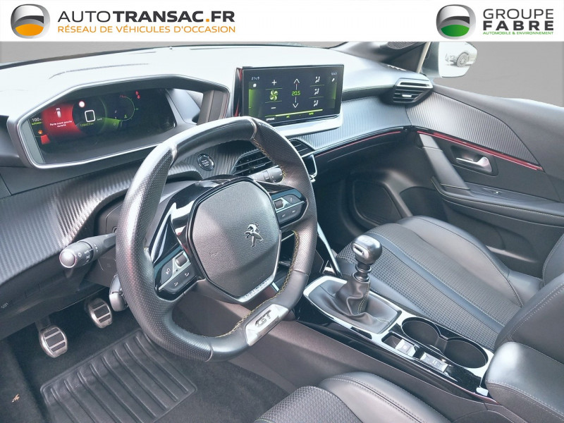 Aide au stationnement avant graphique et sonore / Air conditionné automatique mono-zone / Commutation automatique des feux de route / feux de croisement / Eclairage intérieur à LED : plafonniers tactiles AV (1 lampe et 2 liseuses) et AR (2 liseuses), pares-soleils, cave à pieds / Essuie-vitre AV à déclenchement automatique / Frein de stationnement électrique avec aide au démarrage en pente et serrage automatique / Jantes alliage 17" CAMDEN storm mat et roue de secours galette / Navigation 3D Connectée avec écran tactile 10'' HD couleur : 2 prises USB (Data et recharge) sur console AV, 2 prises AR sur console haut(recharge), Fonction DAB (Radio Numérique Terrestre) / Pack Safety / Pack Safety Plus / Projecteurs "Peugeot Full Led Technology" / Pédalier aluminium / Signature LED sur pare-choc AV / Signature lumineuse avant DRL à LED sous projecteurs / Visio Park 1 + aide graphique et sonore au stationnement AV / Volant compact cuir fleur avec laçage vert, Lion chromé et badge GT et commandes multimédia sur volant / "ATTENTION" - Equipements en cours de saisie / 2 prise USB sur console AR / 4 poignées de maintien (2 à l'AV et 2 à l'AR) / 6 HP (2 tweeters et 2 woofers à l'AV et 2 larges bandes à l'AR) / Bandeau entre feux AR Noir Brillant / Calandre spécifique GT Line chromée / Ceinture de sécurité AR centrale 3 points, avec détection de non bouclage / Ceintures de sécurité AR latérales avec enrouleurs pyrotechniques, limiteurs d'effort et détection de non bouclage / Ceintures de sécurité AV conducteur et passager à enrouleurs pyrotechniques avec limiteurs d'effort et détection de non bouclage / Console haute avec accoudoir central finition TEP et surpiqûres tramontane / Détection de sous-gonflage indirecte / Eclairage polyambient 8 couleurs / Fixations suivant norme ISOFIX aux places latérales AR avec étiquettes de localisation, et Top Tether / Fixations suivant norme ISOFIX sur siège passager AV avec étiquettes de localisation / Fonction "Mirror Screen" (Apple CarPlay / Android Auto / MirrorLink) / Fonction DAB (Radio Numérique Terrestre) / Garniture pavillion noir Mistral / Kit de dépannage de pneumatique / Lève-vitres AR électriques et séquentiels avec antipincement / Lève-vitres AV électriques et séquentiels avec antipincement / Passages de roue Noir brillant / PEUGEOT Connect SOS & Assistance / Peugeot i-Cockpit 3D avec combiné tête haute numérique 3D / Planche de bord slush et panneaux de portes AV avec décors aspect carbone et baguette Noir Brillant avec jonc chromé / Programme de Stabilité Electronique (ESC) avec ASR, ABS, REF, AFU, CDS et TSM / Radio avec écran tactile 10" HD,4 prises USB et une de recharge type C) / Radio avec écran tactile 7" couleur capacitif, Bluetooth, 1 prise USB type A (DATA) sur console AV / Rétroviseur intérieur photosensible et rétroviseurs extérieurs dégivrants avec réglage et rabattement électriques / Rétroviseur intérieur photosensible frameless / Rétroviseur intérieur électrochrome / Seuils de portes AV en Inox / Siège passager AV à réglage manuel en hauteur et lombaire pneumatique / Sièges dynamique avec réglage manuel en hauteur coté passager AV / Surtapis AV et AR GT Line / Télécommande 3 boutons + clé standard / Vitres latérales AR et lunette AR surteintées / Volet de rangement smartphone