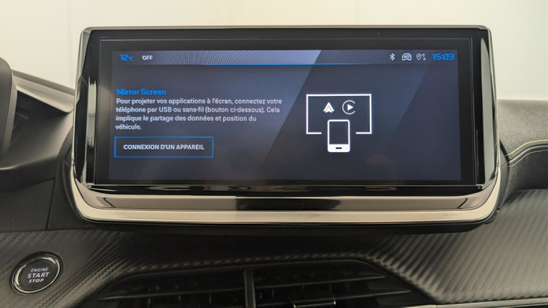 Pédalier Sport aluminium / Détection de sous-gonflage indirecte / Essuie-vitre AV à déclenchement automatique / Lève-vitres AR électriques et séquentiels avec antipincement / Habitacle et ciel de pavillon Noir / Commutation automatique des feux de route / feux de croisement / Accès et démarrage mains libres Proximity / Ceintures de sécurité AV conducteur et passager à enrouleurs pyrotechniques avec limiteurs d'effort et détection de non bouclage / Ceinture de sécurité AR centrale 3 points, avec détection de non bouclage / Ceintures de sécurité AR latérales avec enrouleurs pyrotechniques, limiteurs d'effort et détection de non bouclage / Programme de Stabilité Electronique (ESC) avec ASR, ABS, REF, AFU, CDS et TSM / Lécheurs de vitres latérales Noir Brillant / 6 HP (2 tweeters et 2 woofers à l'AV et 2 larges bandes à l'AR) / Eclairage coffre à lampe / Peugeot i-Cockpit 3D avec combiné tête haute numérique 10'' / Vitres latérales AR et lunette AR chauffante temporisée surteintées / Air conditionné automatique mono-zone / Rétroviseurs extérieurs dégivrants avec réglage et rabattement électriques, éclairage de seuil / Rétroviseur intérieur électrochrome sans cadre / Sellerie tissu BELOMKA, accompagnement TEP Isabella, trimatière Uni Capy et surpiqûres Vert Adamite / Console haute avec accoudoir & frein de stationnement électrique 1 prise USB type C (Charge) et 1 prise USB type A (Charge) pour passagers AR, Sélecteur de mode de conduite Normal/Eco/Sport / Peugeot i-Connect: Radio DAB avec écran tactile couleur personnalisable 10" HD, Bluetooth - Mirror Screen sans fil (Apple CarPlay/Android Auto) - Wifi - 1 prise USB type C ( Data+charge), 1 prise USB type C (Charge) sur console AV / Jantes alliage 17" diamantées YANAKA bi--ton vernis brillant et Noir Orbital avec inserts Noir Orbital et vernis mat / PEUGEOT Connect SOS / Jupes AR inférieure Noir brillant / Jupes AR supérieure Noir brillant / Volant compact cuir fleur avec commandes multimédia intégrées et badge GT / Projecteurs "Peugeot Full LED Technology" avec feux diurnes à LED 3 griffes / Eclairage polyambiant 8 couleurs (Liés aux modes de conduite) / ESP Déconnectable avec aide au démarrage en pente / 4 poignées de maintien rétractables (2 à l'AV et 2 à l'AR) / Eclairage intérieur Eclairager AV I-DOME à LED (1 plafonnier et 2 liseuses), 2 liseuses à LED AR, Miroir de courtoisie dans pare-soleil éclairéà LED, Eclairage à LED partie basse rangement et caves à pieds / Enjoliveurs d'ailes Noir Brillant / Accoudoirs sur portes AV et AR en TEP avec surpiqûre Adamite / Planche de bord Slush avec Décor Carbone TPE et double surpiqûres Adamite/Tramontane et baguette Noir brillante avec jonc chromé et jonc lumineux / Feux AR signature 3 griffes, stop, recul et indicateur de direction à LEDs / Antenne requin / Enjoliveur DRL Noir Brillant / Enjoliveur bas de calandre Noir Brillant / Enjoliveur supérieur de calandre Noir Brillant / Calandre haute de gamme noir grainée avec marquage couleur caisse / Prise 12V et rangement pour smartphone en façade centrale / Commande d'ouverture des portes couleur caisse / Enjoliveur entre feux AR noir brillant / Becquet rapporté Noir Brillant / Recharge smartphone sans fil (15W) / 6 Airbags (Frontaux auto-adaptatifs, latéraux AV et rideaux AV/AR) / Pack Safety Régulateur / Limiteur de vitesse : Alerte attention conducteur Régulateur / Limiteur de vitesse Reconnaissance étendue des panneaux de signalisation et préconisation de vitesse Alerte active de franchissement involontaire de ligne et bas côté Freinage d'urgence automatique avec alerte risque de collision / Pack Visibilité : Allumage automatique des feux de croisement / Lève-vitres AV électriques et séquentiels avec antipincement / / Véhicules équivalents: Clio - C3 - Yaris