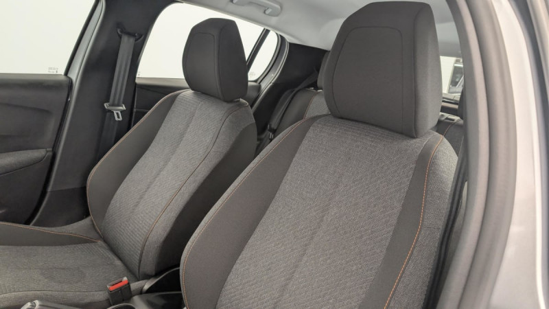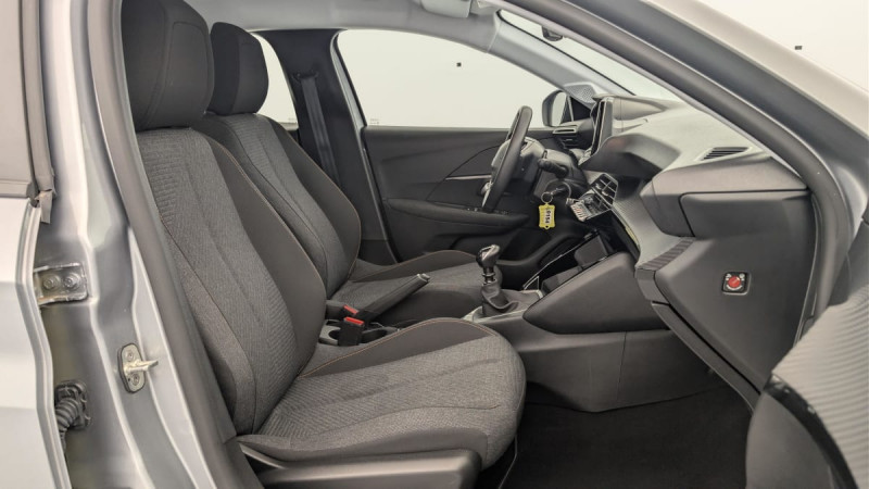 Détection de sous-gonflage indirecte / Lève-vitres AR électriques et séquentiels avec antipincement / Programme de Stabilité Electronique (ESC) avec ASR, ABS, REF, AFU, CDS et TSM / Peugeot i-Cockpit avec combiné tête haute analogique et matrice couleur 3,5" / Rétroviseur intérieur à réglage jour/nuit manuel / 6 HP (2 tweeters et 2 woofers à l'AV et 2 larges bandes à l'AR) / Vitres latérales AR et lunette AR chauffante temporisée teintées / Peugeot Connect SOS / Aide au stationnement AR, graphique et sonore / Volant compact en croûte de cuir avec commandes multimédia intégrées / Console basse avec frein de stationnement mécanique / Touch screen 10" & Bluetooth Radio & Telephone: Radio DAB avec écran tactile couleur 10" SD, Bluetooth, Mirror Screen sans fil (Apple CarPlay / Android Auto), Ecran avec Toggles Switches, 1 prise USB type C ( Data+charge ) sur console AV / Projecteurs Peugeot LED Technology avec feux diurnes à LED 3 griffes / Jantes tôle 16" avec enjoliveurs MONTI Gris Eclat avec vernis brillant & noir grainé / ESP Déconnectable avec aide au démarrage en pente / Feux AR signature 3 griffes, stop à LEDs, recul et indicateur de direction à lampe / 6 Airbags (Frontaux auto-adaptatifs, latéraux AV et rideaux AV/AR) / Pack Safety : Alerte attention conducteur Régulateur / Limiteur de vitesse Reconnaissance étendue des panneaux de signalisation et préconisation de vitesse Alerte active de franchissement involontaire de ligne et bas côté Freinage d'urgence automatique avec alerte risque de collision / Pack Visibilité : Allumage automatique des feux de croisement / Air conditionné simple monozone / Sellerie tissu RENZO, accompagnement Rimini, surpiqûres Orange Sunrise / Accoudoirs de porte AV et AR / Lève-vitres AV électriques et séquentiels avec antipincement / / Véhicules équivalents: Clio - C3 - Yaris