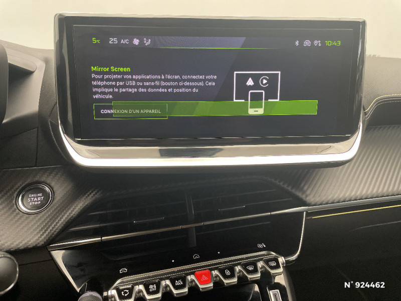 Aide graphique et sonore au stationnement AR / Programme de Stabilité Electronique (ESC) avec ASR, ABS, REF, AFU, CDS et TSM / Ceinture de sécurité AR centrale 3 points, avec détection de non bouclage / Enjoliveur bas de calandre Noir Brillant / Enjoliveur supérieur de calandre Noir Brillant / Calandre haut de gamme noir grainée avec marquage couleur caisse / Enjoliveur DRL Noir Brillant / Rétroviseurs extérieurs dégivrants avec réglage et rabattement électriques,éclairage de seuil / Console haute avec accoudoir intégré 1 prise USB type C (Charge) et 1 prise USB type A (Charge) pour passagers AR, Sélecteur de mode de conduite (Normal/Eco avec BVM, Normal/Eco/Sport avec DCT6, EAT8 et Electrique) / Antenne requin / Détection de sous-gonflage indirecte / ESP Déconnectable avec aide au démarrage en pente / Eclairage polyambiant 8 couleurs (Liés aux modes de conduite) / Rétroviseur intérieur à réglage jour/nuit manuel / Becquet rapporté Noir Brillant / Visiopark 1 Aide au stationnement avant et arrière, graphique et sonore, Caméra de recul avec restitution sur l'écran tactile d'une vue AR, et d'une vue de dessus de l'environnement arrière du véhicule / Recharge smartphone sans fil / Enjoliveur entre feux AR noir brillant / Projecteurs "Peugeot Full LED Technology" avec feux diurnes à LED 3 griffes / Accès et démarrage mains libres Proximity / Volant compact cuir fleur avec commandes multimédia intégrées et badge GT / Jantes alliage 17'' diamantées YANAKA bi--ton vernis brillant et Noir Orbital avec inserts Noir Orbital et vernis mat / Ceintures de sécurité AV conducteur et passager à enrouleurs pyrotechniques avec limiteurs d'effort et détection de non bouclage / Vitres latérales AR et lunette AR chauffante temporisée surteintées / Commutation automatique des feux de route / feux de croisement / Lève-vitres AV électriques et séquentiels avec antipincement / Air conditionné automatique mono-zone / Recharge smartphone sans fil (15W) / Pack Safety Régulateur / Limiteur de vitesse Freinage d'urgence automatique avec alerte risque de collision Alerte active de franchissement involontaire de ligne et bas côté Reconnaissance étendue des panneaux de signalisation et préconisation de vitesse Alerte attention conducteur / Pack Visibilité Allumage automatique des feux de croisement / Essuie-vitre AV à déclenchement automatique / 1 prise USB type C (Charge) et 1 prise USB type A (Charge) pour passagers AR / 6 Airbags - Frontaux auto-adaptatifs, latéraux AV et rideaux AV et AR / Peugeot i-Cockpit 3D avec combiné tête haute numérique 3D 10'' / Pédalier Sport aluminium / Habitacle et ciel de pavillon noir / Rétroviseur intérieur électrochrome sans cadre / Surtapis AV et AR / Lève-vitres AR électriques et séquentiels avec antipincement / Frein de stationnement électrique / Pack Safety / Pédalier aluminium / Pack Visibilité / Seuils de portes AV aluminium siglés PEUGEOT / Console haute avec accoudoir & frein de stationnement électrique 1 prise USB type C (Charge) et 1 prise USB type A (Charge) pour passagers AR, Sélecteur de mode de conduite Normal/Eco / Panneaux de porte AV avec médaillon TPE surmoulé Carbone, baguette Noir brillante avec jonc lumineux (8 couleurs) et crosse de tirage TEP avec surpiqûres Adamite / Planche de bord Slush avec Décor Carbone TPE et double surpiqûres Adamite/Tramontane et baguette Noir brillante avec jonc chromé et jonc lumineux / Feux AR signature 3 griffes, stop,recul et indicateur de direction à LEDs / Jupes AR inférieure Noir brillant / Jupes AR supérieure Noir brillant / Enjoliveurs d'ailes Noir Brillant / Accoudoirs sur portes AV et AR en TEPavec surpiqûre Adamite / Panneaux de porte AR avec grain Karsten avec baguette Noir brillant / Eclairage coffre à lampe / Peugeot i-Connect Radio DAB avec écran tactile couleur personnalisable 10" HD,Bluetooth, Mirror Screen sans fil (Apple CarPlay/Android Auto), Wifi, 1 prise USB type C ( Data+charge ) et 1 prise USB type C (Charge) sur console AV / Siège passager AV à réglage manuel en hauteur / Ceintures de sécurité AR latérales avec enrouleurs pyrotechniques, limiteurs d'effort et détection de non bouclage / 6 haut-parleurs (2 tweeters et 2 woofers à l'AV et 2 larges bandes à l'AR) / Commande d'ouverture des portes couleur caisse / Prise 12V et rangement pour smartphone en faà§ade centrale / Télécommande 3 boutons + clé standard / Lécheurs de vitres latérales Noir Brillant / Sellerie tissu BELOMKA, accompagnement TEP Isabella, trimatière Uni Capy et surpiqûres Vert Adamit / Airbags frontaux auto-adaptatifs, latéraux AV et rideaux AV et AR / Eclairage intérieur Eclairager AV I-DOME à LED (1 plafonnier et 2 liseuses), 2 liseuses à LED AR, Miroir de courtoisie dans pare--soleil éclairéà LED, Eclairage à LED partie basse rangement et caves à pieds / 4 poignées de maintien rétractables (2 à l'AV et 2 à l'AR) / PEUGEOT Connect SOS & Assistance et Teleservices SOS & Assistance : Appel d'urgence automatique ou manuel par push SOS, et mise en relation directe avec la plateforme d'assistance PEUGEOT (24h/24 7j/7) Teleservices: Détection du besoin d'une intervention technique ou d'une opération d'entretien périodique et transmission au réseau PEUGEOT pour prise de rendez vous