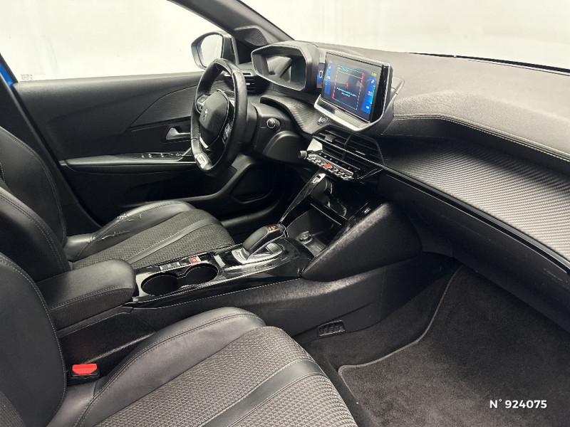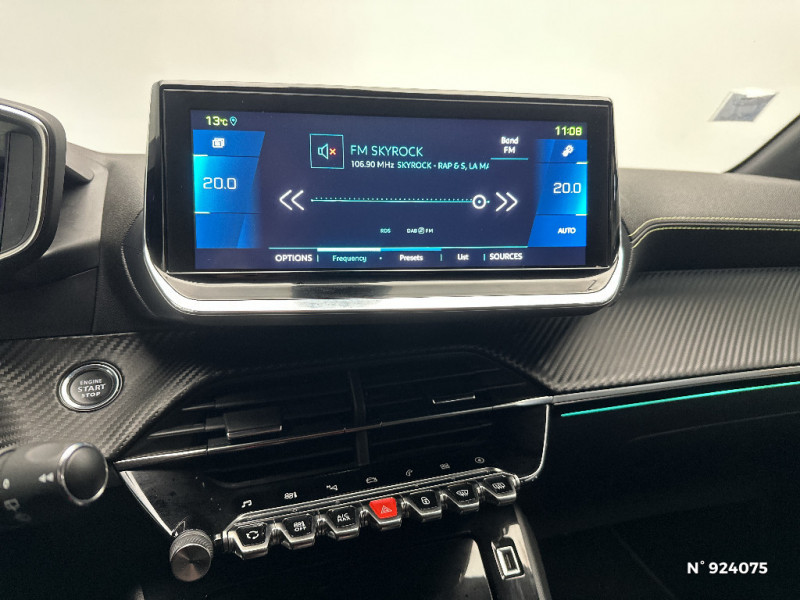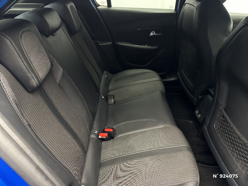 Volet de rangement smartphone / Fixations suivant norme ISOFIX sur siège passager AV avec étiquettes de localisation / Chargeur embarqué 7,4 kW monophasé / Détection de sous-gonflage indirecte / Seuils de portes AV en Inox / Pédalier aluminium / Pack Safety / Lève-vitres AR électriques et séquentiels avec antipincement / Frein de stationnement électrique avec aide au démarrage en pente et serrage automatique / Console haute avec accoudoir central finition TEP et surpiqûres tramontane / Sellerie Tri matière Tissu CAPY/TEP surpiqûres Vert Adamite / Rétroviseur intérieur photosensible et rétroviseurs extérieurs dégivrants avec réglage et rabattement électriques / Kit de dépannage de pneumatique / Aide au stationnement avant graphique et sonore / Air conditionné automatique mono-zone / Fonction DAB (Radio Numérique Terrestre) / Essuie-vitre AV à déclenchement automatique / Reconnaissance étendue des panneaux / Vitres latérales AR et lunette AR surteintées / Commutation automatique des feux de route / feux de croisement / Lève-vitres AV électriques et séquentiels avec antipincement / Projecteurs "Peugeot Full Led Technology" / Sièges dynamique avec réglage manuel en hauteur coté passager AV / Navigation 3D Connectée avec écran tactile 10'' HD couleur : 2 prises USB (Data et recharge) sur console AV, 2 prises AR sur console haut(recharge), Fonction DAB (Radio Numérique Terrestre) / Planche de bord slush et panneaux de portes AV avec décors aspect carbone et baguette Noir Brillant avec jonc chromé / PEUGEOT Connect SOS & Assistance / Eclairage intérieur à LED : plafonniers tactiles AV (1 lampe et 2 liseuses) et AR (2 liseuses), pares-soleils, cave à pieds / Jantes alliage 17'' SHAW avec inserts spécifique EV / Pack Safety Plus / Radio avec écran tactile 7" couleur capacitif, Bluetooth, 1 prise USB type A (DATA) sur console AV / Visio Park 1 + aide graphique et sonore au stationnement AV / Ceinture de sécurité AR centrale 3 points, avec détection de non bouclage / Siège passager AV à réglage manuel en hauteur / Jupes de pare-chocs AR inférieure et supérieure Noir brillant / Ceintures de sécurité AV conducteur et passager à enrouleurs pyrotechniques avec limiteurs d'effort et détection de non bouclage / 2 prise USB sur console AR / Signature lumineuse avant DRL à LED sous projecteurs / Calandre spécifique GT Line chromée / Radio avec écran tactile 10" HD,4 prises USB et une de recharge type C) / Surtapis AV et AR GT Line / Eclairage polyambient 8 couleurs / Fonction "Mirror Screen" (Apple CarPlay / Android Auto / MirrorLink) / Rétroviseur intérieur électrochrome / 6 haut-parleurs (2 tweeters et 2 woofers à l'AV et 2 larges bandes à l'AR) / Peugeot i-Cockpit 3D avec combiné tête haute numérique 3D / Programme de Stabilité Electronique (ESC) avec ASR, ABS, REF, AFU, CDS et TSM / Rétroviseur intérieur photosensible frameless / Garniture pavillion noir Mistral / Bandeau entre feux AR noir brillant / Ceintures de sécurité AR latérales avec enrouleurs pyrotechniques, limiteurs d'effort et détection de non bouclage / Télécommande 3 boutons + clé standard / Passages de roue Noir brillant / Fixations suivant norme ISOFIX aux places latérales AR avec étiquettes de localisation, et Top Tether / Volant compact cuir fleur avec laà§age vert, Lion chromé et badge GT et commandes multimédia sur volant / 4 poignées de maintien (2 à l'AV et 2 à l'AR) / Signature LED sur pare-choc AV