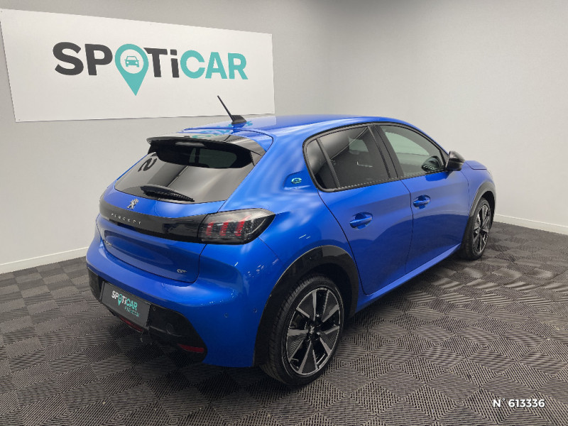 Ceintures de sécurité AV conducteur et passager à enrouleurs pyrotechniques avec limiteurs d'effort et détection de non bouclage / PEUGEOT Connect SOS & Assistance et Telemaintenance / Aide graphique et sonore au stationnement AR / Visio Park 1 / 4 poignées de maintien (2 à l'AV et 2 à l'AR) / Volet de rangement smartphone / Eclairage coffre à lampe / Jupes de pare-chocs AR inférieure et supérieure Noir brillant / 2 prise USB sur console AV / Bandeau entre feux AR noir brillant / Rétroviseurs extérieurs dégivrants avec réglage et rabattement électriques,éclairage de seuil / 6 haut-parleurs (2 tweeters et 2 woofers à l'AV et 2 larges bandes à l'AR) / Ceintures de sécurité AR latérales avec enrouleurs pyrotechniques, limiteurs d'effort et détection de non bouclage / Filets aumônières au dos des sièges AV / Chargeur embarqué 7,4 kW monophasé / Jantes alliage 17'' SHAW avec inserts spécifique EV / Ceinture de sécurité AR centrale 3 points, avec détection de non bouclage / Fonction "Mirror Screen" (Apple CarPlay / Android Auto / MirrorLink) / Siège passager AV à réglage manuel en hauteur / Fixations suivant norme ISOFIX aux places latérales AR avec étiquettes de localisation, et Top Tether / Fixations suivant norme ISOFIX sur siège passager AV avec étiquettes de localisation / Vitres latérales AR et lunette AR surteintées / Rétroviseur intérieur photosensible frameless / Calandre haut de gamme avec grille supérieure avec marquage couleur caisse et enjoliveur supérieur Noir Brillant / Programme de Stabilité Electronique (ESC) avec ASR, ABS, REF, AFU, CDS et TSM / Lécheurs de vitres latérales Noir Brillant / Passages de roue Noir brillant / Planche de bord slush surpiquée et panneaux de portes AV avec décors aspect carbone et éclairage polyambiant 8 couleurs / Projecteurs "Peugeot Full LED Technology" avec feux diurnes et clignotants AV à LED / Pack Safety Plus / Kit de dépannage de pneumatique / Aide graphique et sonore au stationnement AV / Surtapis AV et AR noirs avec surpiqûres Vert Adamite / Frein de stationnement électrique avec aide au démarrage en pente et serrage automatique / Navigation 3D connectée avec reconnaissance vocale, écran tactile capacitif 10" HD / Vitres latérales AR et lunette AR chauffante temporisée teintées / Pack Safety / 2 prises USB (Recharge type A) sur console basse pour passagers AR / Console haute avec accoudoir central finition TEP et surpiqûres tramontane / Visio Park 1 Caméra de recul avec restitution sur l'écran tactile d'une vue AR et d'une vue de dessus de l'environnement AR du véhicule + Aide graphique et sonore au stationnement AR / Lève-vitres AR électriques et séquentiels avec antipincement / Avertisseur de temps de conduite / Eclairage intérieur à LED : plafonniers tactiles AV (1 lampe et 2 liseuses) et AR (2 liseuses), pares-soleils, cave à pieds / Seuils de portes AV en Inox / Reconnaissance étendue des panneaux / Rétroviseur intérieur photosensible frameless - sans cadre / Détection de sous-gonflage indirecte / Projecteurs "Peugeot Full Led Technology" / Commutation automatique des feux de route / feux de croisement / Volant compact cuir fleur avec laà§age vert, Lion chromé et badge GT et commandes multimédia sur volant / Teinte métallisée Jaune Faro / Fonction Mirror Screen / Lève-vitres AV électriques et séquentiels avec antipincement / Pédalier aluminium / PEUGEOT Connect SOS & Assistance / Pare-brise teinté acoustique / Navigation 3D Connectée avec écran tactile 10'' HD couleur : 2 prises USB (Data et recharge) sur console AV, 2 prises AR sur console haut(recharge), Fonction DAB (Radio Numérique Terrestre) / Habitacle et ciel de pavillon noir / Peugeot i-Cockpit 3D avec combiné tête haute numérique 3D / Signature lumineuse avant DRL à LED sous projecteurs / Câble électrique mode 2, prises de charge T2/EF type Green'up / Air conditionné automatique mono-zone / Essuie-vitre AV à déclenchement automatique / Rétroviseurs extérieurs dégivrants avec réglage et rabattement électriques / Fonction DAB (Radio Numérique Terrestre) / Sellerie Tri matière Tissu CAPY/TEP surpiqûres Vert Adamite / Démarrage mains libres avec 2 télécommandes 3 boutons mains libres / Signature LED sur pare-choc AV / Console haute avec accoudoir intégré / Feux diurnes à LED sous projecteurs