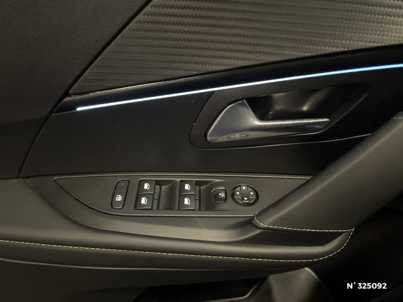 Sellerie Tri matière Tissu CAPY/TEP surpiqûres Vert Adamite / Seuils de portes AV en Inox / Seuils de portes "Peugeot" / Siège passager AV à réglage manuel en hauteur et lombaire pneumatique / Signature LED sur pare-choc AV / Signature lumineuse avant DRL à LED sous projecteurs / Surtapis AV et AR noirs avec surpiqûres Vert Adamite / Système stop & go couplé avec l'assistance au positionnement sur la voie / Teinte métallisée Jaune Faro / Visio Park 1 / Visio Park 1: Caméra de recul avec restitution sur l'écran tactile d'une vue AR et d'une vue de dessus de l'environnement AR du véhicule + Aide graphique et sonore au stationnement AR / Vitres latérales AR et lunette AR chauffante temporisée surteintées / Vitres latérales AR et lunette AR chauffante temporisée teintées / Vitres latérales AR et lunette AR surteintées / Volant compact cuir fleur avec laà§age vert, Lion chromé et badge GT et commandes multimédia sur volant / Volet de rangement smartphone / 1 Poignée de maintien passager AV / 2 prise USB sur console AV / 2 prises USB (Recharge type A) sur console basse pour passagers AR / 4 poignées de maintien (2 à l'AV et 2 à l'AR) / Jupes de pare-chocs AR inférieure et supérieure Noir brillant / Kit de dépannage de pneumatique / Lécheurs de vitres latérales Noir Brillant / Lève-vitres AR électriques et séquentiels avec antipincement / Lève-vitres AV électriques et séquentiels avec antipincement / Navigation 3D Connectée avec écran tactile 10'' HD couleur : 2 prises USB (Data et recharge) sur console AV, 2 prises AR sur console haut(recharge), Fonction DAB (Radio Numérique Terrestre) / Navigation 3D Connectée avec écran tactile 10'' HD couleur : 2 prises USB (Data et recharge) sur console AV, 2 prises AR sur console haut(recharge), Fonction DAB (Radio Numérique Terrestre) / Navigation 3D connectée avec reconnaissance vocale, écran tactile capacitif 10" HD / Navigation 3D connectée avec reconnaissance vocale, écran tactile capacitif 10" HD / Pack Safety / Pack Safety Plus / Pack Safety Plus / Pare-brise teinté acoustique / Passages de roue Noir brillant / Pédalier aluminium / PEUGEOT Connect SOS & Assistance / PEUGEOT Connect SOS & Assistance et Telemaintenance / Fonction DAB (Radio Numérique Terrestre) / Enjoliveurs de pied milieu brillant avec sérigraphies AV / Essuie-vitre AV à déclenchement automatique / Feux diurnes à LED sous projecteurs / Filets aumônières au dos des sièges AV / Fixations suivant norme ISOFIX aux places latérales AR avec étiquettes de localisation, et Top Tether / Fixations suivant norme ISOFIX sur siège passager AV avec étiquettes de localisation / Avertisseur de temps de conduite / Bandeau entre feux AR Noir brillant / Calandre haut de gamme avec grille supérieure avec marquage Dark Chrome et enjoliveur supérieur Noir Brillant / Canule d'échappement chromée (droite) / Ceinture de sécurité AR centrale 3 points, avec détection de non bouclage / Ceintures de sécurité AR latérales avec enrouleurs pyrotechniques, limiteurs d'effort et détection de non bouclage / Ceintures de sécurité AV conducteur et passager à enrouleurs pyrotechniques avec limiteurs d'effort et détection de non bouclage / Commutation automatique des feux de route / feux de croisement / Console haute avec accoudoir central finition TEP et surpiqûres tramontane / Air conditionné automatique mono-zone / Console haute avec accoudoir intégré / Décor panneaux de portes de portes Noir et Orange / Démarrage mains libres avec 2 télécommandes 3 boutons / Démarrage mains libres avec 2 télécommandes 3 boutons mains libres / Détection de sous-gonflage indirecte / Eclairage coffre à lampe / Eclairage intérieur à LED : plafonniers tactiles AV (1 lampe et 2 liseuses) et AR (2 liseuses), pares-soleils, cave à pieds / Aide graphique et sonore au stationnement AR / Aide graphique et sonore au stationnement AR / Aide graphique et sonore au stationnement AV / Fonction Mirror Screen / PEUGEOT Connect SOS & Assistance et Telemaintenance / Peugeot i-Cockpit 3D avec combiné tête haute numérique 3D / Planche de bord slush surpiquée et panneaux de portes AV avec décors aspect carbone et éclairage polyambiant 8 couleurs / Programme de Stabilité Electronique (ESC) avec ASR, ABS, REF, AFU, CDS et TSM / Projecteurs "Peugeot Full Led Technology" / Projecteurs "Peugeot Full LED Technology" avec clignotants AV à LED / Projecteurs "Peugeot Full LED Technology" avec feux diurnes et clignotants AV à LED / Projecteurs "Peugeot Full LED Technology" avec signature 3 griffes / Rétroviseur intérieur photosensible frameless / Rétroviseur intérieur photosensible frameless - sans cadre / Rétroviseurs extérieurs dégivrants avec réglage et rabattement électriques / Rétroviseurs extérieurs dégivrants avec réglage et rabattement électriques, éclairage de seuil / Fonction "Mirror Screen" (Apple CarPlay / Android Auto ) / Fonction "Mirror Screen" (Apple CarPlay / Android Auto / MirrorLink) / Frein de stationnement électrique avec aide au démarrage en pente et serrage automatique / Habitacle et ciel de pavillon Noir / Jantes alliage 17'' CAMDEN avec inserts Gris Storm mat / Jantes alliage 17'' CAMDEN avec inserts storm mat / Jantes alliage 17'' SHAW avec inserts spécifique EV / 6 HP (2 tweeters et 2 woofers à l'AV et 2 larges bandes à l'AR)