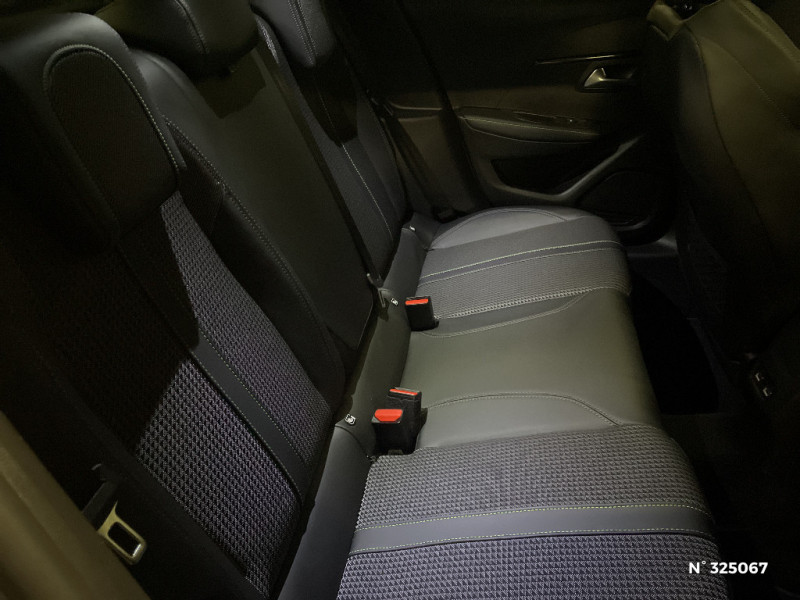 PEUGEOT Connect SOS & Assistance et Telemaintenance / PEUGEOT Connect SOS & Assistance et Telemaintenance / Système stop & go couplé avec l'assistance au positionnement sur la voie / Seuils de portes AV en Inox / Essuie-vitre AV à déclenchement automatique / PEUGEOT Connect SOS & Assistance / 2 prise USB sur console AV / Feux diurnes à LED sous projecteurs / Console haute avec accoudoir central finition TEP et surpiqûres tramontane / Pack Safety / Vitres latérales AR et lunette AR surteintées / Navigation 3D connectée avec reconnaissance vocale, écran tactile capacitif 10" HD / Kit de dépannage de pneumatique / Signature LED sur pare-choc AV / Habitacle et ciel de pavillon Noir / Aide graphique et sonore au stationnement AR / Volet de rangement smartphone / Commutation automatique des feux de route / feux de croisement / Pack Safety Plus / Siège passager AV à réglage manuel en hauteur et lombaire pneumatique / Ceintures de sécurité AV conducteur et passager à enrouleurs pyrotechniques avec limiteurs d'effort et détection de non bouclage / Ceinture de sécurité AR centrale 3 points, avec détection de non bouclage / Passages de roue Noir brillant / Bandeau entre feux AR Noir brillant / Rétroviseur intérieur photosensible frameless / Fonction Mirror Screen / Navigation 3D Connectée avec écran tactile 10'' HD couleur : 2 prises USB (Data et recharge) sur console AV, 2 prises AR sur console haut(recharge), Fonction DAB (Radio Numérique Terrestre) / Rétroviseurs extérieurs dégivrants avec réglage et rabattement électriques / Pack Safety Plus / Jupes de pare-chocs AR inférieure et supérieure Noir brillant / Jantes alliage 17'' CAMDEN avec inserts Gris Storm mat / Fonction "Mirror Screen" (Apple CarPlay / Android Auto ) / Surtapis AV et AR noirs avec surpiqûres Vert Adamite / Navigation 3D Connectée avec écran tactile 10'' HD couleur : 2 prises USB (Data et recharge) sur console AV, 2 prises AR sur console haut(recharge), Fonction DAB (Radio Numérique Terrestre) / Ceintures de sécurité AR latérales avec enrouleurs pyrotechniques, limiteurs d'effort et détection de non bouclage / Planche de bord slush surpiquée et panneaux de portes AV avec décors aspect carbone et éclairage polyambiant 8 couleurs / Volant compact cuir fleur avec laà§age vert, Lion chromé et badge GT et commandes multimédia sur volant / Peugeot i-Cockpit 3D avec combiné tête haute numérique 3D / Jantes alliage 17'' CAMDEN avec inserts storm mat / 6 HP (2 tweeters et 2 woofers à l'AV et 2 larges bandes à l'AR) / Navigation 3D connectée avec reconnaissance vocale, écran tactile capacitif 10" HD / Projecteurs "Peugeot Full Led Technology" / Jantes alliage 17'' SHAW avec inserts spécifique EV / Air conditionné automatique mono-zone / 2 prises USB (Recharge type A) sur console basse pour passagers AR / Projecteurs "Peugeot Full LED Technology" avec feux diurnes et clignotants AV à LED / Visio Park 1: Caméra de recul avec restitution sur l'écran tactile d'une vue AR et d'une vue de dessus de l'environnement AR du véhicule + Aide graphique et sonore au stationnement AR / Console haute avec accoudoir intégré / Décor panneaux de portes de portes Noir et Orange / Projecteurs "Peugeot Full LED Technology" avec signature 3 griffes / Lève-vitres AV électriques et séquentiels avec antipincement / Visio Park 1 / Fixations suivant norme ISOFIX aux places latérales AR avec étiquettes de localisation, et Top Tether / Fixations suivant norme ISOFIX sur siège passager AV avec étiquettes de localisation / Vitres latérales AR et lunette AR chauffante temporisée teintées / Calandre haut de gamme avec grille supérieure avec marquage Dark Chrome et enjoliveur supérieur Noir Brillant / Démarrage mains libres avec 2 télécommandes 3 boutons / Vitres latérales AR et lunette AR chauffante temporisée surteintées / Seuils de portes "Peugeot" / Pédalier aluminium / Pare-brise teinté acoustique / Enjoliveurs de pied milieu brillant avec sérigraphies AV / Lève-vitres AR électriques et séquentiels avec antipincement / Aide graphique et sonore au stationnement AV / Frein de stationnement électrique avec aide au démarrage en pente et serrage automatique / Programme de Stabilité Electronique (ESC) avec ASR, ABS, REF, AFU, CDS et TSM / Canule d'échappement chromée (droite) / 4 poignées de maintien (2 à l'AV et 2 à l'AR) / Fonction "Mirror Screen" (Apple CarPlay / Android Auto / MirrorLink) / Eclairage coffre à lampe / Démarrage mains libres avec 2 télécommandes 3 boutons mains libres / Fonction DAB (Radio Numérique Terrestre) / Sellerie Tri matière Tissu CAPY/TEP surpiqûres Vert Adamite / Teinte métallisée Jaune Faro / Aide graphique et sonore au stationnement AR / Détection de sous-gonflage indirecte / Avertisseur de temps de conduite / Lécheurs de vitres latérales Noir Brillant / Eclairage intérieur à LED : plafonniers tactiles AV (1 lampe et 2 liseuses) et AR (2 liseuses), pares-soleils, cave à pieds / Rétroviseur intérieur photosensible frameless - sans cadre / Projecteurs "Peugeot Full LED Technology" avec clignotants AV à LED / Signature lumineuse avant DRL à LED sous projecteurs / Filets aumônières au dos des sièges AV / Rétroviseurs extérieurs dégivrants avec réglage et rabattement électriques, éclairage de seuil / 1 Poignée de maintien passager AV