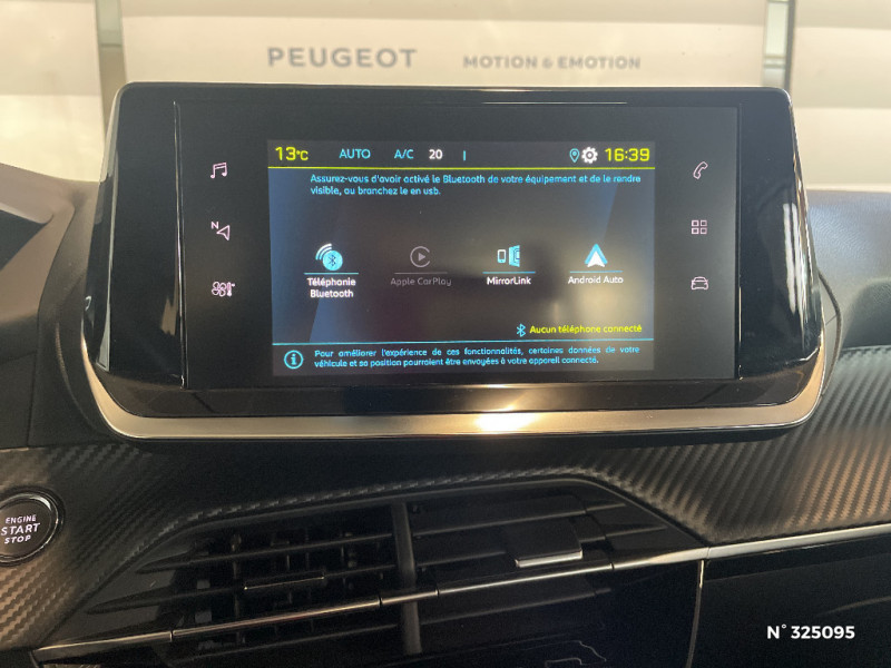 Visio Park 1: Caméra de recul avec restitution sur l'écran tactile d'une vue AR et d'une vue de dessus de l'environnement AR du véhicule + Aide graphique et sonore au stationnement AR / 2 prises USB (Recharge type A) sur console basse pour passagers AR / Projecteurs Peugeot LED Technology / Sellerie Tri matière Tissu/TEP COSY, surpiqûres Vert Mint / Enjoliveurs de pied milieu Noir brillant avec sérigraphie / Lève-vitres AV électriques et séquentiels avec antipincement / Fixations suivant norme ISOFIX aux places latérales AR avec étiquettes de localisation, et Top Tether / Radio avec écran tactile 7" couleur capacitif, 2 prises USB (DATA type A, recharge type C) sur console AV / Démarrage mains libres avec 2 télécommandes 3 boutons / Vitres latérales AR et lunette AR chauffante temporisée surteintées / Seuils de portes "Peugeot" / Pare-brise teinté acoustique / Pack Safety Plus / Ceintures de sécurité AV conducteur et passager à enrouleurs pyrotechniques avec limiteurs d'effort et détection de non bouclage / Câble électrique mode 3, prises de charge T2/T2 / Fonction "Mirror Screen" (Apple CarPlay / Android Auto ) / Décor panneaux de portes Noir et Azure / Aide graphique et sonore au stationnement AR / Coques de rétroviseurs couleur carrosserie / Fonction Mirror Screen / Planche de bord slush et panneaux de portes AV avec décors aspect carbone / Feux diurnes à LED sous projecteurs / Kit de dépannage de pneumatique / Ceinture de sécurité AR centrale 3 points, avec détection de non bouclage / Jupes de pare-chocs AR inférieure et supérieure Noir brillant / Passages de roue Noir brillant / Volant compact croute de cuir, Lion chromé et commandes multimédia sur volant / Bandeau entre feux AR Noir brillant / Rétroviseurs extérieurs dégivrants avec réglage et rabattement électriques / Démarrage mains libres avec 2 télécommandes 3 boutons / Ceintures de sécurité AR latérales avec enrouleurs pyrotechniques, limiteurs d'effort et détection de non bouclage / Peugeot i-Cockpit 3D avec combiné tête haute numérique 3D / 6 HP (2 tweeters et 2 woofers à l'AV et 2 larges bandes à l'AR) / Sellerie Tri-matières tissu COSY / TEP Mistral, surpiqûres Mentholées / Seuil de portes lettrage "PEUGEOT" / Rétroviseur intérieur photosensible / Câble électrique mode 2, prises de charge T2/EF type Green'up / Filets aumônières au dos des sièges AV / Pack Safety / 1 Poignée de maintien passager AV / PEUGEOT Connect SOS & Assistance et Telemaintenance / Projecteurs 'Peugeot LED Technology' / PEUGEOT Connect SOS & Assistance et Telemaintenance / Système stop & go couplé avec l'assistance au positionnement sur la voie / Essuie-vitre AV à déclenchement automatique / Vitres latérales AR et lunette AR surteintées / Lève-vitres AR électriques et séquentiels avec antipincement / Frein de stationnement électrique avec aide au démarrage en pente et serrage automatique / Programme de Stabilité Electronique (ESC) avec ASR, ABS, REF, AFU, CDS et TSM / Chargeur embarqué 7,4kW monophasé / Habitacle et ciel de pavillon gris clair / Eclairage intérieur à ampoules : plafonnier AV à 3 spots (1 lampe et 2 liseuses) / 3 poignées de maintien (1 à l'AV et 2 à l'AR) / Eclairage coffre à lampe / Démarrage mains libres avec 2 télécommandes 3 boutons mains libres / Fonction DAB (Radio Numérique Terrestre) / Teinte métallisée Jaune Faro / Calandre haut de gamme avec grille supérieure avec marquage couleur caisse et enjoliveur supérieur Noir Brillant / Projecteurs "Peugeot LED Technology" avec feux diurnes à LED / Sans seuil de portes lettrage "PEUGEOT" / Peugeot i-Cockpit avec combiné tête haute analogique et matrice couleur 3,5" / Projecteurs 'Peugeot LED Technology', indicateurs de direction à ampoules / Détection de sous-gonflage indirecte / Avertisseur de temps de conduite / Console haute avec accoudoir intégré / Air conditionné automatique mono-zone
