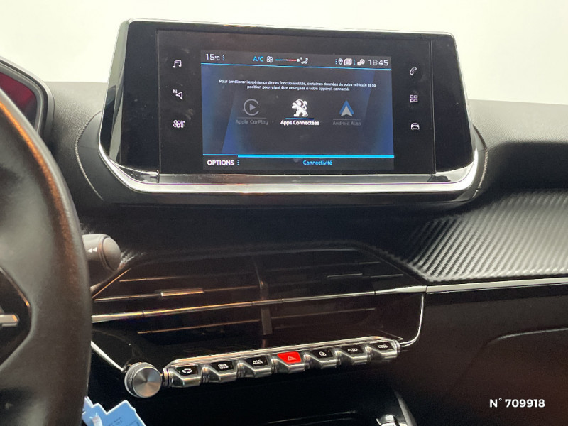 Aide graphique et sonore au stationnement AR / Air conditionné automatique mono-zone / Avertisseur de temps de conduite / Bandeau entre feux AR Noir brillant / Calandre avec grille supérieure avec marquage Chrome Brillant et enjoliveur supérieur noir grainé / Canule d'échappement non chromée / Rétroviseur intérieur photosensible / Rétroviseurs extérieurs dégivrants avec réglage et rabattement électriques / Sellerie Tri matière Tissu/TEP COSY, surpiqûres Vert Mint / Sellerie Tri-matières tissu COSY / TEP Mistral, surpiqûres Mentholées / Seuil de portes lettrage "PEUGEOT" / Seuils de portes "Peugeot" / Système stop & go couplé avec l'assistance au positionnement sur la voie / Teinte métallisée Jaune Faro / Télécommande 3 boutons + clé standard / Visio Park 1: Caméra de recul avec restitution sur l'écran tactile d'une vue AR et d'une vue de dessus de l'environnement AR du véhicule + Aide graphique et sonore au stationnement AR / Vitres latérales AR et lunette AR chauffante temporisée surteintées / Vitres latérales AR et lunette AR surteintées / Volant compact croute de cuir, Lion chromé et commandes multimédia sur volant / 1 Poignée de maintien passager AV / 2 prises USB (Recharge type A) sur console basse pour passagers AR / 3 poignées de maintien (1 à l'AV et 2 à l'AR) / 6 HP (2 tweeters et 2 woofers à l'AV et 2 larges bandes à l'AR) / Eclairage intérieur à ampoules : plafonnier AV à 3 spots (1 lampe et 2 liseuses) / Enjoliveurs de pied milieu Noir brillant avec sérigraphie / Essuie-vitre AV à déclenchement automatique / Feux diurnes à LED sous projecteurs / Filets aumônières au dos des sièges AV / Fixations suivant norme ISOFIX aux places latérales AR avec étiquettes de localisation, et Top Tether / Fonction DAB (Radio Numérique Terrestre) / Ceinture de sécurité AR centrale 3 points, avec détection de non bouclage / Ceintures de sécurité AR latérales avec enrouleurs pyrotechniques, limiteurs d'effort et détection de non bouclage / Ceintures de sécurité AV conducteur et passager à enrouleurs pyrotechniques avec limiteurs d'effort et détection de non bouclage / Console haute avec accoudoir intégré / Coques de rétroviseurs couleur carrosserie / Décor panneaux de portes Noir et Azure / Démarrage mains libres avec 2 télécommandes 3 boutons / Démarrage mains libres avec 2 télécommandes 3 boutons mains libres / Détection de sous-gonflage indirecte / Eclairage coffre à lampe / Fonction Mirror Screen / Fonction "Mirror Screen" (Apple CarPlay / Android Auto ) / Frein de stationnement électrique avec aide au démarrage en pente et serrage automatique / Habitacle et ciel de pavillon gris clair / Jantes alliage 16'' SOHO diamantées peintes Gris Storm / Jupes de pare-chocs AR inférieure Noir grainée et supérieure Noir brillant / Kit de dépannage de pneumatique / Lève-vitres AR électriques et séquentiels avec antipincement / Lève-vitres AV électriques et séquentiels avec antipincement / Pack Safety / Pack Safety Plus / Pare-brise teinté acoustique / PEUGEOT Connect SOS & Assistance et Telemaintenance / Peugeot i-Cockpit 3D avec combiné tête haute numérique 3D / Planche de bord slush et panneaux de portes AV avec décors aspect carbone / Programme de Stabilité Electronique (ESC) avec ASR, ABS, REF, AFU, CDS et TSM / Projecteurs 'Peugeot LED Technology' / Projecteurs Peugeot LED Technology / Projecteurs "Peugeot LED Technology" avec feux diurnes à LED / Projecteurs 'Peugeot LED Technology', indicateurs de direction à ampoules / Radio avec écran tactile 7" couleur capacitif, 2 prises USB (DATA type A, recharge type C) sur console AV