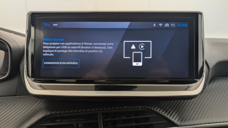 Aide graphique et sonore au stationnement AV et AR / Détection de sous-gonflage indirecte / Essuie-vitre AV à déclenchement automatique / Lève-vitres AR électriques et séquentiels avec antipincement / Programme de Stabilité Electronique (ESC) avec ASR, ABS, REF, AFU, CDS et TSM / 6 HP (2 tweeters et 2 woofers à l'AV et 2 larges bandes à l'AR) / Vitres latérales AR et lunette AR chauffante temporisée surteintées / Air conditionné automatique mono-zone / Rétroviseurs extérieurs dégivrants avec réglage et rabattement électriques / Sellerie tissu CASUAL LOMSA embossé, accompagnement TEP Isabella, trimatière LOMSA et surpiqûres Quartz / Peugeot i-Cockpit avec combiné tête haute 10" numérique / Peugeot i-Connect: Radio DAB avec écran tactile couleur personnalisable 10" HD, Bluetooth, Mirror Screen sans fil (Apple CarPlay/Android Auto), Wifi, 1 prise USB type C ( Data+charge) et 1 prise USB type C (Charge) sur console AV / Projecteurs Peugeot LED Technology avec feux diurnes à LED 3 griffes / Jantes alliage 16" diamantées NOMA bi--ton vernis brillant et Noir Orbital / PEUGEOT Connect SOS / Volant compact cuir avec commandes multimédia intégrées / ESP Déconnectable avec aide au démarrage en pente / Feux AR signature 3 griffes, stop à LEDs, recul et indicateur de direction à lampe / 6 Airbags (Frontaux auto-adaptatifs, latéraux AV et rideaux AV/AR) / Pack Safety : Alerte attention conducteur Régulateur / Limiteur de vitesse Reconnaissance étendue des panneaux de signalisation et préconisation de vitesse Alerte active de franchissement involontaire de ligne et bas côté Freinage d'urgence automatique avec alerte risque de collision / Pack Visibilité : Allumage automatique des feux de croisement / Rétroviseur intérieur électrochrome / Lève-vitres AV électriques et séquentiels avec antipincement / Kit de dépannage de pneumatique / / Véhicules équivalents: Clio - C3 - Yaris