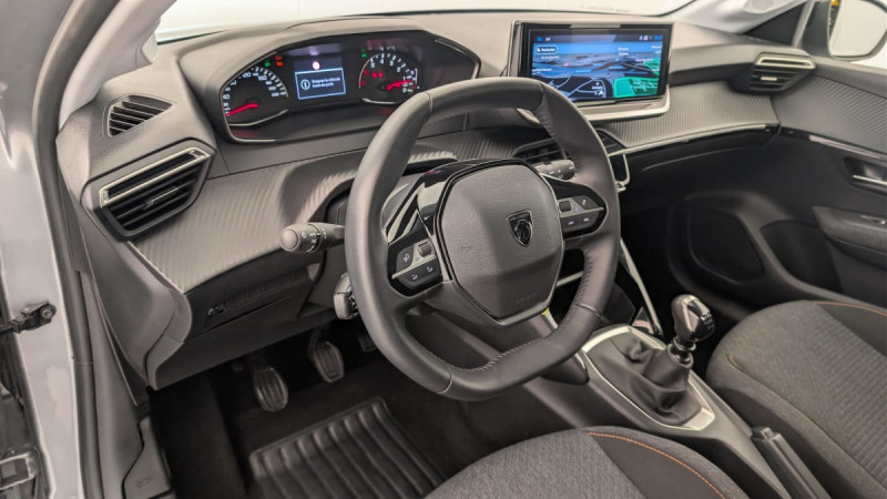 Détection de sous-gonflage indirecte / Lève-vitres AR électriques et séquentiels avec antipincement / Programme de Stabilité Electronique (ESC) avec ASR, ABS, REF, AFU, CDS et TSM / Peugeot i-Cockpit avec combiné tête haute analogique et matrice couleur 3,5" / Rétroviseur intérieur à réglage jour/nuit manuel / 6 HP (2 tweeters et 2 woofers à l'AV et 2 larges bandes à l'AR) / Vitres latérales AR et lunette AR chauffante temporisée teintées / Peugeot Connect SOS / Aide au stationnement AR, graphique et sonore / Volant compact en croûte de cuir avec commandes multimédia intégrées / Console basse avec frein de stationnement mécanique / Touch screen 10" & Bluetooth Radio & Telephone: Radio DAB avec écran tactile couleur 10" SD, Bluetooth, Mirror Screen sans fil (Apple CarPlay / Android Auto), Ecran avec Toggles Switches, 1 prise USB type C ( Data+charge ) sur console AV / Projecteurs Peugeot LED Technology avec feux diurnes à LED 3 griffes / Jantes tôle 16" avec enjoliveurs MONTI Gris Eclat avec vernis brillant & noir grainé / ESP Déconnectable avec aide au démarrage en pente / Feux AR signature 3 griffes, stop à LEDs, recul et indicateur de direction à lampe / 6 Airbags (Frontaux auto-adaptatifs, latéraux AV et rideaux AV/AR) / Pack Safety : Alerte attention conducteur Régulateur / Limiteur de vitesse Reconnaissance étendue des panneaux de signalisation et préconisation de vitesse Alerte active de franchissement involontaire de ligne et bas côté Freinage d'urgence automatique avec alerte risque de collision / Pack Visibilité : Allumage automatique des feux de croisement / Air conditionné simple monozone / Sellerie tissu RENZO, accompagnement Rimini, surpiqûres Orange Sunrise / Accoudoirs de porte AV et AR / Lève-vitres AV électriques et séquentiels avec antipincement / / Véhicules équivalents: Clio - C3 - Yaris