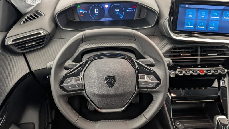Aide graphique et sonore au stationnement AV et AR / Détection de sous-gonflage indirecte / Essuie-vitre AV à déclenchement automatique / Lève-vitres AR électriques et séquentiels avec antipincement / Ceintures de sécurité AV conducteur et passager à enrouleurs pyrotechniques avec limiteurs d'effort et détection de non bouclage / Ceinture de sécurité AR centrale 3 points, avec détection de non bouclage / Ceintures de sécurité AR latérales avec enrouleurs pyrotechniques, limiteurs d'effort et détection de non bouclage / Programme de Stabilité Electronique (ESC) avec ASR, ABS, REF, AFU, CDS et TSM / 6 HP (2 tweeters et 2 woofers à l'AV et 2 larges bandes à l'AR) / Eclairage coffre à lampe / Télécommande 3 boutons + clé standard / Vitres latérales AR et lunette AR chauffante temporisée surteintées / Air conditionné automatique mono-zone / Rétroviseurs extérieurs dégivrants avec réglage et rabattement électriques / Peugeot Connect SOS & Assistance et Teleservices SOS & Assistance : Appel d'urgence automatique ou manuel par push SOS / Sellerie tissu CASUAL LOMSA embossé, accompagnement TEP Isabella, trimatière LOMSA et surpiqûres Quartz / Volant compact en croûte de cuir avec commandes multimédia intégrées / Console haute avec accoudoir & frein de stationnement électrique 1 prise USB type C (Charge) et 1 prise USB type A (Charge) pour passagers AR / Peugeot i-Cockpit avec combiné tête haute 10" numérique / Peugeot i-Connect: Radio DAB avec écran tactile couleur personnalisable 10" HD, Bluetooth, Mirror Screen sans fil (Apple CarPlay/Android Auto), Wifi, 1 prise USB type C ( Data+charge) et 1 prise USB type C (Charge) sur console AV / Projecteurs Peugeot LED Technology avec feux diurnes à LED 3 griffes / Jantes alliage 16" diamantées NOMA bi--ton vernis brillant et Noir Orbital / ESP Déconnectable avec aide au démarrage en pente / 3 poignées de maintien rétractables (1passager à l'AV et 2 à l'AR) / Feux AR signature 3 griffes, stop à LEDs, recul et indicateur de direction à lampe / Antenne requin / Accoudoirs sur portes AV et AR en TEP avec surpiqûre Quartz / Enjoliveur supérieur de calandre Noir Brillant / Calandre haute de gamme noir grainée avec marquage couleur caisse / Prise 12V et rangement pour smartphone en façade centrale / Commande d'ouverture des portes couleur caisse / Enjoliveur entre feux AR noir brillant / Becquet rapporté Noir Brillant / 1 prise USB type C (Charge) et 1 prise USB type A (Charge) pour passagers AR / 6 Airbags (Frontaux auto-adaptatifs, latéraux AV et rideaux AV/AR) / Pack Safety Régulateur / Limiteur de vitesse, Freinage d'urgence automatique avec alerte risque de collision, Alerte active de franchissement involontaire de ligne et bas côté, Reconnaissance étendue des panneaux de signalisation et préconisation de vitesse, Alerte attention conducteur : Alerte attention conducteur Régulateur / Limiteur de vitesse Reconnaissance étendue des panneaux de signalisation et préconisation de vitesse Alerte active de franchissement involontaire de ligne et bas côté Freinage d'urgence automatique avec alerte risque de collision / Pack Visibilité Allumage automatique des feux de croisement : Allumage automatique des feux de croisement / Eclairage intérieur Plafonnier AV A-DOME 3 ampoules (1 lampe, 2 liseuses AV) / 1 prise USB type C ( Data+charge ) et 1 prise USB type C (Charge) sur console AV / Rétroviseur intérieur électrochrome / Lève-vitres AV électriques et séquentiels avec antipincement / / Véhicules équivalents: Clio - C3 - Yaris