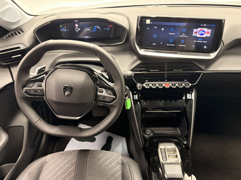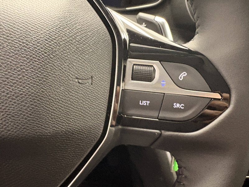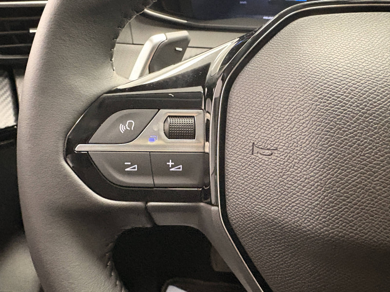 3 poignées de maintien rétractables (1passager à l'AV et 2 à l'AR) / 6 Airbags (Frontaux auto-adaptatifs, latéraux AV et rideaux AV/AR) / 6 HPs (2 tweeters et 2 woofers à l'AV et 2 HPs à l'AR) / Accoudoirs sur portes AV et AR en TEP avec surpiqûre Quartz / Air conditionné automatique mono-zone / Antenne requin / Becquet rapporté Noir Brillant / Boîte de vitesse automatique, séquentielle (6 rapports) / Calandre haute de gamme noir grainée avec marquage couleur caisse / Ceinture de sécurité AR centrale 3 points, avec détection de non bouclage / Ceintures de sécurité AR latérales avec enrouleurs pyrotechniques, limiteurs d'effort et détection de non bouclage / Ceintures de sécurité AV conducteur et passager à enrouleurs pyrotechniques avec limiteurs d'effort et détection de non bouclage / Commande d'ouverture des portes couleur caisse / Console haute avec accoudoir & frein de stationnement électrique 1 prise USB type C (Charge) et 1 prise USB type A (Charge) pour passagers AR, Sélecteur de mode de conduite Normal/Eco/Sport / Détection de sous-gonflage indirecte / Eclairage coffre à lampe / Eclairage intérieur Plafonnier AV A-DOME 3 ampoules (1 lampe, 2 liseuses AV) / Enjoliveur bas de calandre noir grainé / Enjoliveur DRL Noir grainé / Enjoliveur entre feux AR noir brillant / Enjoliveurs d'ailes Noir Brillant / Enjoliveur supérieur de calandre Noir grainé / ESP Déconnectable avec aide au démarrage en pente / Essuie-vitre AV à déclenchement automatique / Feux AR signature 3 griffes, stop à LEDs, recul et indicateur de direction à lampe / Habitacle et ciel de pavillon clair / Intervalle de maintenance 25 000 km ou 1 an / Jantes alliage 17" diamantées YANAKA bi--ton vernis brillant et Noir Orbital avec inserts Noir Orbital et vernis mat / Jupes AR inférieure noir grainé / Jupes AR supérieure Noir brillant / Lécheurs de vitres Noir mat / Lève-vitres AR électriques et séquentiels avec antipincement / Lève-vitres AV électriques et séquentiels avec antipincement / Pack Safety Régulateur / Limiteur de vitesse, Freinage d'urgence automatique avec alerte risque de collision, Freinage automatique d'urgence avec détection élargie (3 caméras haut de pare-brise) et protection des usagers de la route vulnérables (piétons, cyclistes,), Alerte active de franchissement involontaire de ligne et bas côté, Reconnaissance étendue des panneaux de signalisation et préconisation de vitesse, Alerte attention conducteur / Pack Visibilité Allumage automatique des feux de croisement / Panneaux de porte AV avec médaillon décor Carbone injecté et baguette Noir brillante avec tampographie Quartz / Panneaux de portes AR injectés grain Karsten sans baguette / Peugeot Connect SOS & Assistance et Teleservices SOS & Assistance : Appel d'urgence automatique ou manuel par push SOS, et mise en relation directe avec la plateforme d'assistance PEUGEOT (24h/24 7j/7) , Teleservices : Détection du besoin d'une intervention technique ou d'une opération d'entretien périodique et transmission au réseau PEUGEOT pour prise de rendez vous / Peugeot i-Cockpit avec combiné tête haute 10" numérique / Peugeot i-Connect: Radio DAB avec écran tactile couleur personnalisable 10" HD, Bluetooth - Mirror Screen sans fil (Apple CarPlay/Android Auto) - Wifi - 1 prise USB type C ( Data+charge), 1 prise USB type C (Charge) sur console AV - 1 prise USB type C (Charge) et 1 prise USB type A (Charge) pour passagers AR / Planche de bord Slush avec Décor Carbone slush et baguette Noir brillante avec jonc Chromé / Prise 12V et rangement pour smartphone en façade centrale / Programme de Stabilité Electronique (ESC) avec ASR, ABS, REF, AFU, CDS et TSM / Projecteurs Peugeot LED Technology avec feux diurnes à LED 3 griffes / Rétroviseur intérieur électrochrome / Rétroviseurs extérieurs dégivrants avec réglage et rabattement électriques / Sellerie tissu CASUAL LOMSA embossé, accompagnement TEP Isabella, trimatière LOMSA et surpiqûres Quartz / Seuils de portes aluminium avec lettrage PEUGEOT / Télécommande 3 boutons + clé standard / Visiopark 1 Caméra de recul HD, aide au stationnement AV et AR graphique et sonore / Vitres latérales AR et lunette AR chauffante temporisée surteintées / Volant compact en croûte de cuir avec commandes multimédia intégrées
