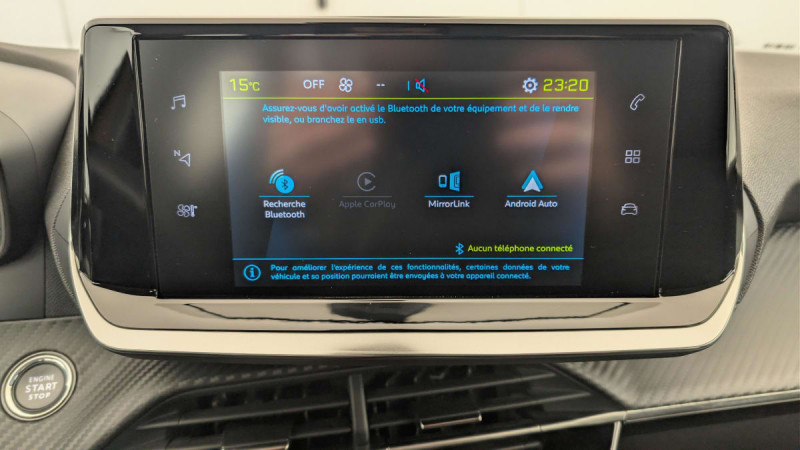Détection de sous-gonflage indirecte / Lève-vitres AR électriques et séquentiels avec antipincement / Pack Safety : Reconnaissance des panneaux de vitesse et préconisation de vitesse Alerte active de franchissement involontaire de ligne et bas côté Freinage d'urgence automatique (Active Safety Brake) avec alerte risque de collision (Distance Alert) Alerte attention conducteur par caméra / Frein de stationnement électrique avec aide au démarrage en pente et serrage automatique / Programme de Stabilité Electronique (ESC) avec ASR, ABS, REF, AFU, CDS et TSM / Fixations suivant norme ISOFIX aux places latérales AR avec étiquettes de localisation, et Top Tether / Chargeur embarqué 7,4kW monophasé / Volant compact croute de cuir, Lion chromé et commandes multimédia sur volant / Peugeot i-Cockpit avec combiné tête haute analogique et matrice couleur 3,5" / Rétroviseur intérieur à réglage jour/nuit manuel / 6 HP (2 tweeters et 2 woofers à l'AV et 2 larges bandes à l'AR) / Console haute avec accoudoir intégré / Vitres latérales AR et lunette AR chauffante temporisée teintées / Fonction DAB (Radio Numérique Terrestre) / Air conditionné automatique mono-zone / Sellerie Tri matière Tissu PNEUMA 3D, surpiqûre Orange Intense / Radio avec écran tactile 7" couleur capacitif, 2 prises USB (DATA type A, recharge type C) sur console AV / Fonction "Mirror Screen" (Apple CarPlay / Android Auto ) / Rétroviseurs extérieurs dégivrants avec réglage et rabattement électriques / Jantes tôle 16'' avec enjoliveurs PLAKA / Projecteurs halogènes avec feux diurnes à LED / Lève-vitres AV électriques et séquentiels avec antipincement / Kit de dépannage de pneumatique / Pare-brise teinté acoustique / / Véhicules équivalents: Clio - C3 - Yaris