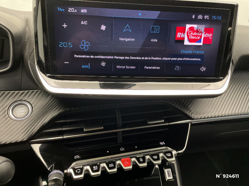 Détection de sous-gonflage indirecte / Rétroviseurs extérieurs dégivrants avec réglage et rabattement électriques / Jantes alliage 16" diamantées NOMA bi--ton vernis brillant et Noir Orbital / Habitacle et ciel de pavillon clair / Jupes AR supérieure Noir brillant / Jupes AR inférieure noir grainé / 1 prise USB type C (Charge) et 1 prise USB type A (Charge) pour passagers AR / Ceinture de sécurité AR centrale 3 points, avec détection de non bouclage / Vitres latérales AR et lunette AR chauffante temporisée surteintées / Panneaux de portes AR injectés grain Karsten sans baguette / Planche de bord Slush avec Décor Carbone slush et baguette Noir brillante avec jonc Chromé / Planche de bord Injecté avec Décor Carbone injecté avec jonc chromé / Panneaux de porte AV avec médaillon décor Carbone injecté et baguette Noir brillante avec tampographie Quartz / 1 prise USB type C ( Data+charge ) et 1 prise USB type C (Charge) sur console AV / Lève-vitres AR électriques et séquentiels avec antipincement / Ceintures de sécurité AV conducteur et passager à enrouleurs pyrotechniques avec limiteurs d'effort et détection de non bouclage / ESP Déconnectable avec aide au démarrage en pente / Air conditionné automatique mono-zone / Enjoliveur supérieur de calandre Noir Brillant / Calandre haut de gamme noir grainée avec marquage couleur caisse / Eclairage coffre à lampe / Essuie-vitre AV à déclenchement automatique / 3 poignées de maintien rétractables (1passager à l'AV et 2 à l'AR) / 6 haut-parleurs (2 tweeters et 2 woofers à l'AV et 2 larges bandes à l'AR) / Projecteurs "Peugeot LED Technology" avec feux diurnes à LED 3 griffes / Prise 12V et rangement pour smartphone en faà§ade centrale / Programme de Stabilité Electronique (ESC) avec ASR, ABS, REF, AFU, CDS et TSM / Enjoliveur entre feux AR noir brillant / Becquet rapporté Noir Brillant / Enjoliveur DRL Noir Brillant / Enjoliveur bas de calandre Noir Brillant / Console haute avec accoudoir & frein de stationnement électrique 1 prise USB type C (Charge) et 1 prise USB type A (Charge) pour passagers AR, Sélecteur de mode de conduite Normal/Eco / Peugeot i-Cockpit avec combiné tête haute 10'' numérique / PEUGEOT Connect SOS & Assistance et Teleservices SOS & Assistance : Appel d'urgence automatique ou manuel par push SOS, et mise en relation directe avec la plateforme d'assistance PEUGEOT (24h/24 7j/7) Teleservices : Détection du besoin d'une intervention technique ou d'une opération d'entretien périodique et transmission au réseau PEUGEOT pour prise de rendez vous / Aide graphique et sonore au stationnement AV et AR / Lécheurs de vitres Noir Mat / Télécommande 3 boutons + clé standard / Feux AR signature 3 griffes, stop à LEDs, recul et indicateur de direction à lampe / Antenne requin / Commande d'ouverture des portes couleur caisse / Accoudoirs sur portes AV et AR en TEP avec surpiqûre Quartz / Ceintures de sécurité AR latérales avec enrouleurs pyrotechniques, limiteurs d'effort et détection de non bouclage / Pack Safety Régulateur / Limiteur de vitesse Freinage d'urgence automatique avec alerte risque de collision Alerte active de franchissement involontaire de ligne et bas côté Reconnaissance étendue des panneaux de signalisation et préconisation de vitesse Alerte attention conducteur / Pack Visibilité Allumage automatique des feux de croisement / Lève-vitres AV électriques et séquentiels avec antipincement / Eclairage intérieur Plafonnier AV A-DOME 3 ampoules (1 lampe, 2 liseuses AV) / 6 Airbags - Frontaux auto-adaptatifs, latéraux AV et rideaux AV et AR / Sellerie tissu CASUAL LOMSA embossé, accompagnement TEP Isabella, tri matière LOMSA et surpiqûres Quartz / Peugeot i-Connect Radio DAB avec écran tactile couleur personnalisable 10" HD,Bluetooth, Mirror Screen sans fil (Apple CarPlay/Android Auto), Wifi, 1 prise USB type C ( Data+charge ) et 1 prise USB type C (Charge) sur console AV / Rétroviseur intérieur électrochrome / Volant compact croute de cuir avec commandes multimédia intégrées