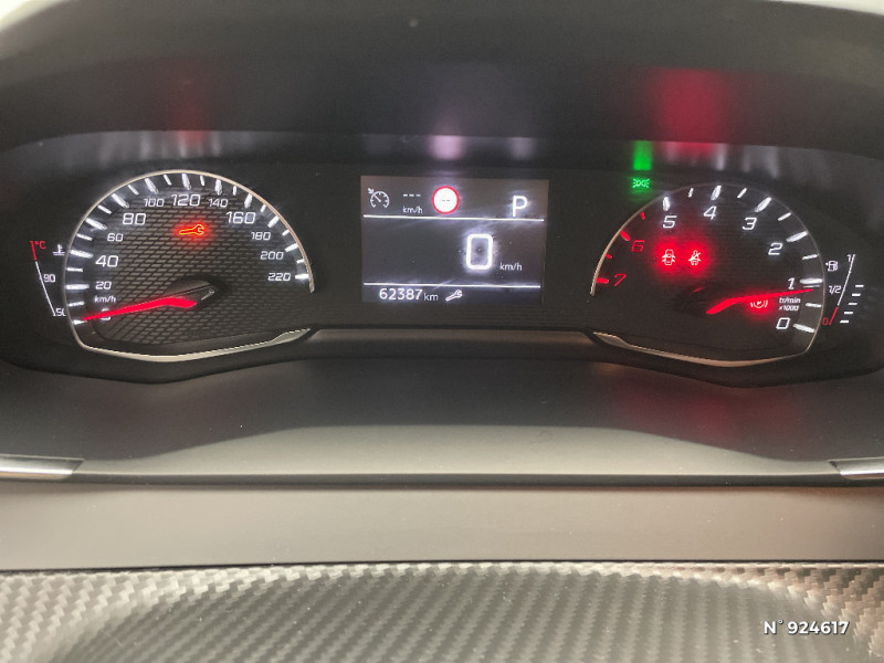 Enjoliveurs de pied milieu Noir brillant avec sérigraphie / Fonction DAB (Radio Numérique Terrestre) / Peugeot i-Cockpit avec combiné tête haute analogique et matrice couleur 3"5 / Monogramme extérieur "Style" Noir Onyx / Détection de sous-gonflage indirecte / Console haute avec accoudoir intégré / Habitacle et ciel de pavillon gris clair / Rétroviseurs extérieurs dégivrants avec réglage et rabattement électriques / Vitres latérales AR et lunette AR chauffante temporisée surteintées / 1 Poignée de maintien passager AV / Volant compact croute de cuir, Lion chromé et commandes multimédia sur volant / Aide graphique et sonore au stationnement AR / Feux diurnes à LED sous projecteurs / Kit de dépannage de pneumatique / Eclairage intérieur à ampoules : plafonnier AV à 3 spots (1 lampe et 2 liseuses) / Ceinture de sécurité AR centrale 3 points, avec détection de non bouclage / Lève-vitres AR électriques et séquentiels avec antipincement / Rétroviseur intérieur à réglage jour/nuit manuel / Frein de stationnement électrique avec aide au démarrage en pente et serrage automatique / Pack Safety / 3 poignées de maintien (1 à l'AV et 2 à l'AR) / Ceintures de sécurité AV conducteur et passager à enrouleurs pyrotechniques avec limiteurs d'effort et détection de non bouclage / Pare-brise teinté acoustique / Sellerie Tri matière Tissu PNEUMA 3D, surpiqûre Bleu Azure / Eclairage coffre à lampe / 6 haut-parleurs (2 tweeters et 2 woofers à l'AV et 2 larges bandes à l'AR) / Ceintures de sécurité AR latérales avec enrouleurs pyrotechniques, limiteurs d'effort et détection de non bouclage / Jantes alliage 16" SOHO diamantées peintes Gris Storm / Fixations suivant norme ISOFIX aux places latérales AR avec étiquettes de localisation, et Top Tether / Lève-vitres AV électriques et séquentiels avec antipincement / Radio avec écran tactile capacitif 7" couleur, 1 prise USB (DATA type A) sur console AV / Fonction "Mirror Screen" (Apple CarPlay / Android Auto ) / Radio avec écran tactile 7" couleur capacitif, 2 prises USB (DATA type A, recharge type C) sur console AV / Programme de Stabilité Electronique (ESC) avec ASR, ABS, REF, AFU, CDS et TSM / Télécommande 3 boutons + clé standard / Bandeau entre feux AR noir brillant / Calandre avec grille supérieure avec marquage Chrome Brillant et enjoliveur supérieur noir grainé / Projecteurs 'Peugeot LED Technology', indicateurs de direction à ampoules / 2 prises USB (Recharge type A) sur console basse pour passagers AR / Surtapis Style / Seuil de portes lettrage "PEUGEOT" / Décor panneaux de portes Noir et Azure / Planche de bord slush et panneaux de portes AV avec décors aspect carbone / Jupes de pare-chocs AR inférieure et supérieure Noir grainée