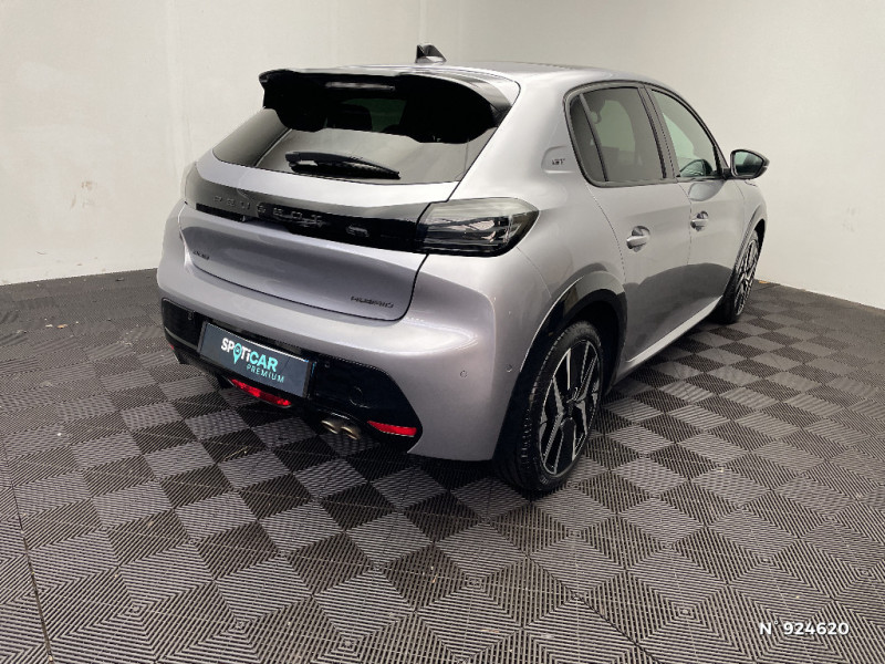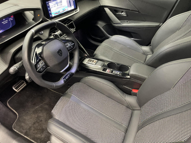 Volant compact cuir fleur avec commandes multimédia intégrées et badge GT / Projecteurs "Peugeot Full LED Technology" avec feux diurnes à LED 3 griffes / Jantes alliage 17'' diamantées YANAKA bi--ton vernis brillant et Noir Orbital avec inserts Noir Orbital et vernis mat / Jupes AR inférieure Noir brillant / 1 prise USB type C (Charge) et 1 prise USB type A (Charge) pour passagers AR / Jupes AR supérieure Noir brillant / Panneaux de porte AV avec médaillon TPE surmoulé Carbone, baguette Noir brillante avec jonc lumineux (8 couleurs) et crosse de tirage TEP avec surpiqûres Adamite / Planche de bord Slush avec Décor Carbone TPE et double surpiqûres Adamite/Tramontane et baguette Noir brillante avec jonc chromé et jonc lumineux / Ceintures de sécurité AV conducteur et passager à enrouleurs pyrotechniques avec limiteurs d'effort et détection de non bouclage / Pack Visibilité Allumage automatique des feux de croisement / Siège passager AV à réglage manuel en hauteur / Pack Safety Régulateur / Limiteur de vitesse Freinage d'urgence automatique avec alerte risque de collision Alerte active de franchissement involontaire de ligne et bas côté Reconnaissance étendue des panneaux de signalisation et préconisation de vitesse Alerte attention conducteur / 6 Airbags - Frontaux auto-adaptatifs, latéraux AV et rideaux AV et AR / Sellerie tissu BELOMKA, accompagnement TEP Isabella, trimatière Uni Capy et surpiqûres Vert Adamit / PEUGEOT Connect SOS & Assistance et Teleservices SOS & Assistance : Appel d'urgence automatique ou manuel par push SOS, et mise en relation directe avec la plateforme d'assistance PEUGEOT (24h/24 7j/7) Teleservices : Détection du besoin d'une intervention technique ou d'une opération d'entretien périodique et transmission au réseau PEUGEOT pour prise de rendez vous / Rétroviseurs extérieurs dégivrants avec réglage et rabattement électriques,éclairage de seuil / Rétroviseur intérieur électrochrome / Peugeot i-Connect Radio DAB avec écran tactile couleur personnalisable 10" HD,Bluetooth, Mirror Screen sans fil (Apple CarPlay/Android Auto), Wifi, 1 prise USB type C ( Data+charge ) et 1 prise USB type C (Charge) sur console AV / Télécommande 3 boutons + clé standard / Commande d'ouverture des portes couleur caisse / Feux AR signature 3 griffes, stop,recul et indicateur de direction à LEDs / Prise 12V et rangement pour smartphone en faà§ade centrale / Antenne requin / Recharge smartphone sans fil (15W) / Rétroviseur intérieur électrochrome sans cadre / Eclairage coffre à lampe / Lève-vitres AV électriques et séquentiels avec antipincement / Enjoliveur entre feux AR noir brillant / Enjoliveur DRL Noir Brillant / Enjoliveur bas de calandre Noir Brillant / Enjoliveur supérieur de calandre Noir Brillant / Becquet rapporté Noir Brillant / Calandre haut de gamme noir grainée avec marquage couleur caisse / 6 haut-parleurs (2 tweeters et 2 woofers à l'AV et 2 larges bandes à l'AR) / Programme de Stabilité Electronique (ESC) avec ASR, ABS, REF, AFU, CDS et TSM / Essuie-vitre AV à déclenchement automatique / Ceintures de sécurité AR latérales avec enrouleurs pyrotechniques, limiteurs d'effort et détection de non bouclage / 4 poignées de maintien rétractables (2 à l'AV et 2 à l'AR) / Peugeot i-Cockpit 3D avec combiné tête haute numérique 3D 10'' / Pédalier Sport aluminium / 1 prise USB type C ( Data+charge ) et 1 prise USB type C (Charge) sur console AV / Surtapis AV et AR / Lécheurs de vitres latérales Noir Brillant / Console haute avec accoudoir & frein de stationnement électrique 1 prise USB type C (Charge) et 1 prise USB type A (Charge) pour passagers AR, Sélecteur de mode de conduite Normal/Eco/Sport / Seuils de portes AV aluminium siglés PEUGEOT / Visiopark 1 Aide au stationnement avant et arrière, graphique et sonore, Caméra de recul avec restitution sur l'écran tactile d'une vue AR, et d'une vue de dessus de l'environnement arrière du véhicule / ESP Déconnectable avec aide au démarrage en pente / Commutation automatique des feux de route / feux de croisement / PEUGEOT Connect SOS & Assistance et Teleservices SOS & Assistance : Appel d'urgence automatique ou manuel par push SOS, et mise en relation directe avec la plateforme d'assistance PEUGEOT (24h/24 7j/7) Teleservices: Détection du besoin d'une intervention technique ou d'une opération d'entretien périodique et transmission au réseau PEUGEOT pour prise de rendez vous / Ceinture de sécurité AR centrale 3 points, avec détection de non bouclage / Lève-vitres AR électriques et séquentiels avec antipincement / Habitacle et ciel de pavillon noir / Eclairage polyambiant 8 couleurs (Liés aux modes de conduite) / Air conditionné automatique mono-zone / Seuils de portes aluminium avec lettrage PEUGEOT / Eclairage intérieur Eclairager AV I-DOME à LED (1 plafonnier et 2 liseuses), 2 liseuses à LED AR, Miroir de courtoisie dans pare--soleil éclairéà LED, Eclairage à LED partie basse rangement et caves à pieds / Enjoliveurs d'ailes Noir Brillant / Vitres latérales AR et lunette AR chauffante temporisée surteintées / Rétroviseurs extérieurs dégivrants avec réglage et rabattement électriques / Accoudoirs sur portes AV et AR en TEPavec surpiqûre Adamite / Panneaux de porte AR avec grain Karsten avec baguette Noir brillant / Visiopark 1 Caméra de recul HD, aide au stationnement AV et AR graphique et sonore / Détection de sous-gonflage indirecte / Accès et démarrage mains libres Proximity