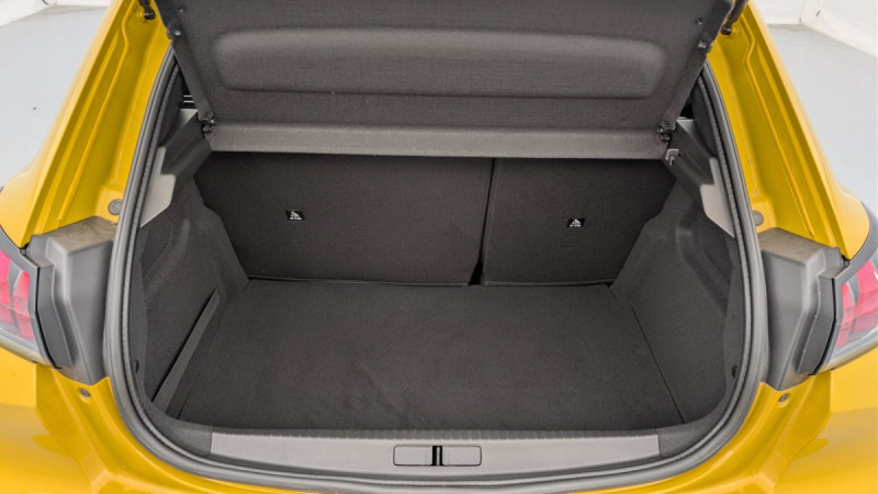 Détection de sous-gonflage indirecte / Lève-vitres AR électriques et séquentiels avec antipincement / Pack Safety : Reconnaissance des panneaux de vitesse et préconisation de vitesse Alerte active de franchissement involontaire de ligne et bas côté Freinage d'urgence automatique (Active Safety Brake) avec alerte risque de collision (Distance Alert) Alerte attention conducteur par caméra / Frein de stationnement électrique avec aide au démarrage en pente et serrage automatique / Programme de Stabilité Electronique (ESC) avec ASR, ABS, REF, AFU, CDS et TSM / Fixations suivant norme ISOFIX aux places latérales AR avec étiquettes de localisation, et Top Tether / Chargeur embarqué 7,4kW monophasé / Volant compact croute de cuir, Lion chromé et commandes multimédia sur volant / Peugeot i-Cockpit avec combiné tête haute analogique et matrice couleur 3,5" / Rétroviseur intérieur à réglage jour/nuit manuel / 6 HP (2 tweeters et 2 woofers à l'AV et 2 larges bandes à l'AR) / Console haute avec accoudoir intégré / Vitres latérales AR et lunette AR chauffante temporisée teintées / Fonction DAB (Radio Numérique Terrestre) / Air conditionné automatique mono-zone / Sellerie Tri matière Tissu PNEUMA 3D, surpiqûre Orange Intense / Radio avec écran tactile 7" couleur capacitif, 2 prises USB (DATA type A, recharge type C) sur console AV / Fonction "Mirror Screen" (Apple CarPlay / Android Auto ) / Rétroviseurs extérieurs dégivrants avec réglage et rabattement électriques / Jantes tôle 16'' avec enjoliveurs PLAKA / Projecteurs halogènes avec feux diurnes à LED / Lève-vitres AV électriques et séquentiels avec antipincement / Kit de dépannage de pneumatique / Pare-brise teinté acoustique / / Véhicules équivalents: Clio - C3 - Yaris