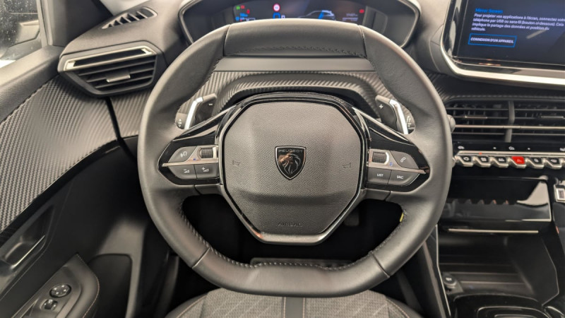 Aide graphique et sonore au stationnement AV et AR / Détection de sous-gonflage indirecte / Essuie-vitre AV à déclenchement automatique / Lève-vitres AR électriques et séquentiels avec antipincement / Programme de Stabilité Electronique (ESC) avec ASR, ABS, REF, AFU, CDS et TSM / 6 HP (2 tweeters et 2 woofers à l'AV et 2 larges bandes à l'AR) / Eclairage coffre à lampe / Télécommande 3 boutons + clé standard / Vitres latérales AR et lunette AR chauffante temporisée surteintées / Air conditionné automatique mono-zone / Rétroviseurs extérieurs dégivrants avec réglage et rabattement électriques / Sellerie tissu CASUAL LOMSA embossé, accompagnement TEP Isabella, trimatière LOMSA et surpiqûres Quartz / Console haute avec accoudoir & frein de stationnement électrique 1 prise USB type C (Charge) et 1 prise USB type A (Charge) pour passagers AR, Sélecteur de mode de conduite Normal/Eco/Sport / Peugeot i-Connect: Radio DAB avec écran tactile couleur personnalisable 10" HD, Bluetooth, Mirror Screen sans fil (Apple CarPlay/Android Auto), Wifi, 1 prise USB type C ( Data+charge) et 1 prise USB type C (Charge) sur console AV / Projecteurs Peugeot LED Technology avec feux diurnes à LED 3 griffes / Jantes alliage 16" diamantées NOMA bi--ton vernis brillant et Noir Orbital / PEUGEOT Connect SOS / Volant compact cuir avec commandes multimédia intégrées / ESP Déconnectable avec aide au démarrage en pente / Feux AR signature 3 griffes, stop à LEDs, recul et indicateur de direction à lampe / Antenne requin / Planche de bord Slush avec Décor Carbone TPE et baguette Noir brillante avec jonc Chromé / Panneaux de porte AV avec médaillon TPE surmoulé Carbone, baguette Noir brillante avec tampographie Quartz / Accoudoirs sur portes AV et AR / Prise 12V et rangement pour smartphone en façade centrale / Enjoliveur entre feux AR noir brillant / 6 Airbags (Frontaux auto-adaptatifs, latéraux AV et rideaux AV/AR) / Pack Safety : Alerte attention conducteur Régulateur / Limiteur de vitesse Reconnaissance étendue des panneaux de signalisation et préconisation de vitesse Alerte active de franchissement involontaire de ligne et bas côté Freinage d'urgence automatique avec alerte risque de collision / Pack Visibilité : Allumage automatique des feux de croisement / Eclairage intérieur Plafonnier AV A-DOME 3 ampoules (1 lampe, 2 liseuses AV) / Rétroviseur intérieur électrochrome / Lève-vitres AV électriques et séquentiels avec antipincement / Kit de dépannage de pneumatique / / Véhicules équivalents: Clio - C3 - Yaris