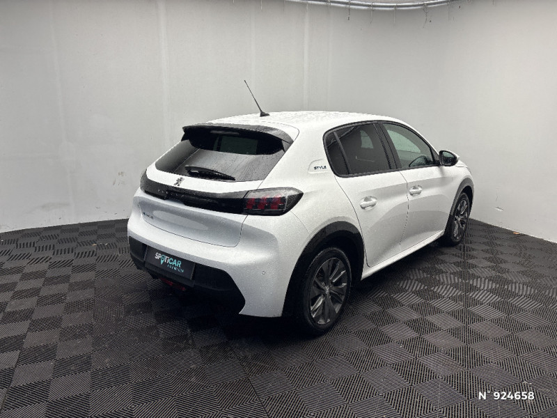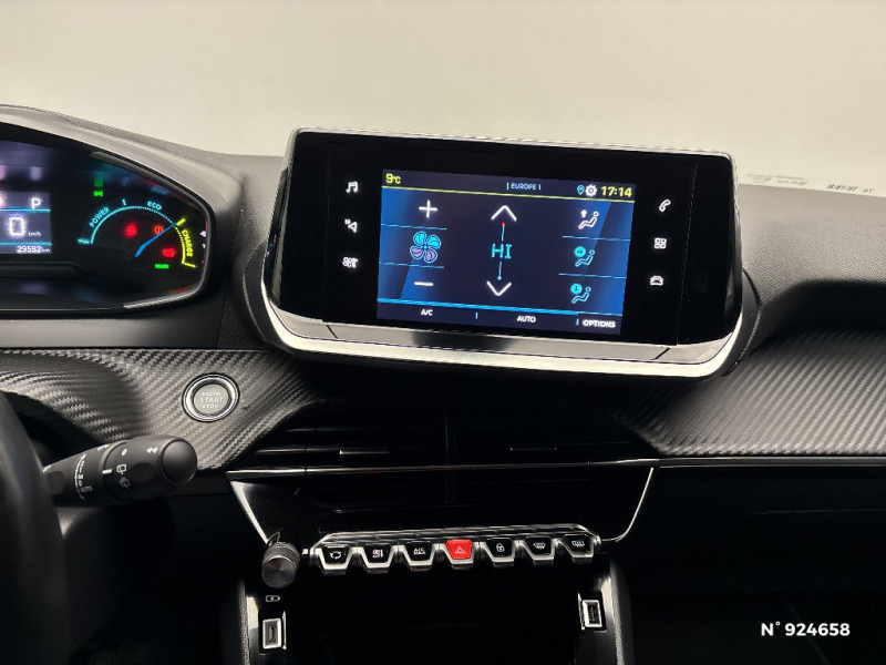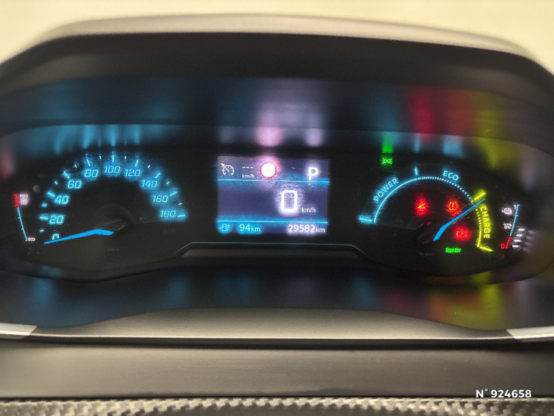 Sellerie Tissu PNEUMA 3D, surpiqûre Bleu Azur / Nouvelle étiquette de sièges AV / Planche de bord slush et panneaux de portes AV avec décors aspect carbone / Aide graphique et sonore au stationnement AR / Surtapis Style / Surtapis Style EV / Enjoliveurs de pied milieu Noir brillant / Démarrage mains libres avec 2 télécommandes 3 boutons mains libres / Reconnaissance étendue des panneaux / Détection de sous-gonflage indirecte / Feux diurnes à LED sous projecteurs / Vitres latérales AR et lunette AR chauffante temporisée surteintées / Signature LED sur pare-choc AV / Rétroviseur intérieur électrochrome / Fonction DAB (Radio Numérique Terrestre) / PEUGEOT Connect SOS & Assistance et Telemaintenance / Console basse / Console haute avec accoudoir intégré / Câble électrique mode 2, prises de charge T2/EF type Green'up / Air conditionné automatique mono-zone / Coques de rétroviseurs couleur carrosserie / Rétroviseurs extérieurs dégivrants avec réglage et rabattement électriques / Signature lumineuse avant DRL à LED sous projecteurs / Kit de dépannage de pneumatique / Frein de stationnement électrique avec aide au démarrage en pente et serrage automatique / Enjoliveurs de pied milieu Noir brillant avec sérigraphie / Démarrage mains libres avec 2 télécommandes 3 boutons / Lève-vitres AR électriques et séquentiels avec antipincement / Projecteurs Peugeot LED Technology / Pack Safety / Pare-brise teinté acoustique / Radio avec écran tactile 7" couleur capacitif, Bluetooth, 1 prise USB type A (DATA) sur console AV / Fonction "Mirror Screen" (Apple CarPlay / Android Auto / MirrorLink) / Chargeur embarqué 7,4 kW monophasé / Programme de Stabilité Electronique (ESC) avec ASR, ABS, REF, AFU, CDS et TSM / Peugeot i-Cockpit avec combiné tête haute analogique et matrice couleur 3"5 / Sellerie Tri matière Tissu PNEUMA 3D, surpiqûre Bleu Azure / 6 haut-parleurs (2 tweeters et 2 woofers à l'AV et 2 larges bandes à l'AR) / Volant compact croute de cuir, Lion chromé et commandes multimédia sur volant / 3 poignées de maintien (1 à l'AV et 2 à l'AR) / Teinte métallisée Jaune Faro / Eclairage coffre à lampe / 1prise USB sur console / Avertisseur de temps de conduite / Jupes de pare-chocs AR inférieure et supérieure Noir brillant / Passages de roue Noir brillant / Eclairage intérieur à ampoules : plafonnier AV à 3 spots (1 lampe et 2 liseuses) / Peugeot i-Cockpit avec combiné tête haute analogique LCD / Lève-vitres AV électriques et séquentiels avec antipincement / Vitres latérales AR et lunette AR surteintées / Habitacle et ciel de pavillon gris clair / Projecteurs "Peugeot LED Technology" avec feux diurnes à LED sous projecteurs / Calandre avec grille supérieure avec marquage Chrome Brillant et enjoliveur supérieur noir grainé / Canule d'échappement non chromée / Jupes de pare-chocs AR inférieure et supérieure Noir grainée / Filets aumônières au dos des sièges AV / Rétroviseur intérieur à réglage jour/nuit manuel / Fixations suivant norme ISOFIX aux places latérales AR avec étiquettes de localisation, et Top Tether / Fonction Mirror Screen / Jantes tôle 15" avec enjoliveurs LAPA / Ceintures de sécurité AR latérales avec enrouleurs pyrotechniques, limiteurs d'effort et détection de non bouclage / Essuie-vitre AV à déclenchement automatique / Seuils de portes "Peugeot" / Ceinture de sécurité AR centrale 3 points, avec détection de non bouclage / 2 prises USB (Recharge type A) sur console basse pour passagers AR / Projecteurs et feux diurnes halogènes / Radio avec écran tactile 7" couleur capacitif, 2 prises USB (DATA type A, recharge type C) sur console AV / Bandeau entre feux AR noir brillant / Télécommande 3 boutons + clé standard / Calandre haut de gamme avec grille supérieure avec marquage couleur caisse et enjoliveur supérieur Noir Brillant / Planche de bord injectée et panneaux de portes AV avec décors aspect carbone / Ceintures de sécurité AV conducteur et passager à enrouleurs pyrotechniques avec limiteurs d'effort et détection de non bouclage