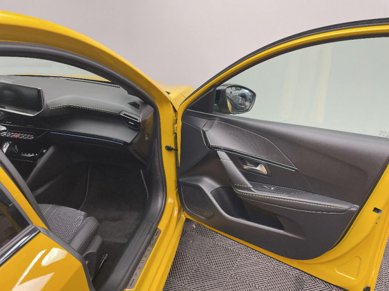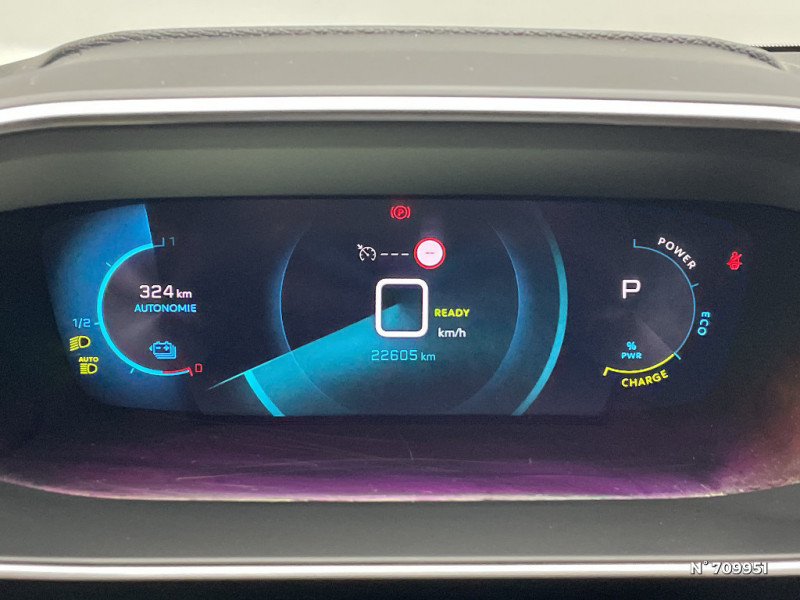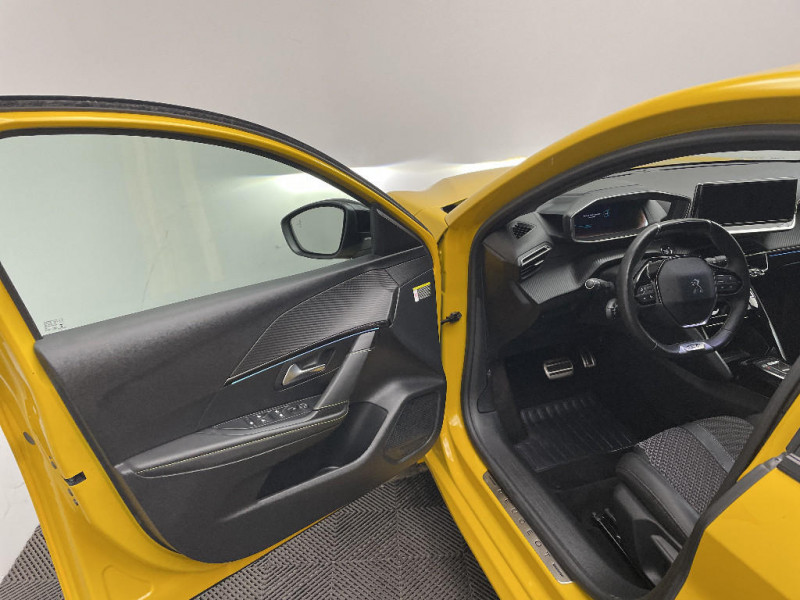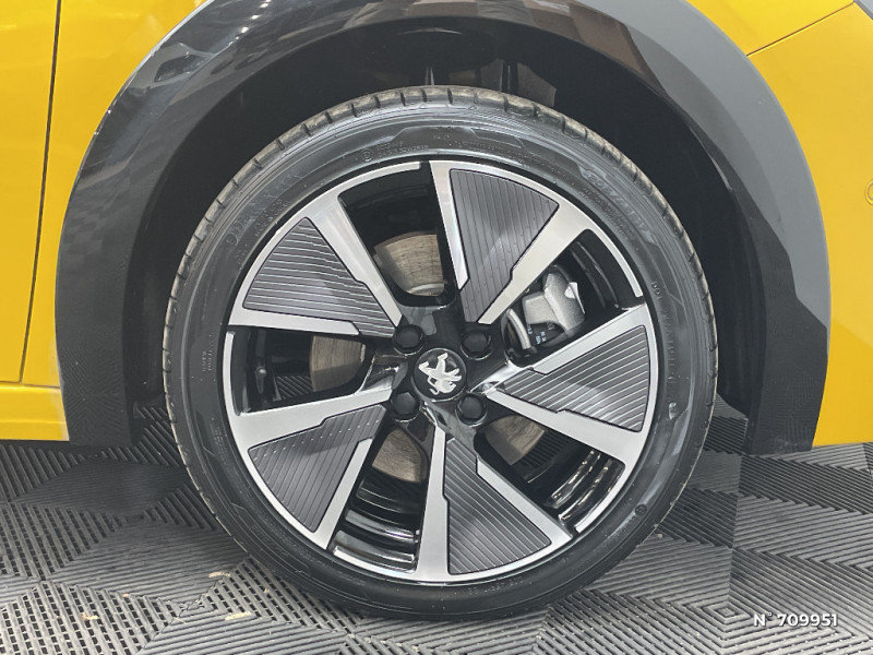 Aide graphique et sonore au stationnement AV / Air conditionné automatique mono-zone / Avertisseur de temps de conduite / Bandeau entre feux AR Noir brillant / Câble électrique mode 2, prises de charge T2/EF type Green'up / Câble électrique mode 3, prises de charge T2/T2 / Calandre haut de gamme avec grille supérieure avec marquage couleur caisse et enjoliveur supérieur Noir Brillant / Ceinture de sécurité AR centrale 3 points, avec détection de non bouclage / Ceintures de sécurité AR latérales avec enrouleurs pyrotechniques, limiteurs d'effort et détection de non bouclage / Ceintures de sécurité AV conducteur et passager à enrouleurs pyrotechniques avec limiteurs d'effort et détection de non bouclage / Aide graphique et sonore au stationnement AR / Aide graphique et sonore au stationnement AR / Démarrage mains libres avec 2 télécommandes 3 boutons / Démarrage mains libres avec 2 télécommandes 3 boutons / Démarrage mains libres avec 2 télécommandes 3 boutons mains libres / Détection de sous-gonflage indirecte / Eclairage coffre à lampe / Eclairage intérieur à LED : plafonniers tactiles AV (1 lampe et 2 liseuses) et AR (2 liseuses), pares-soleils, cave à pieds / Enjoliveurs de pied milieu brillant avec sérigraphies AV / Essuie-vitre AV à déclenchement automatique / Feux diurnes à LED sous projecteurs / Filets aumônières au dos des sièges AV / Fixations suivant norme ISOFIX aux places latérales AR avec étiquettes de localisation, et Top Tether / Fixations suivant norme ISOFIX sur siège passager AV avec étiquettes de localisation / Fonction DAB (Radio Numérique Terrestre) / Fonction Mirror Screen / Fonction "Mirror Screen" (Apple CarPlay / Android Auto ) / Fonction "Mirror Screen" (Apple CarPlay / Android Auto / MirrorLink) / Frein de stationnement électrique avec aide au démarrage en pente et serrage automatique / Habitacle et ciel de pavillon Noir / Jantes alliage 17'' BRONX avec inserts Noir Brillant et vernis Dark Coat / Jantes alliage 17'' SHAW avec inserts spécifique EV / Jantes alliage 17'' SHAW avec inserts spécifique EV / Jupes de pare-chocs AR inférieure et supérieure Noir brillant / Kit de dépannage de pneumatique / Lécheurs de vitres latérales Noir Brillant / Lève-vitres AR électriques et séquentiels avec antipincement / Lève-vitres AV électriques et séquentiels avec antipincement / Monogramme extérieur GT sur custode et volet de coffre / Navigation 3D Connectée avec écran tactile 10'' HD couleur : 2 prises USB (Data et recharge) sur console AV, 2 prises AR sur console haut(recharge), Fonction DAB (Radio Numérique Terrestre) / Navigation 3D Connectée avec écran tactile 10'' HD couleur : 2 prises USB (Data et recharge) sur console AV, 2 prises AR sur console haut(recharge), Fonction DAB (Radio Numérique Terrestre) / Commutation automatique des feux de route / feux de croisement / Console haute avec accoudoir central finition TEP et surpiqûres tramontane / Navigation 3D connectée avec reconnaissance vocale, écran tactile capacitif 10" HD / Navigation 3D connectée avec reconnaissance vocale, écran tactile capacitif 10" HD / Système stop & go couplé avec l'assistance au positionnement sur la voie / Teinte métallisée Jaune Faro / Visio Park 1 / Visio Park 1: Caméra de recul avec restitution sur l'écran tactile d'une vue AR et d'une vue de dessus de l'environnement AR du véhicule + Aide graphique et sonore au stationnement AR / Vitres latérales AR et lunette AR chauffante temporisée surteintées / Vitres latérales AR et lunette AR chauffante temporisée teintées / Vitres latérales AR et lunette AR surteintées / Volant compact cuir fleur avec laçage vert, Lion chromé et badge GT et commandes multimédia sur volant / Volet de rangement smartphone / 1 Poignée de maintien passager AV / 2 prise USB sur console AV / 2 prises USB (Recharge type A) sur console basse pour passagers AR / 4 poignées de maintien (2 à l'AV et 2 à l'AR) / 6 HP (2 tweeters et 2 woofers à l'AV et 2 larges bandes à l'AR) / Décor panneaux de portes de portes Noir et Orange / Décor panneaux de portes Noir et Azure / Pédalier aluminium / PEUGEOT Connect SOS & Assistance / PEUGEOT Connect SOS & Assistance et Telemaintenance / PEUGEOT Connect SOS & Assistance et Telemaintenance / Peugeot i-Cockpit avec combiné tête haute analogique et matrice couleur 3,5" / Peugeot i-Cockpit 3D avec combiné tête haute numérique 3D / Planche de bord slush et panneaux de portes AV avec décors aspect carbone / Planche de bord slush surpiquée et panneaux de portes AV avec décors aspect carbone et éclairage polyambiant 8 couleurs / Programme de Stabilité Electronique (ESC) avec ASR, ABS, REF, AFU, CDS et TSM / Chargeur embarqué 7,4 kW monophasé / Passages de roue Noir brillant / Navigation 3D connectée avec reconnaissance vocale, écran tactile capacitif 10" HD 2 prises USB sur console AV, Cartographie Europe,Trafic en temps réel by TomTom Services (Informations trafic, Stations services, Parkings, Météo, Recherche Locale), abonnement 3 ans inclus Zones de danger by TomTom Services, abonnement 3 ans inclus. Connexion automatique et permanente via carte SIM intégrée au véhicule / Sellerie Tri matière Tissu CAPY/TEP surpiqûres Vert Adamite / Seuil de portes lettrage "PEUGEOT" / Seuils de portes AV en Inox / Seuils de portes "Peugeot" / Siège passager AV à réglage manuel en hauteur et lombaire pneumatique / Signature LED sur pare-choc AV / Signature lumineuse avant DRL à LED sous projecteurs / Surtapis AV et AR noirs avec surpiqûres Vert Adamite / Navigation 3D connectée avec reconnaissance vocale, écran tactile capacitif 7" 2 prises USB sur console AV, Cartographie Europe,Trafic en temps réel by TomTom Services (Informations trafic, Stations services, Parkings, Météo, Recherche Locale), abonnement 3 ans inclus, Zones de danger by TomTom Services, abonnement 3 ans inclus. Connexion automatique et permanente via carte SIM in